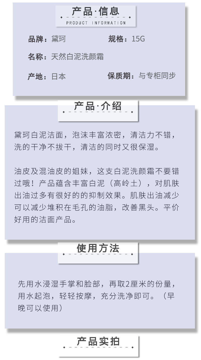 【爆款超低价预售 急单慎拍】黛珂天然白泥洗颜霜15g洁面洗面奶 专柜小样改善粗糙黑头清爽控油