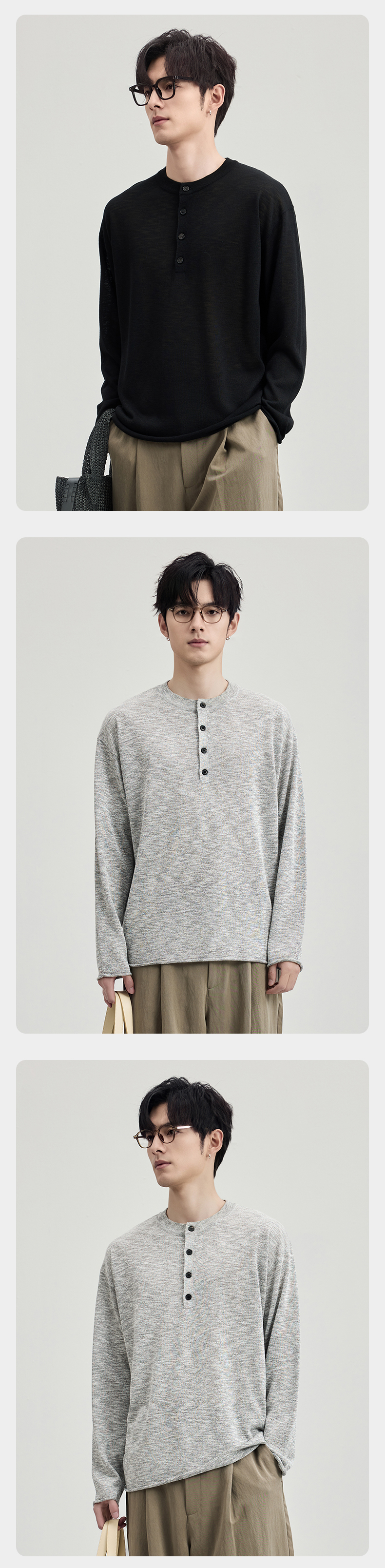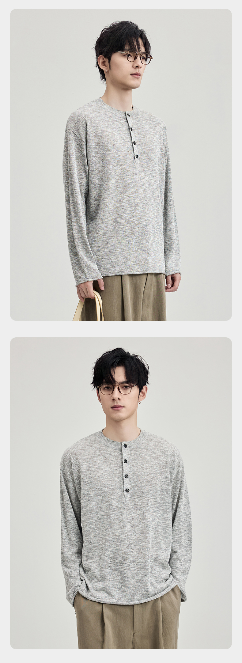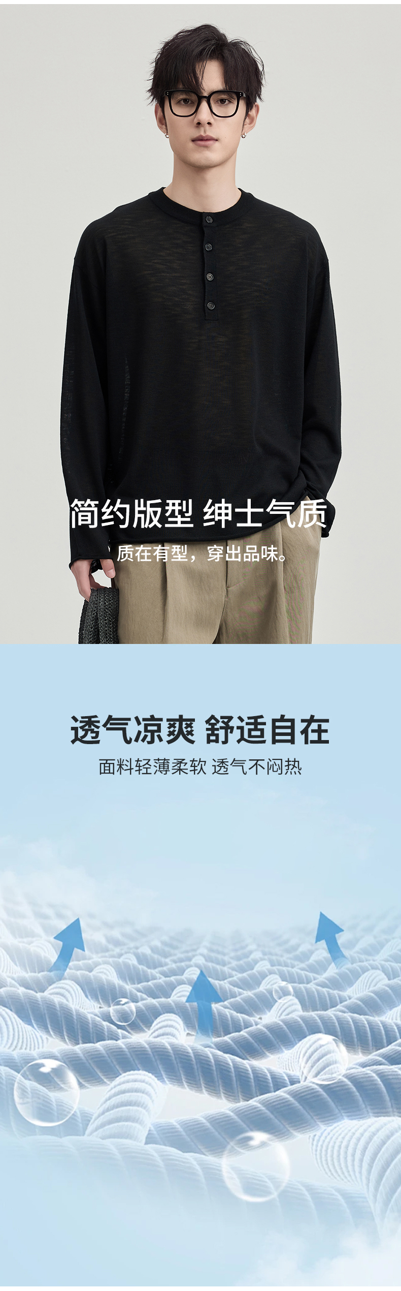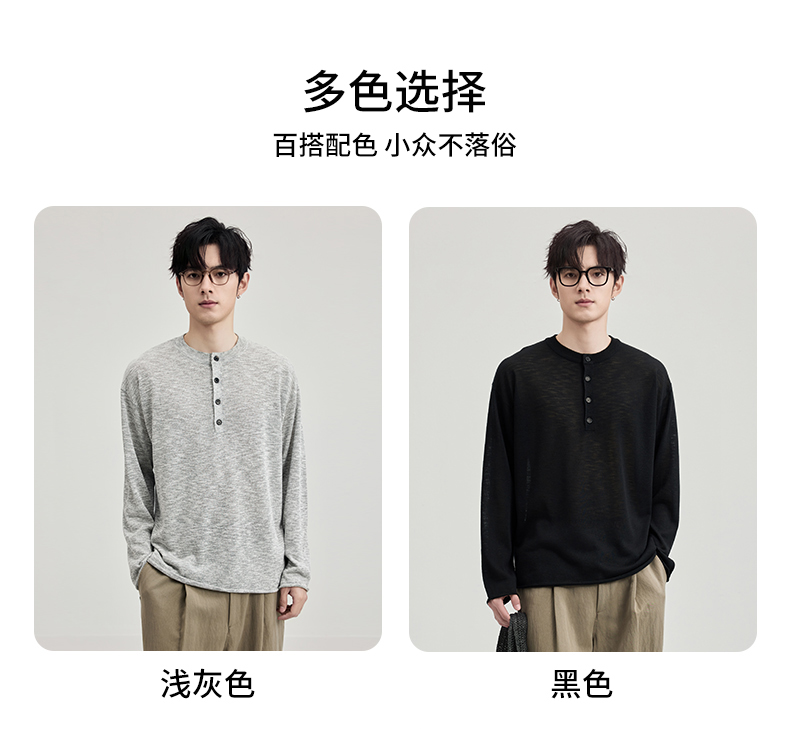 贝纳川春季竹节麻长袖针织衫ECF116001