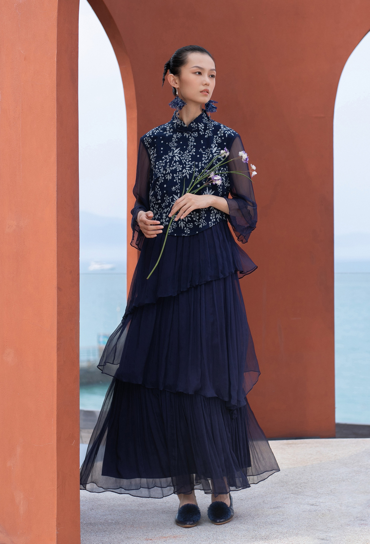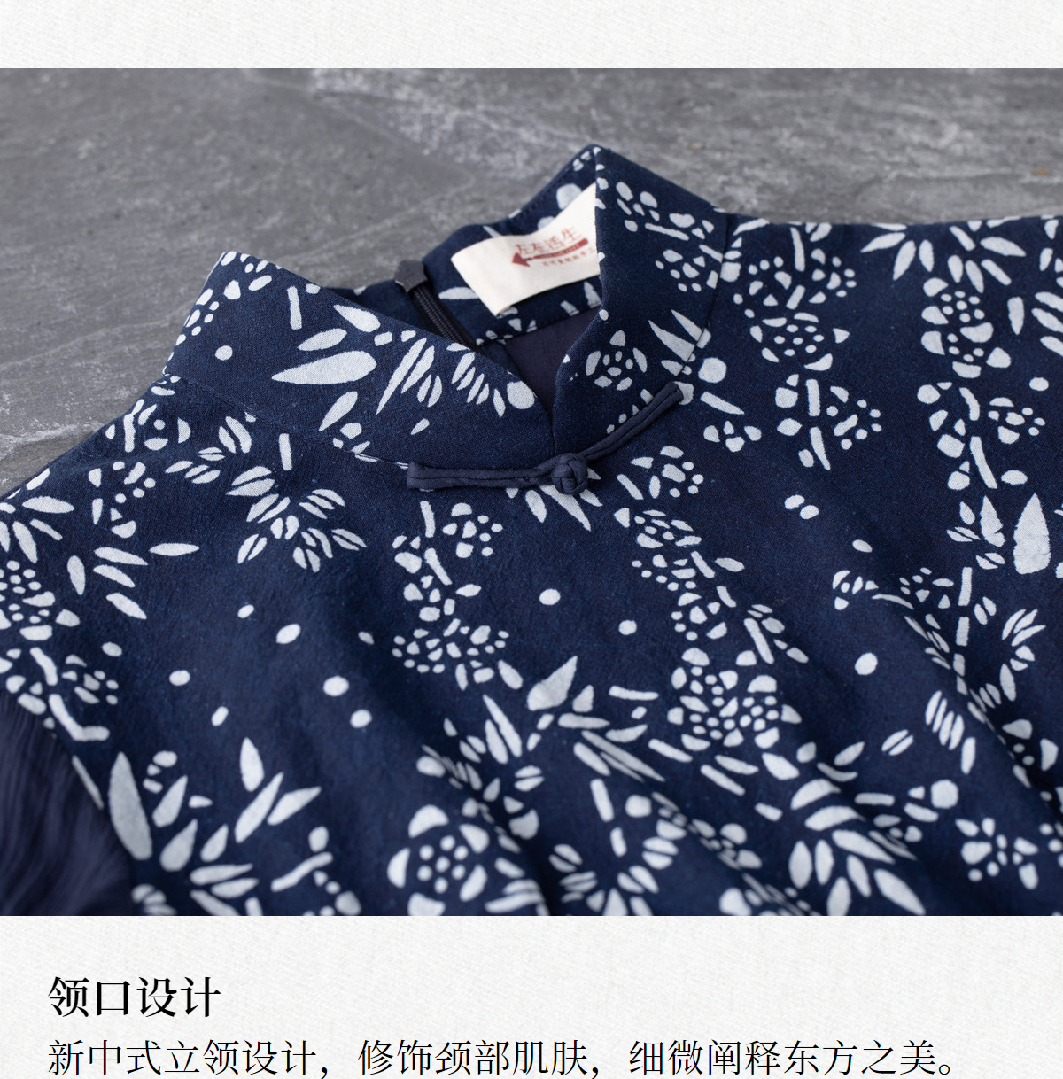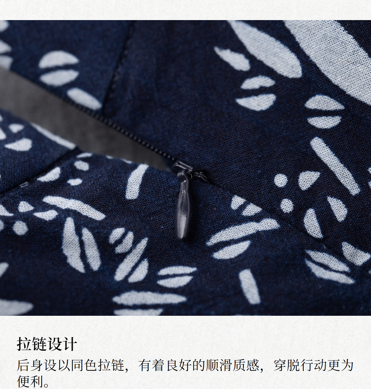 【林栖设计小店】蓝印花系列连衣裙蓝印花布传统拼真丝蛋糕长裙女1942269