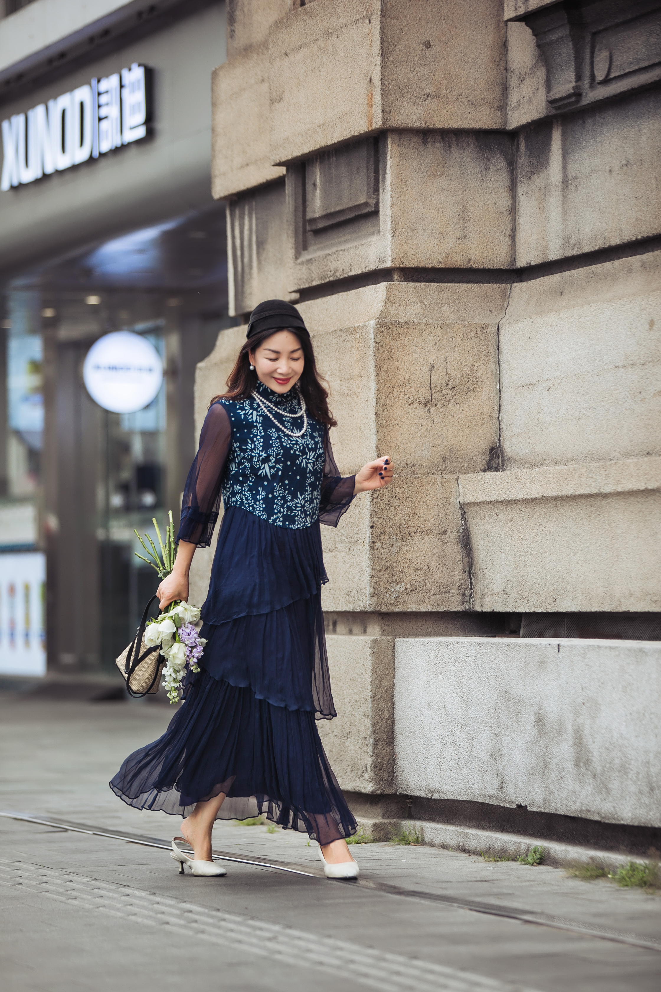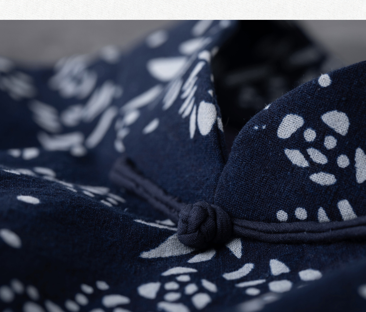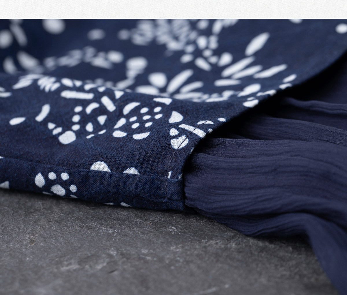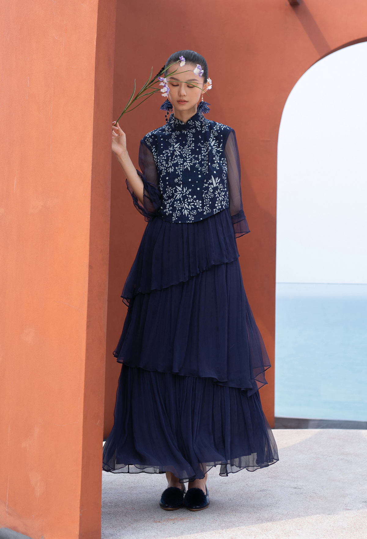 【林栖设计小店】蓝印花系列连衣裙蓝印花布传统拼真丝蛋糕长裙女1942269