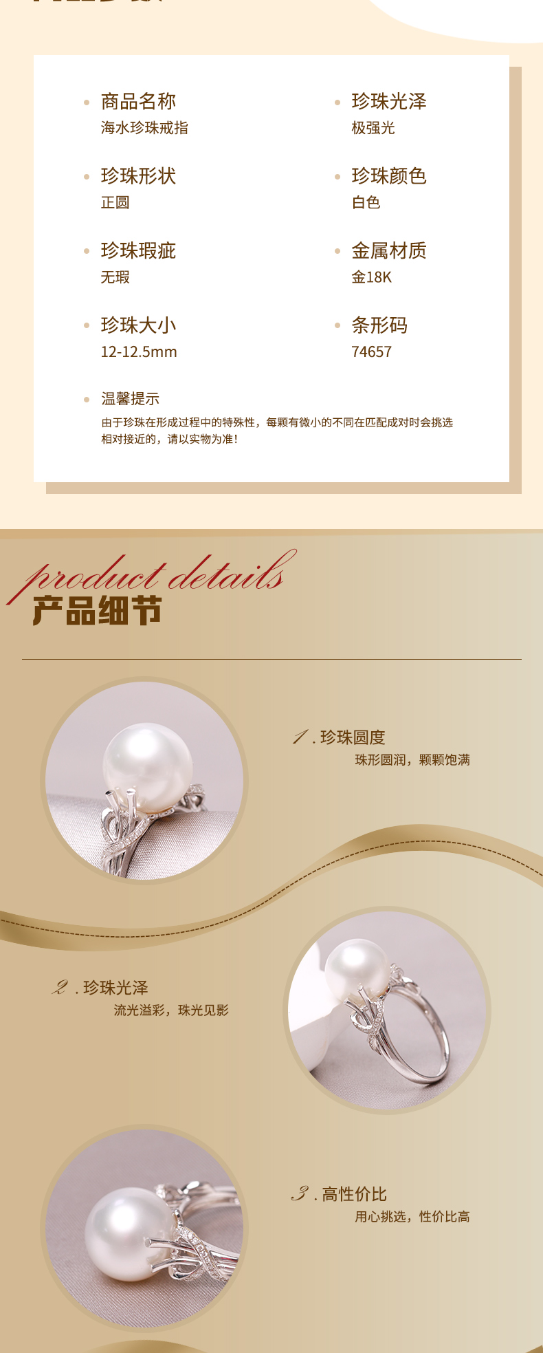 美裕 18K金海水珍珠戒指 南洋珠12-12.5mm白 74657