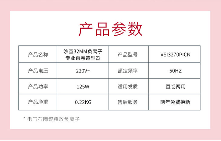 沙宣(VS)电卷发棒 卷直两用 夹板 直发卷发神器卷发器拉直板负离子直发器 VSI3270PICN