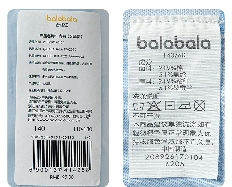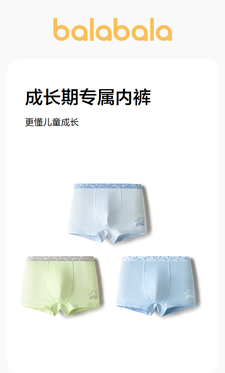 巴拉巴拉男童内裤棉平角儿童四角短裤大童宝宝不夹PP抗菌三条装