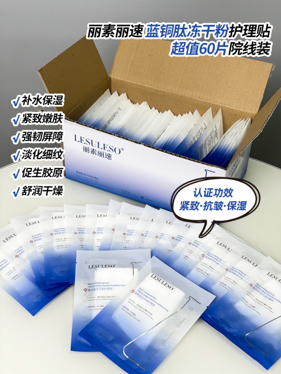60片装【丽素丽速 蓝铜肽冻干粉护理贴】