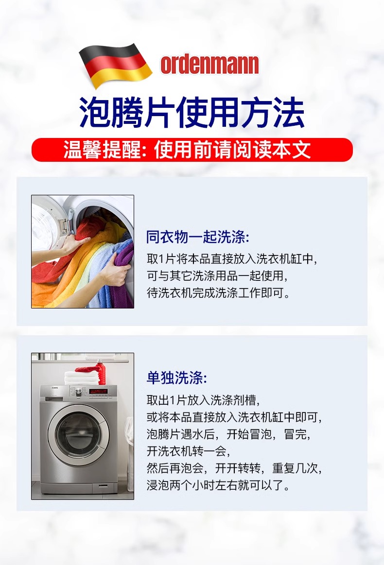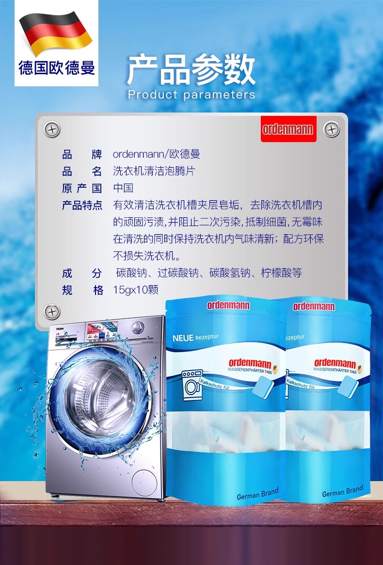 【中欧班列精选】德国欧德曼ordenmann洗衣机清洁泡腾片15g*10颗/袋 NBNA