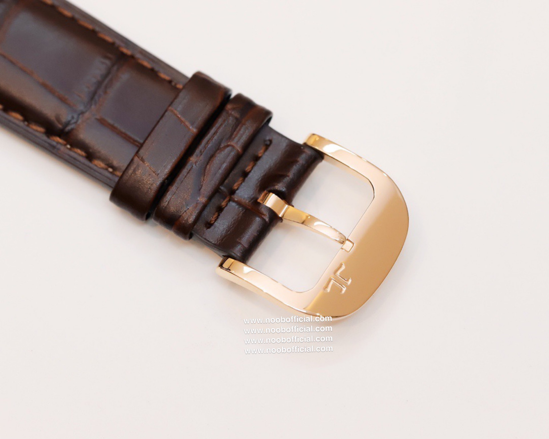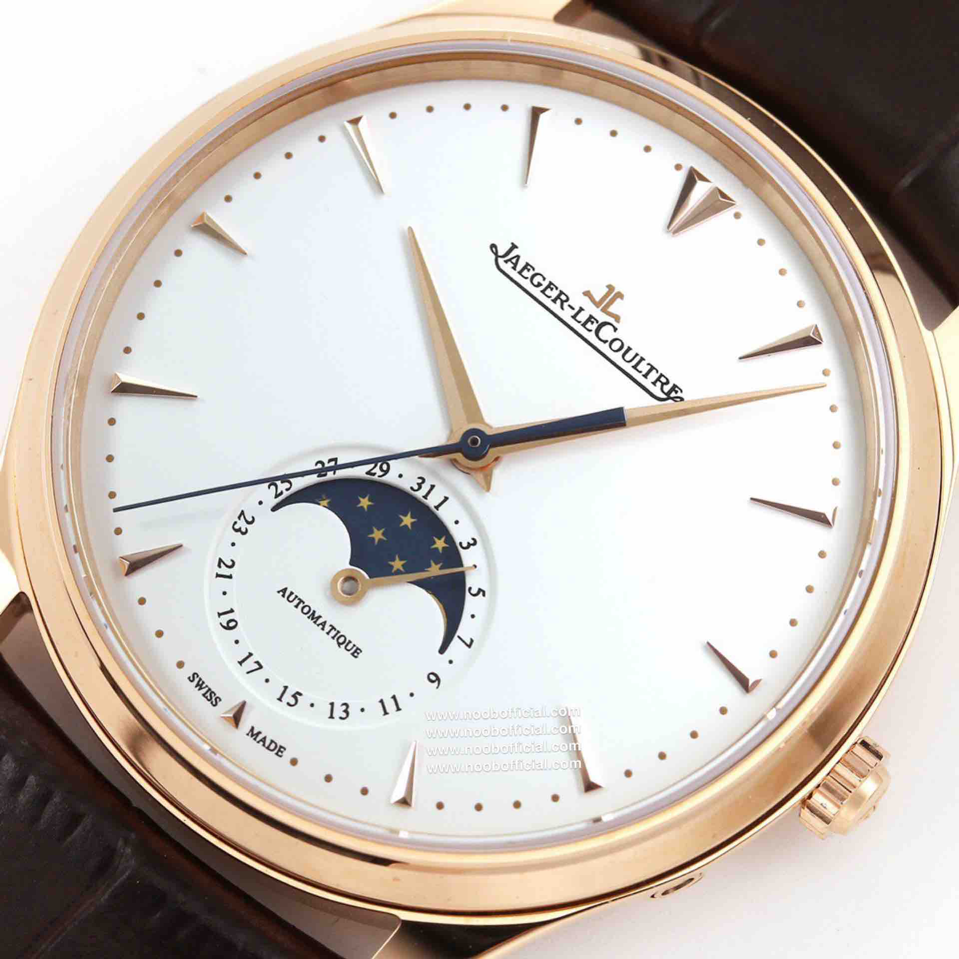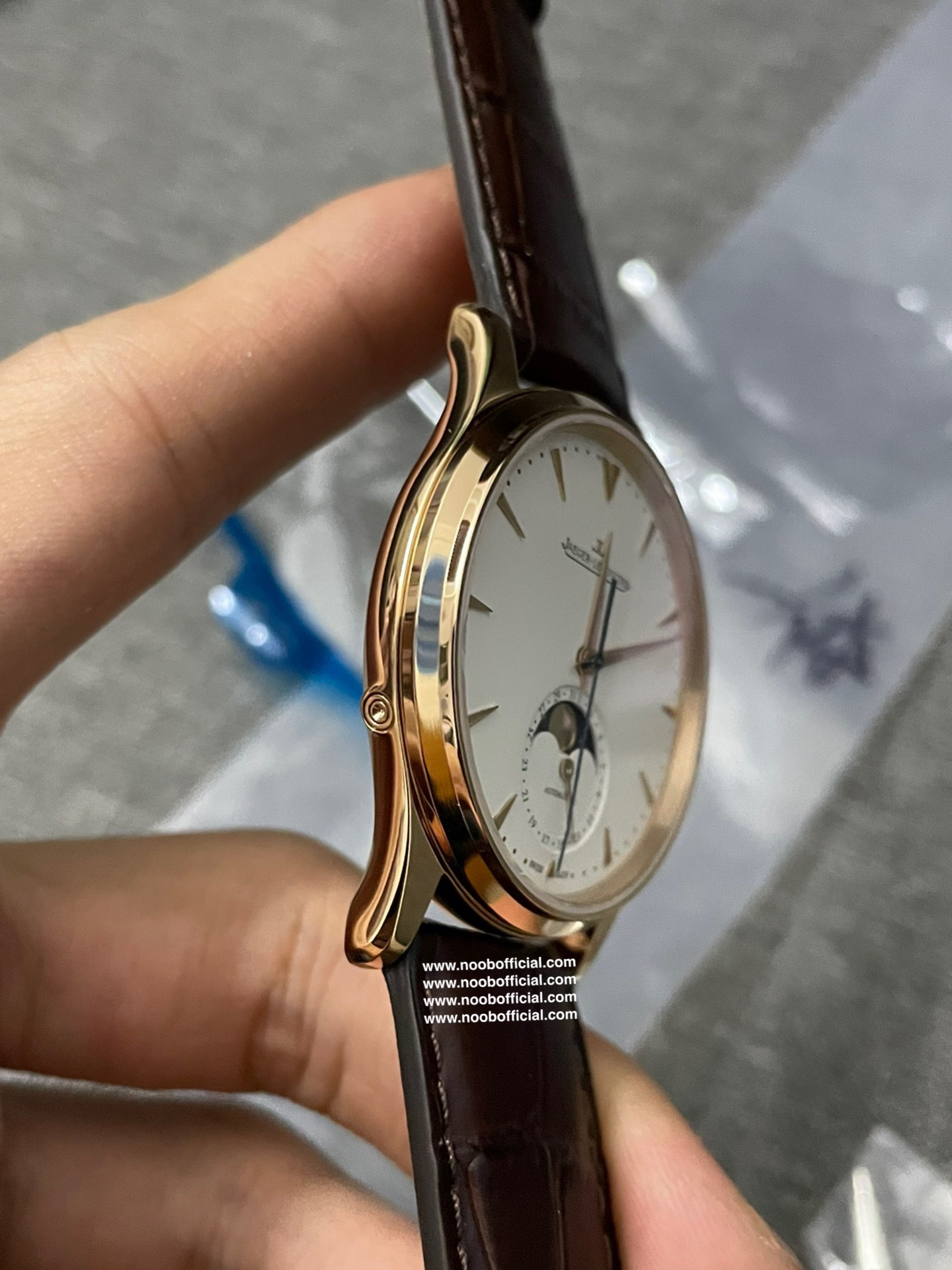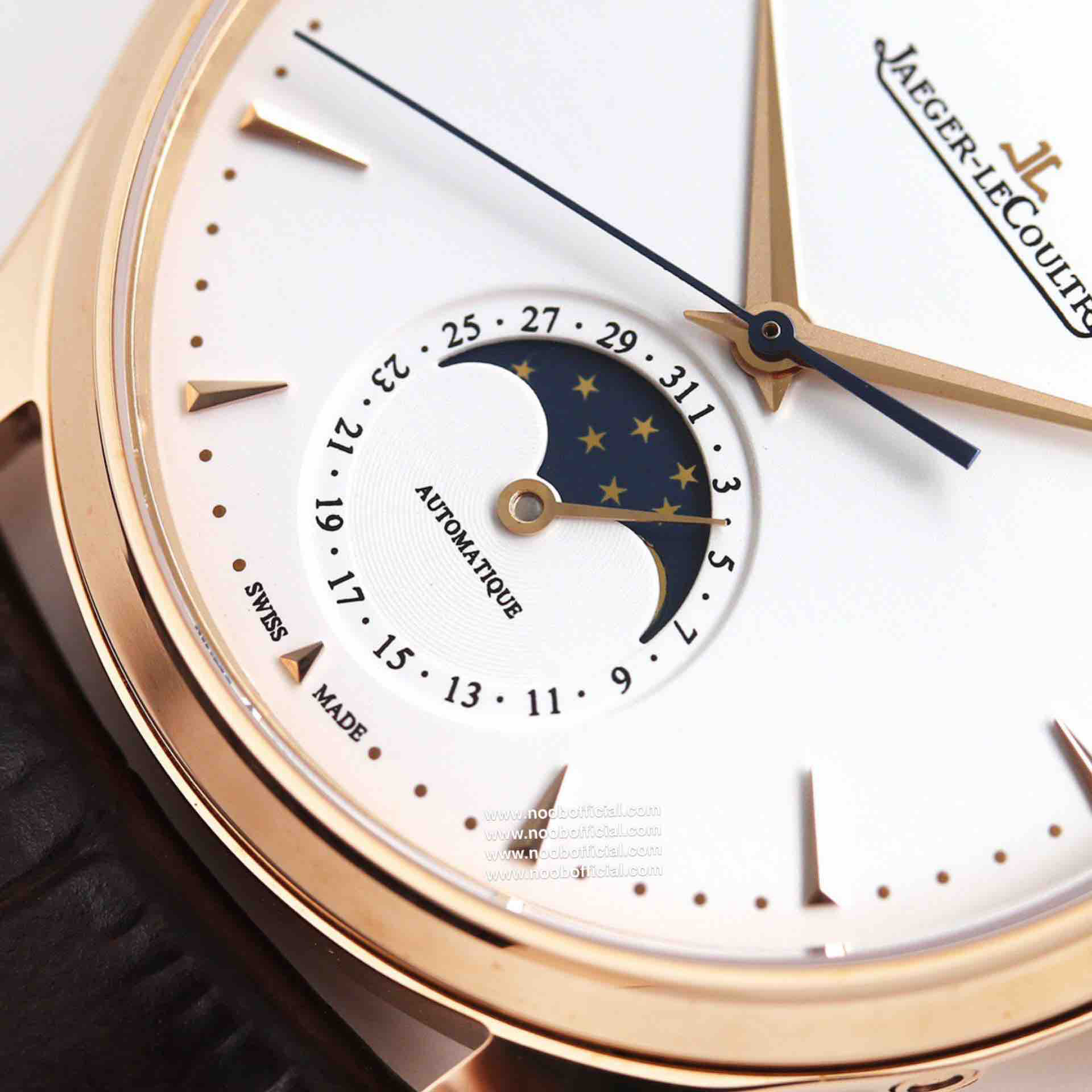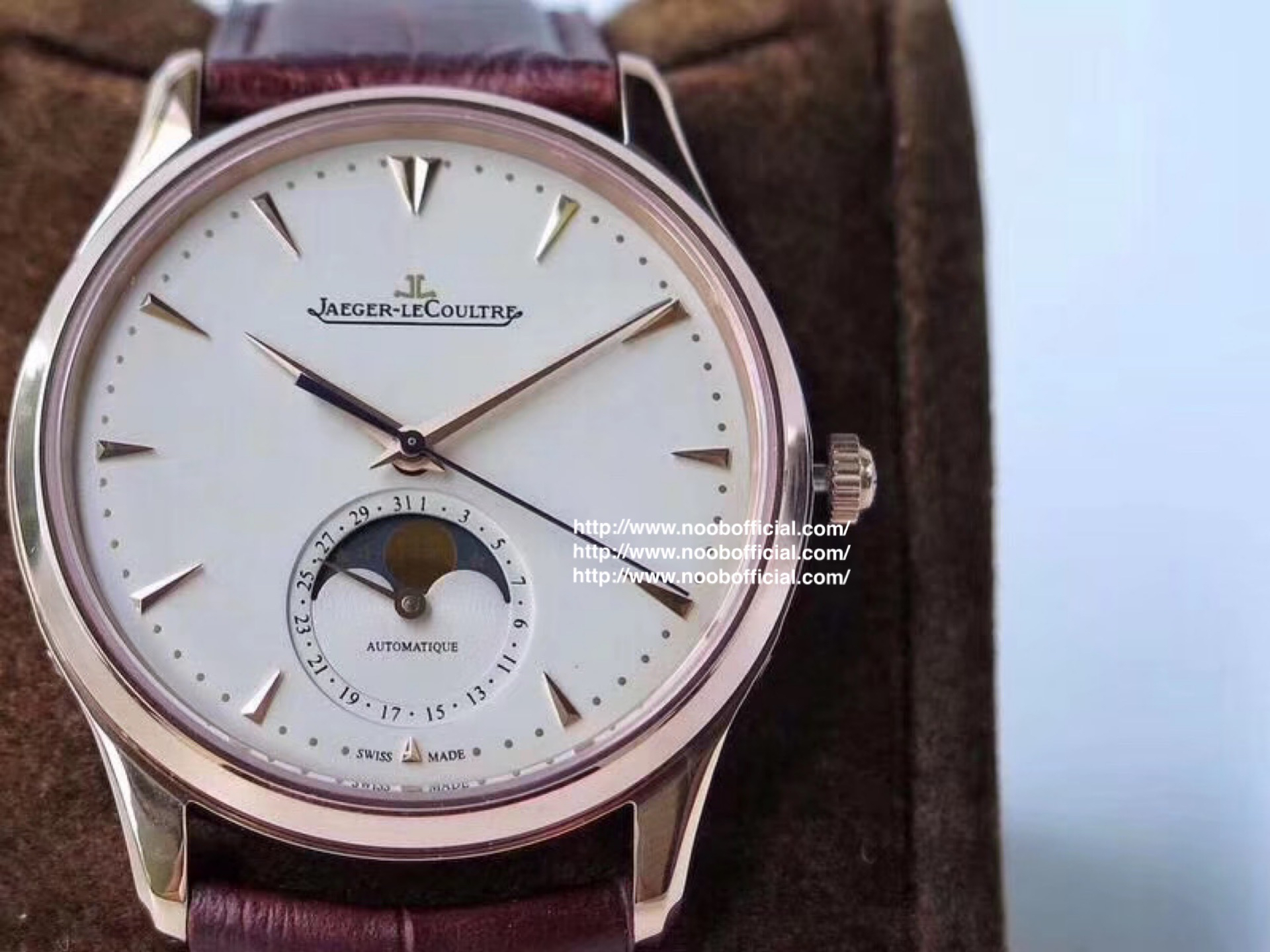 ZF积家月相大师系列,表壳直径39mmX9.9mm与原装同步。六点钟的子盘拥有阳历阴历(月相)双期显示,月相一月转一圈,功能和正品一致。【技术突破】采用9015改积家自产Cal.925/1机芯,功能百分百同步原装自产机芯。走时稳定,素质坚挺。【细节突破】从侧面观察腕表盘面发现有微微的弧度,ZF为了达到这一效果,耗时费力多次调整模具,确保神韵和感觉能与原装相媲美。ZF积家月相大师