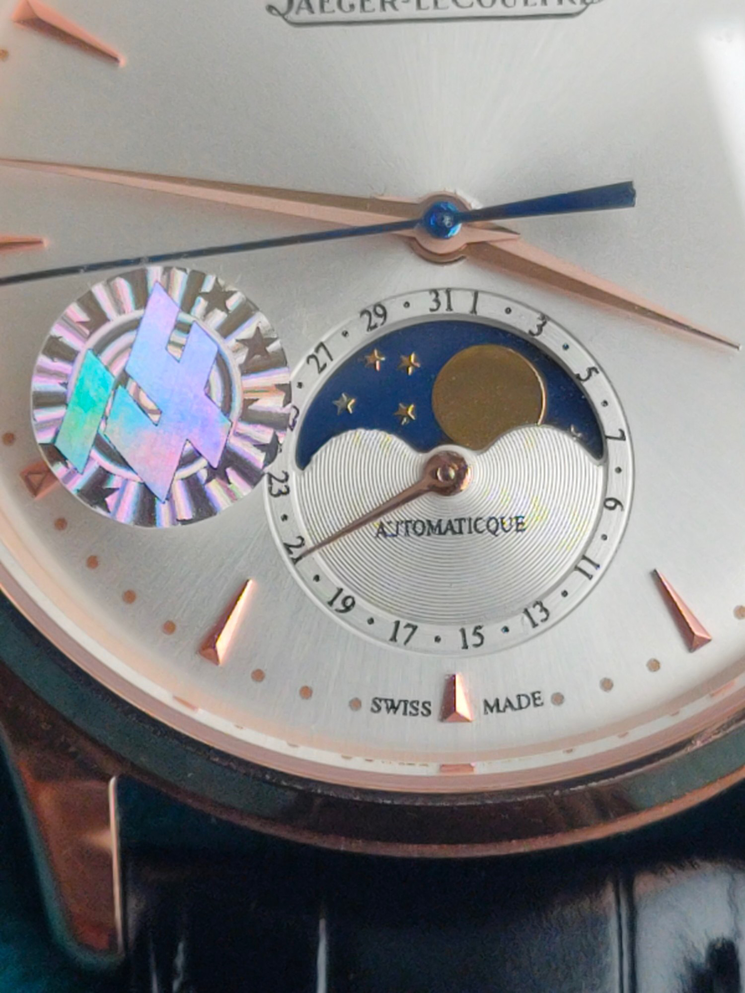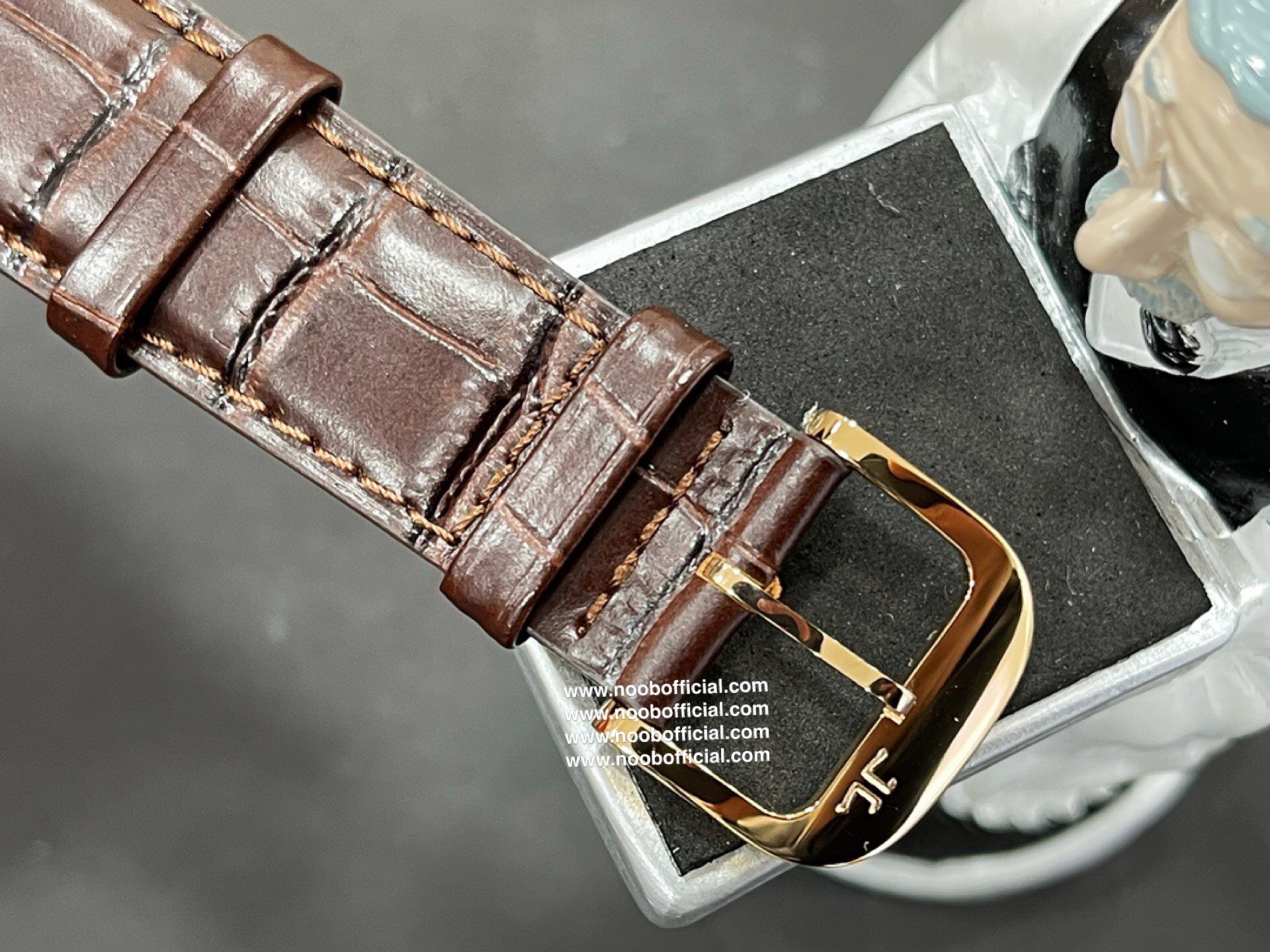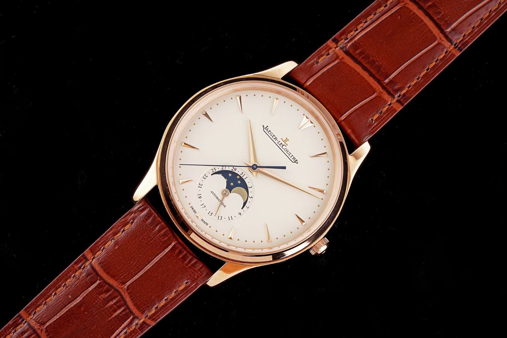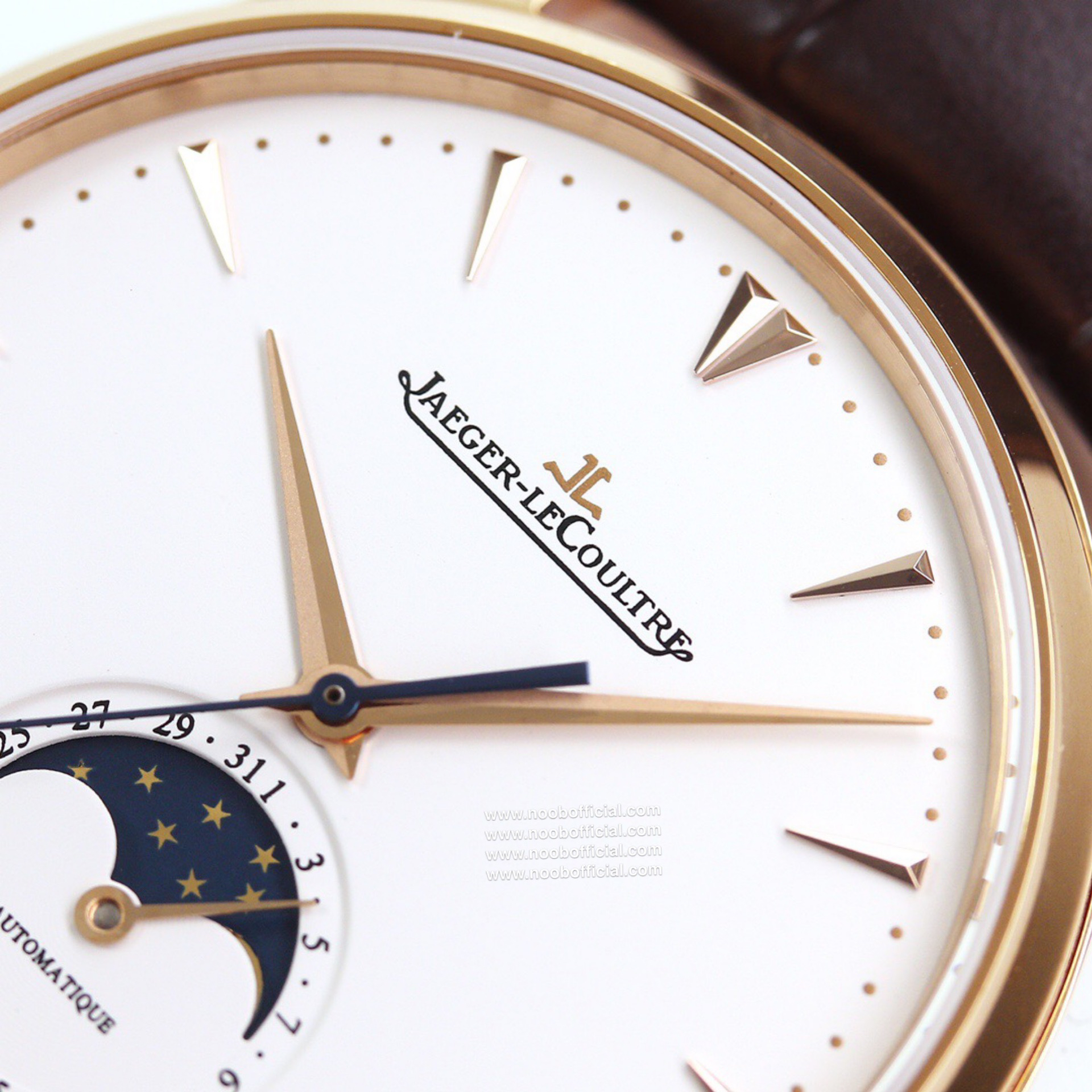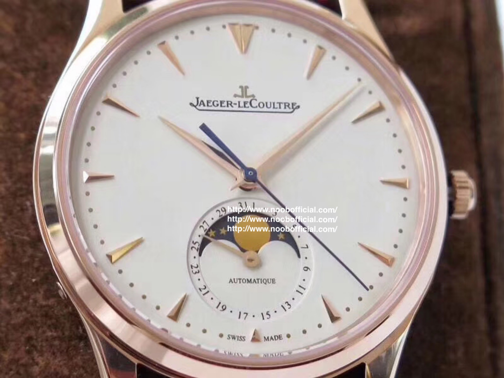 ZF积家月相大师系列,表壳直径39mmX9.9mm与原装同步。六点钟的子盘拥有阳历阴历(月相)双期显示,月相一月转一圈,功能和正品一致。【技术突破】采用9015改积家自产Cal.925/1机芯,功能百分百同步原装自产机芯。走时稳定,素质坚挺。【细节突破】从侧面观察腕表盘面发现有微微的弧度,ZF为了达到这一效果,耗时费力多次调整模具,确保神韵和感觉能与原装相媲美。ZF积家月相大师
