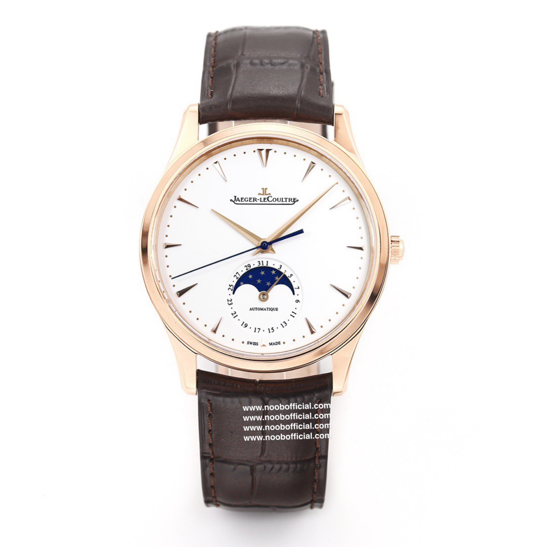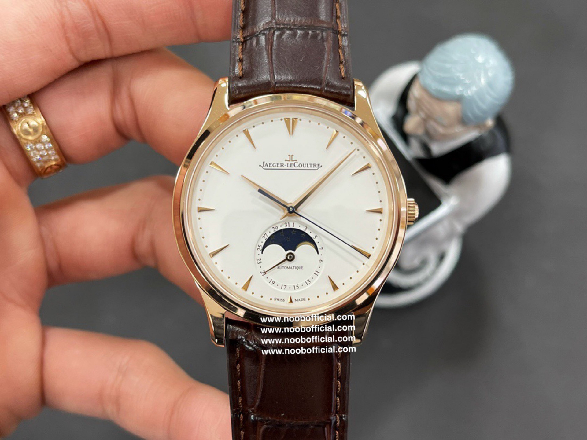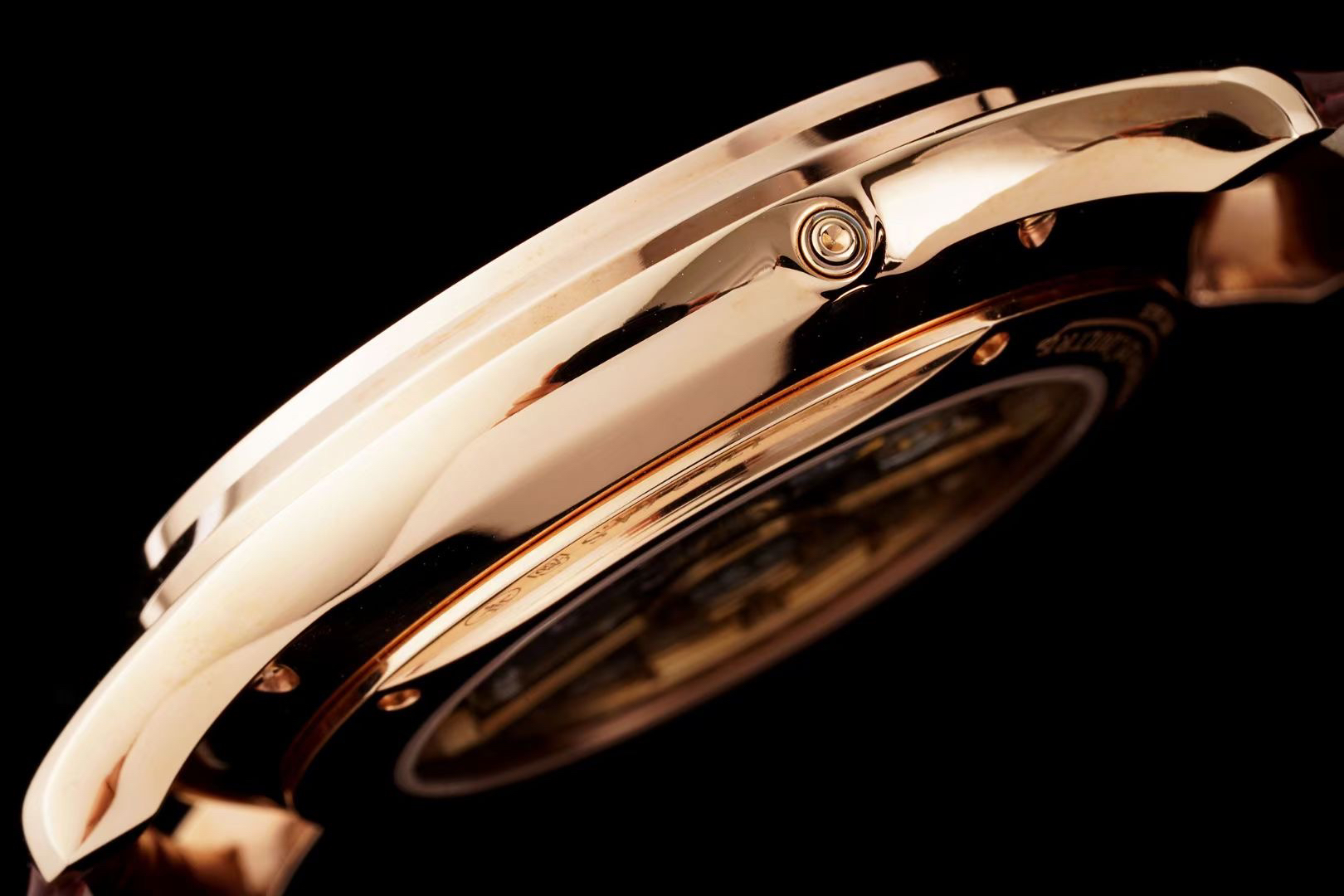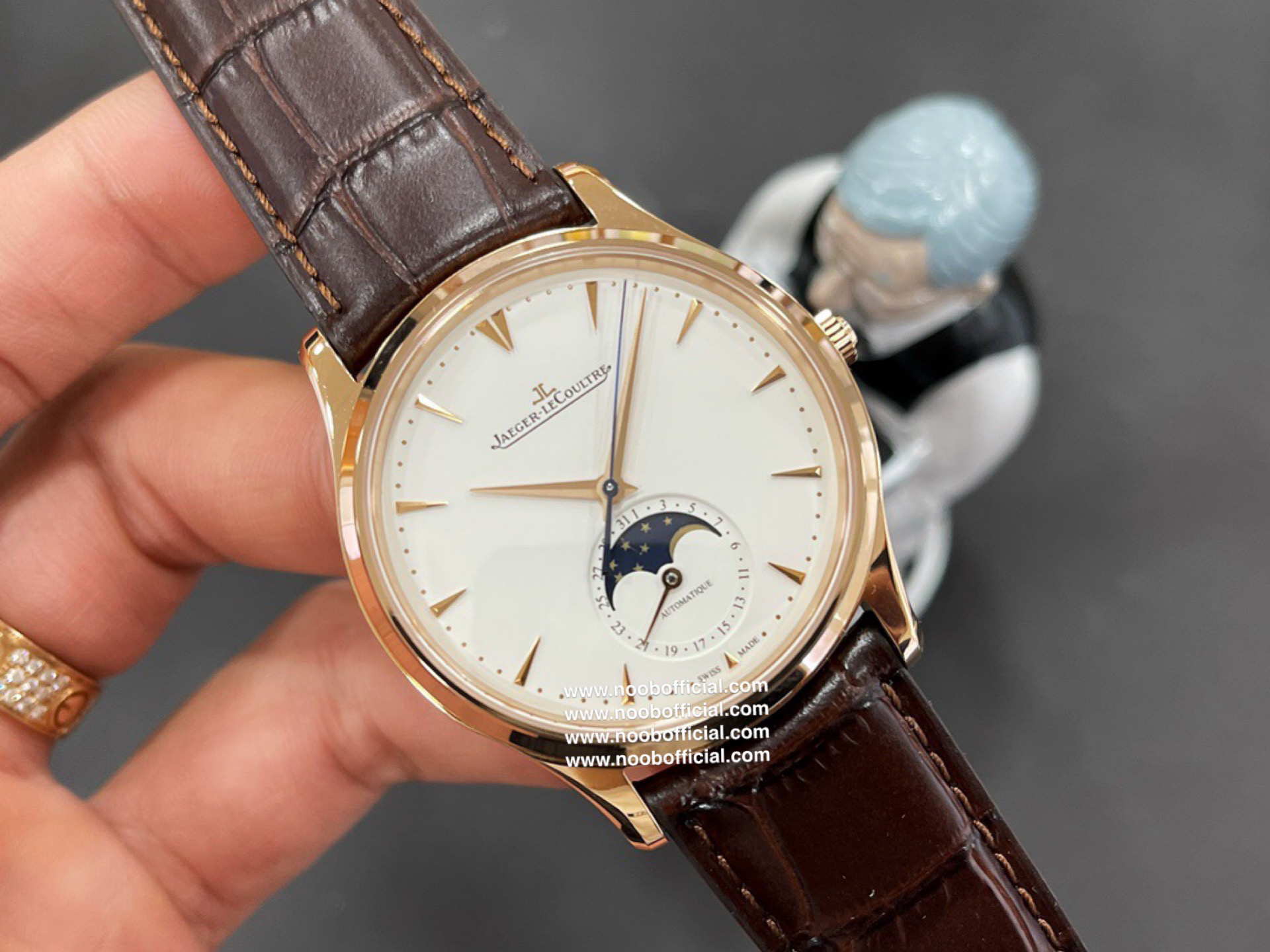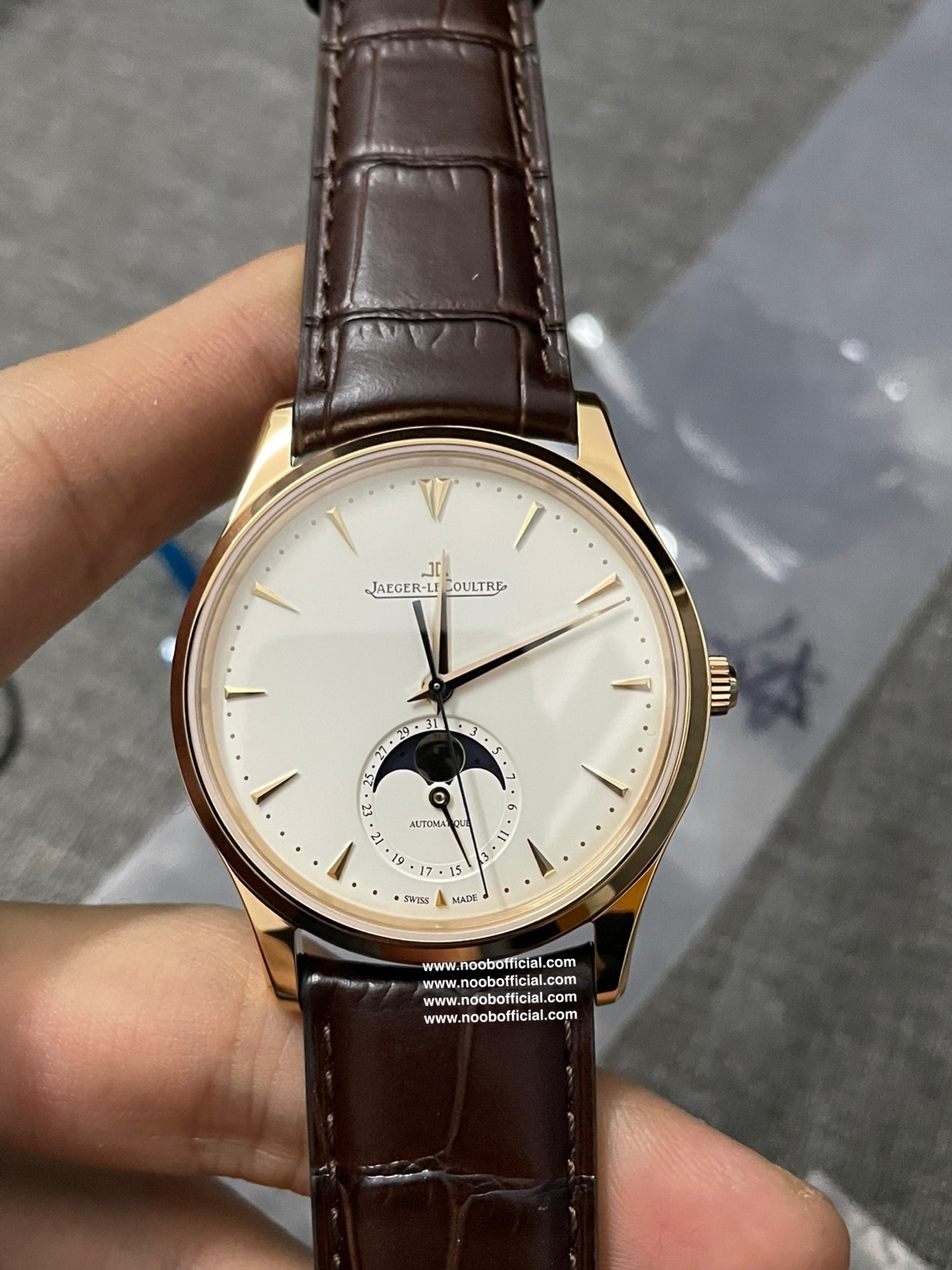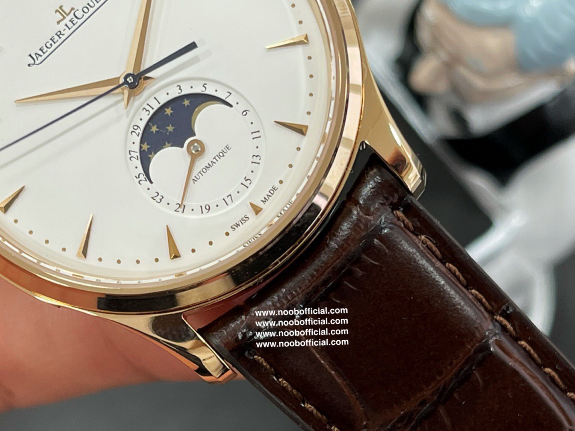 ZF积家月相大师系列,表壳直径39mmX9.9mm与原装同步。六点钟的子盘拥有阳历阴历(月相)双期显示,月相一月转一圈,功能和正品一致。【技术突破】采用9015改积家自产Cal.925/1机芯,功能百分百同步原装自产机芯。走时稳定,素质坚挺。【细节突破】从侧面观察腕表盘面发现有微微的弧度,ZF为了达到这一效果,耗时费力多次调整模具,确保神韵和感觉能与原装相媲美。ZF积家月相大师