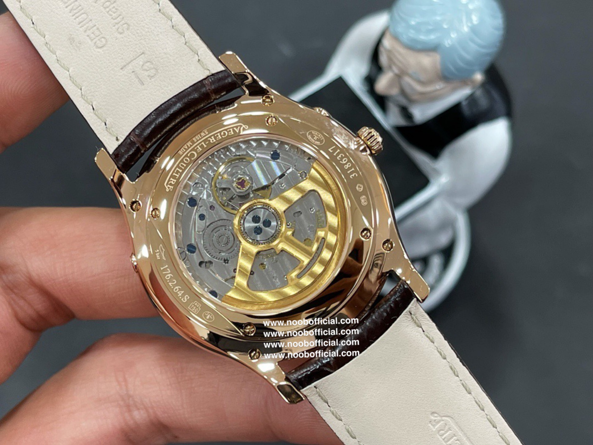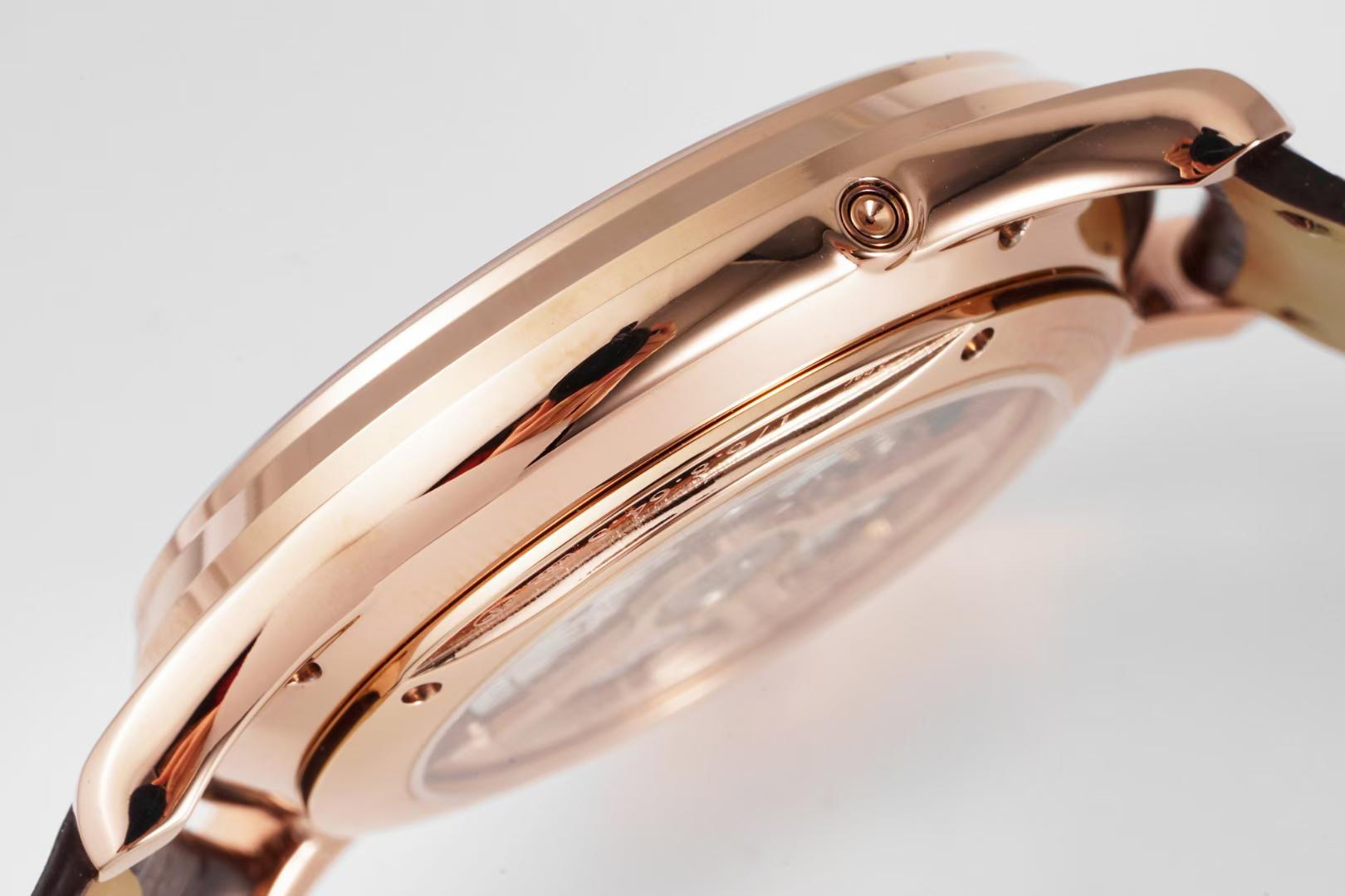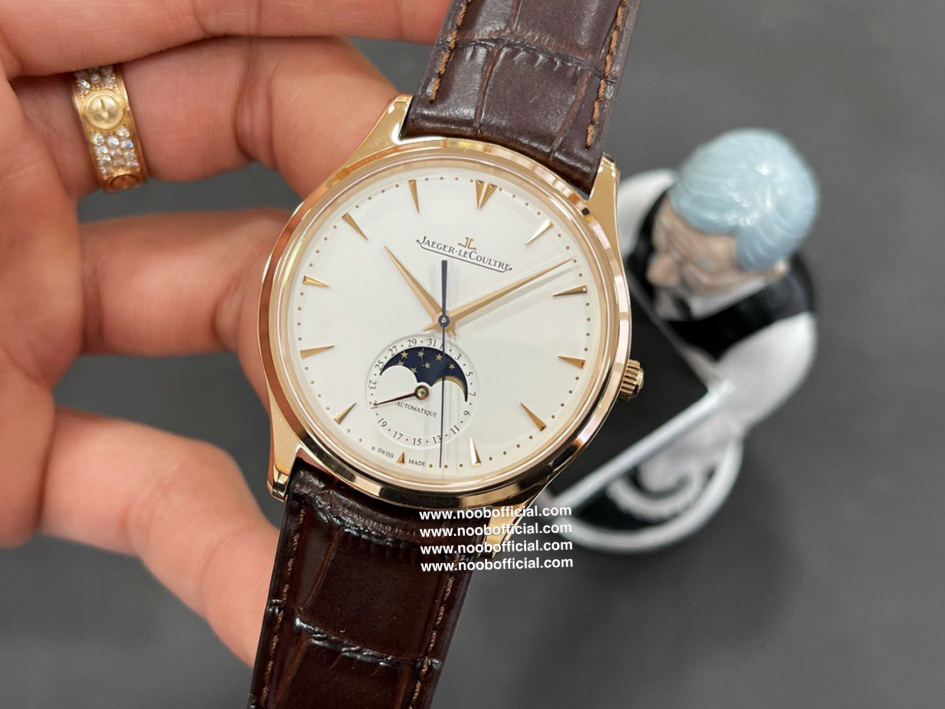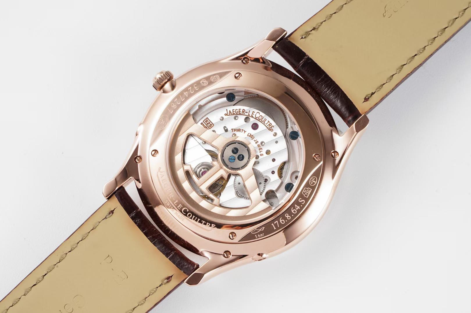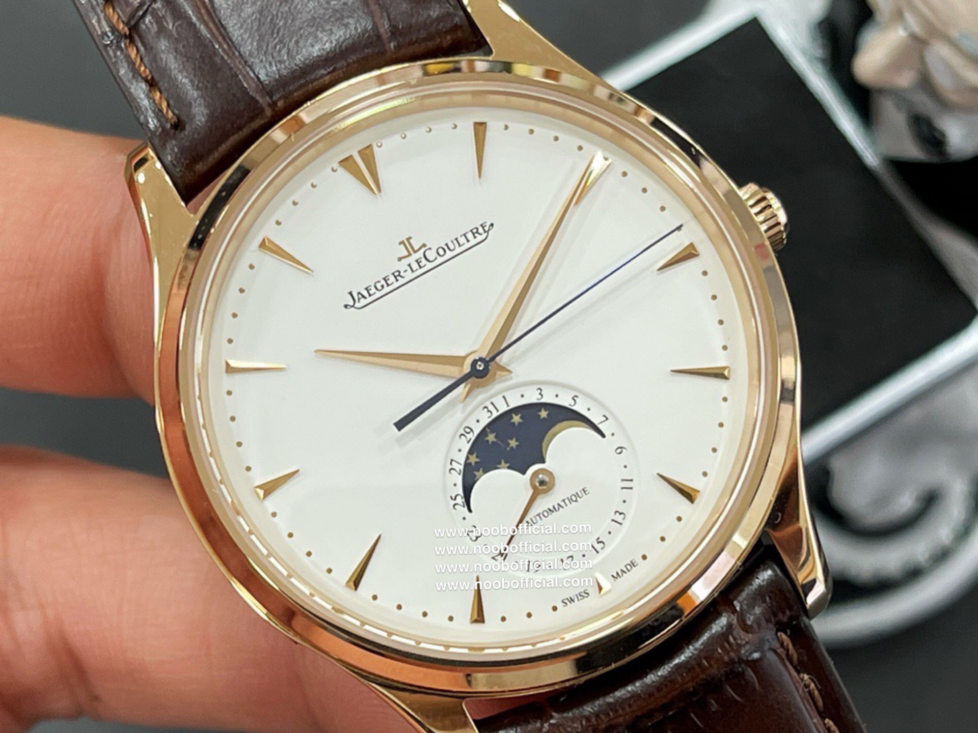 ZF积家月相大师系列,表壳直径39mmX9.9mm与原装同步。六点钟的子盘拥有阳历阴历(月相)双期显示,月相一月转一圈,功能和正品一致。【技术突破】采用9015改积家自产Cal.925/1机芯,功能百分百同步原装自产机芯。走时稳定,素质坚挺。【细节突破】从侧面观察腕表盘面发现有微微的弧度,ZF为了达到这一效果,耗时费力多次调整模具,确保神韵和感觉能与原装相媲美。ZF积家月相大师