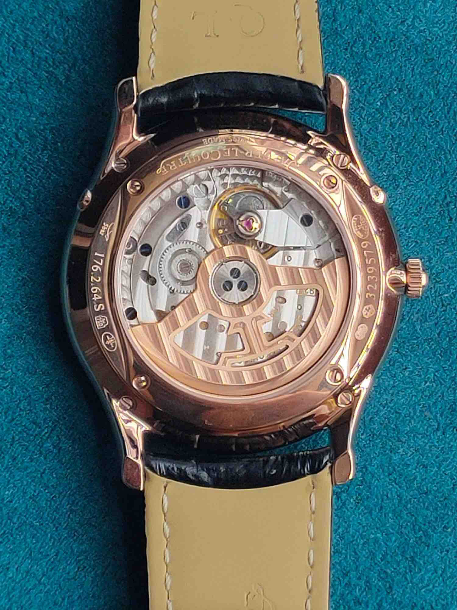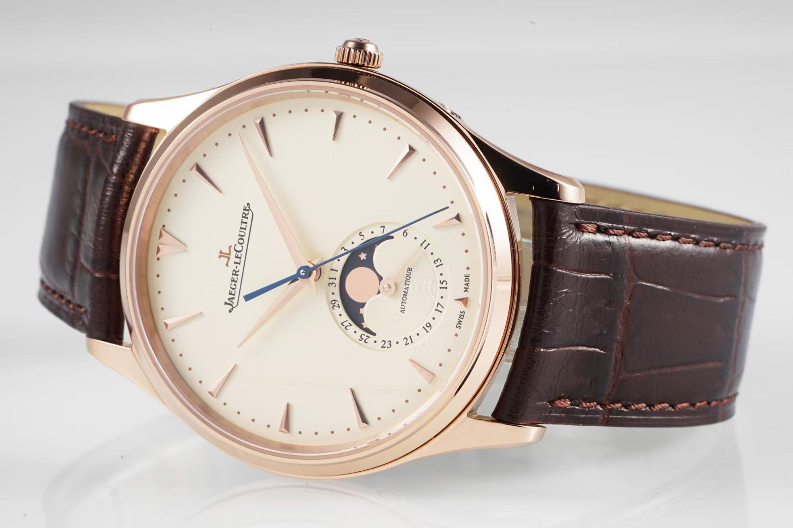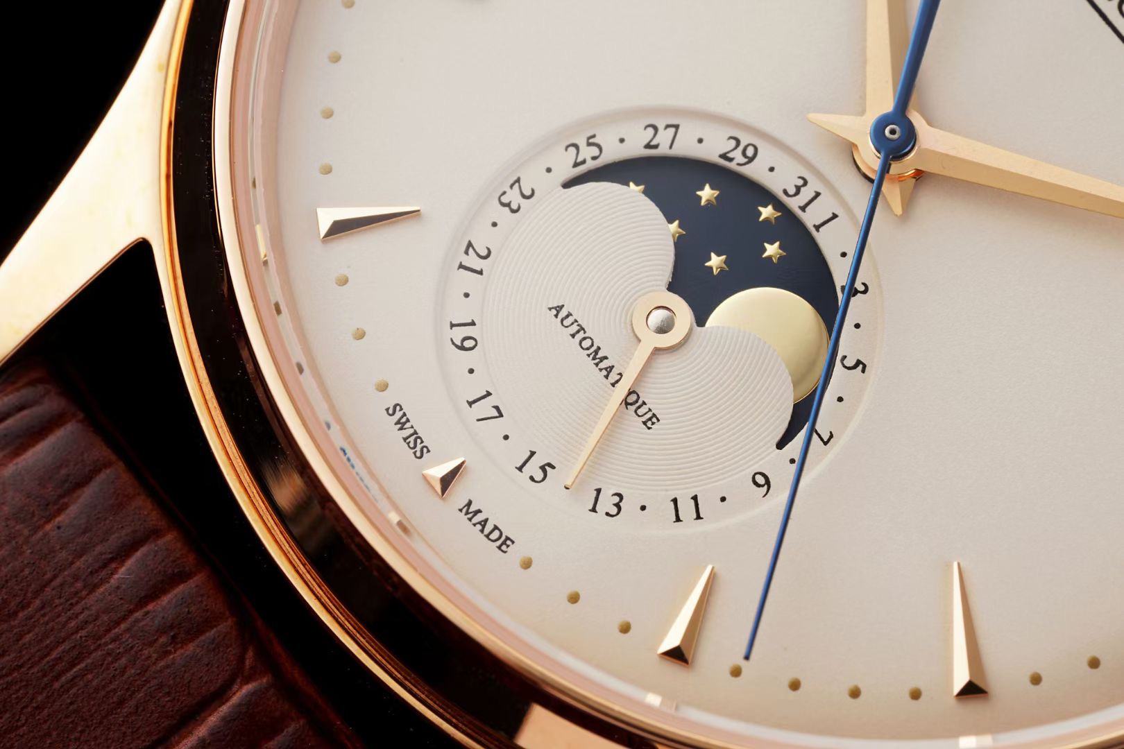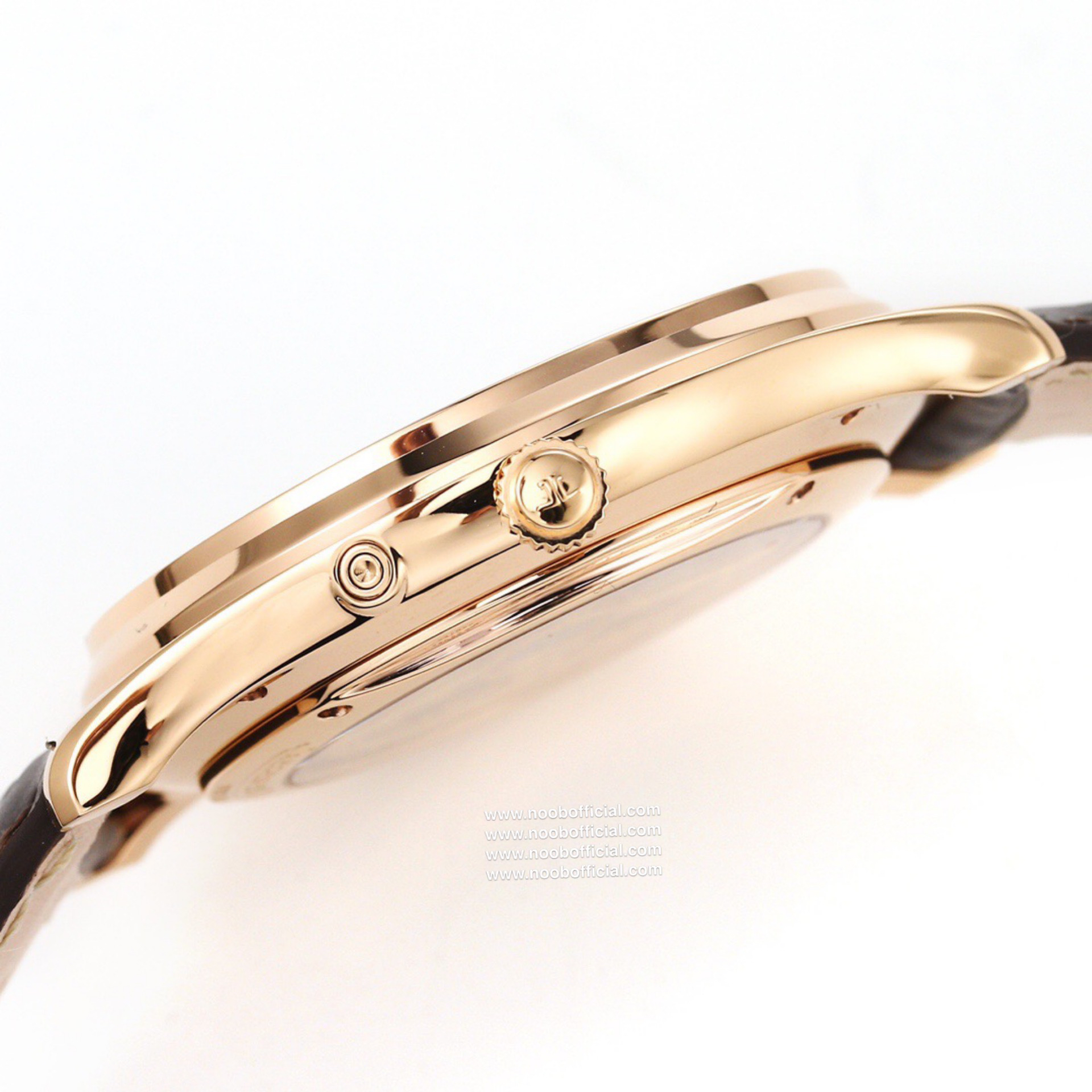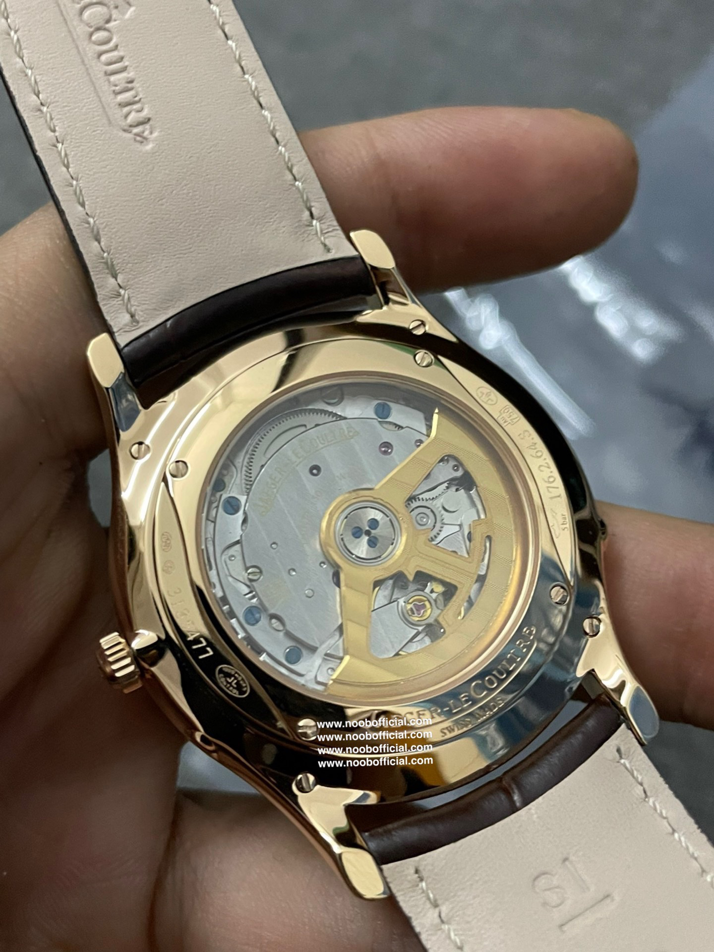 ZF积家月相大师系列,表壳直径39mmX9.9mm与原装同步。六点钟的子盘拥有阳历阴历(月相)双期显示,月相一月转一圈,功能和正品一致。【技术突破】采用9015改积家自产Cal.925/1机芯,功能百分百同步原装自产机芯。走时稳定,素质坚挺。【细节突破】从侧面观察腕表盘面发现有微微的弧度,ZF为了达到这一效果,耗时费力多次调整模具,确保神韵和感觉能与原装相媲美。ZF积家月相大师