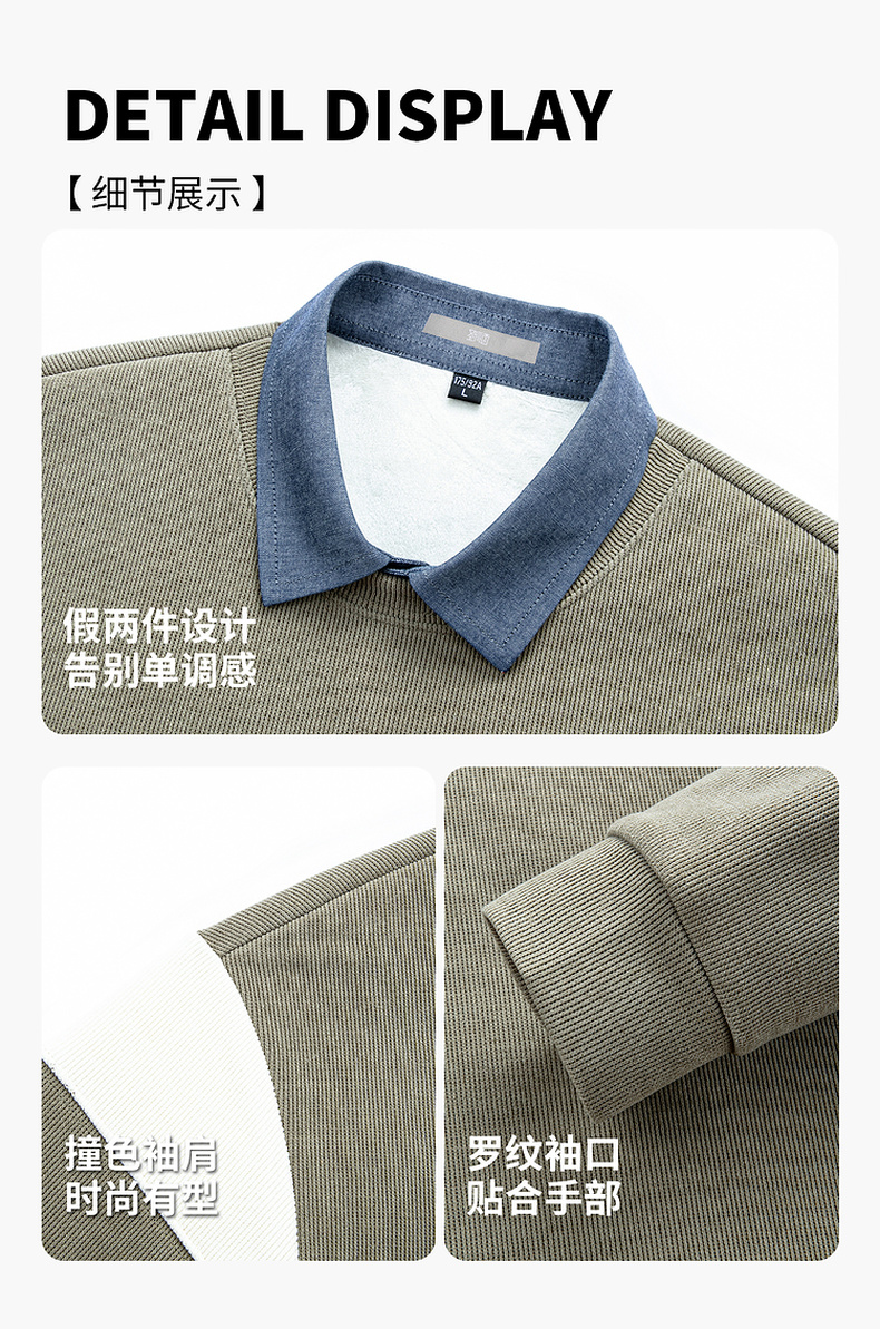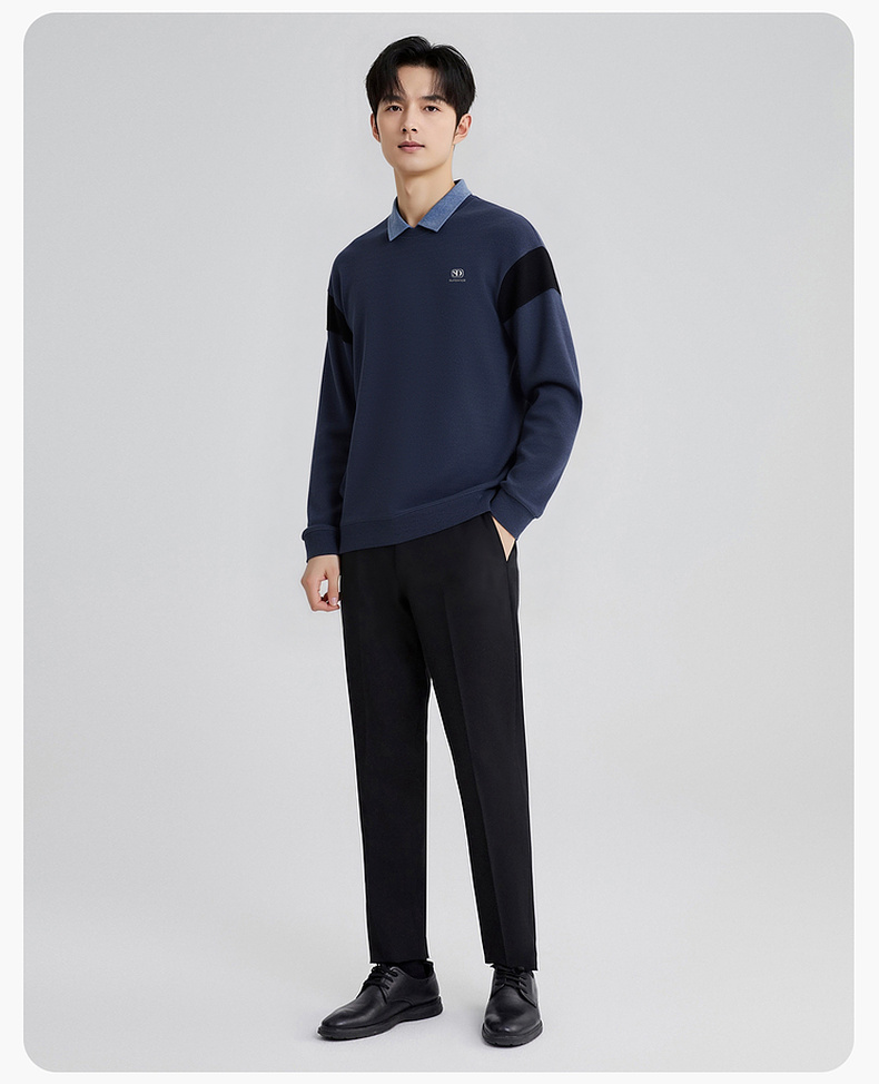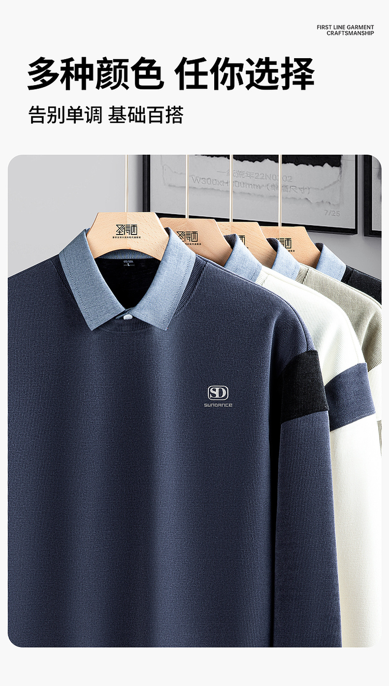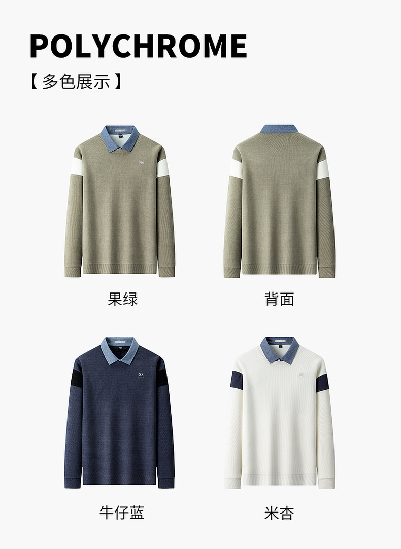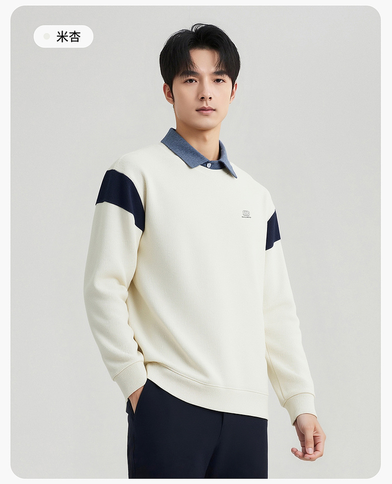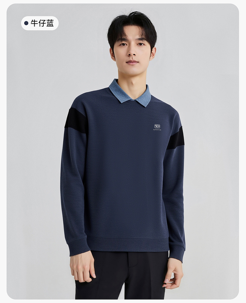 圣得西男士假两件卫衣2025秋季新款休闲百搭潮流套头polo领针织衫