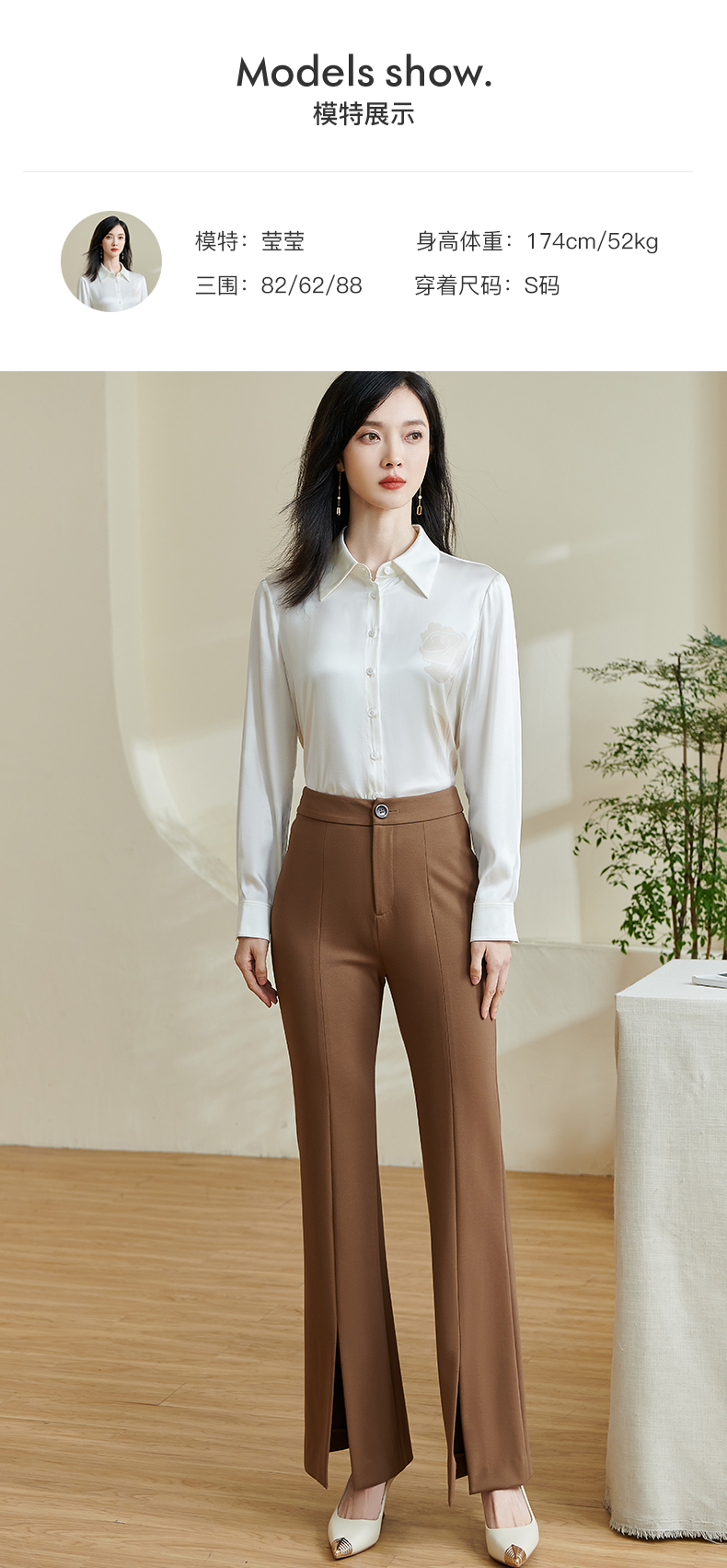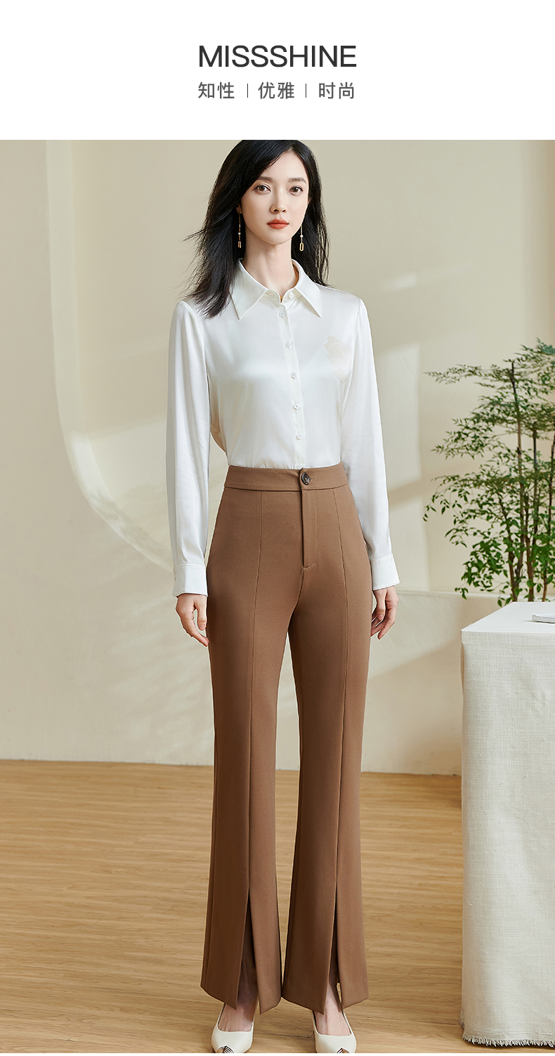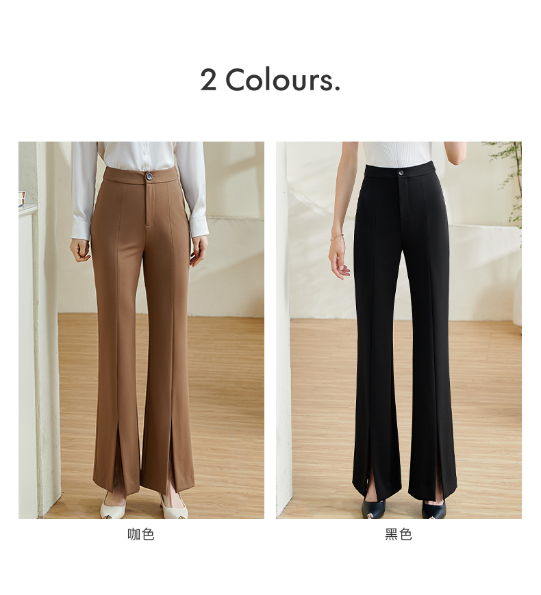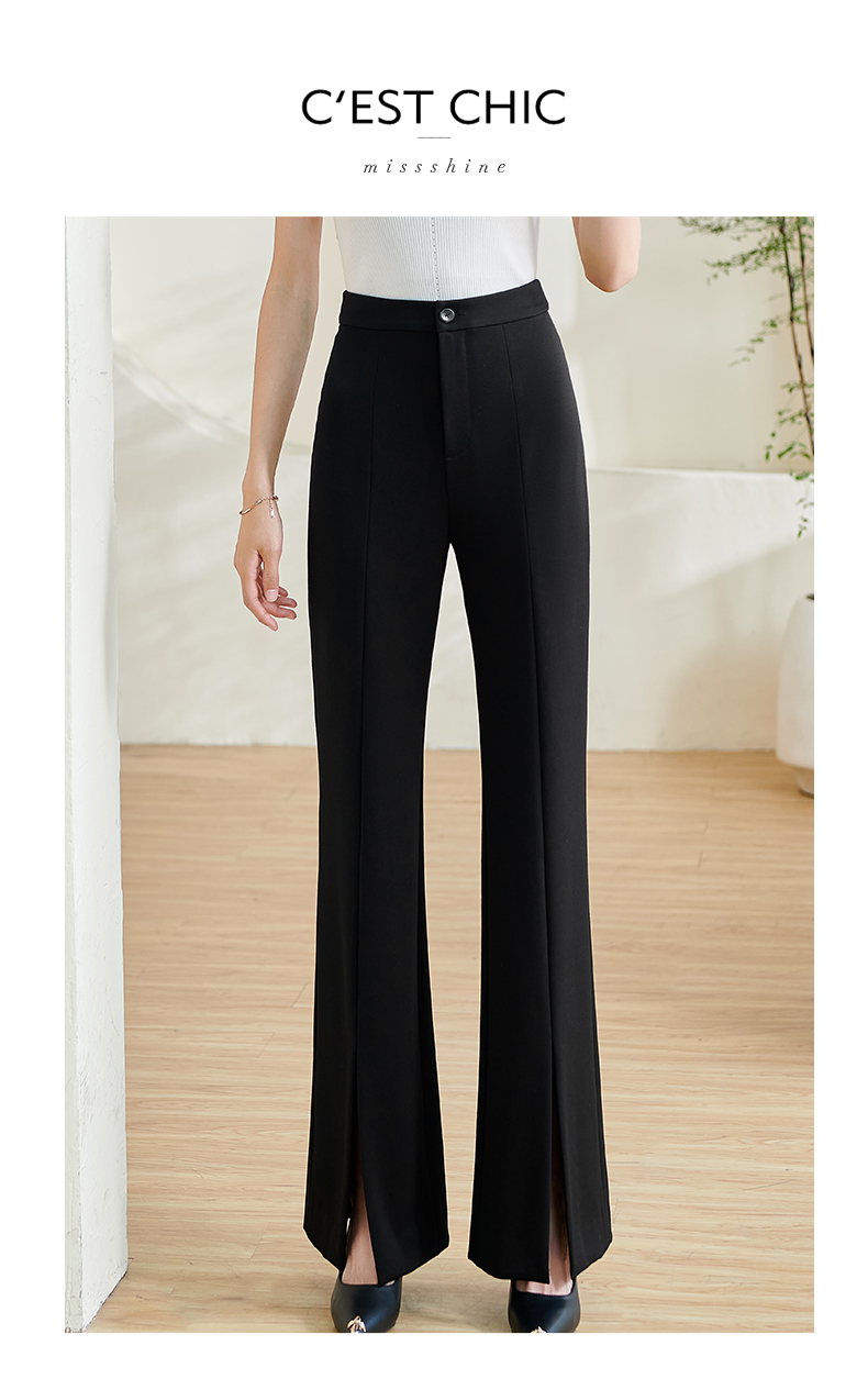 剩S/M/L/XL/XXL 米思阳2026春季新款时尚设计感修身微喇裤高腰开叉小个子长裤0078