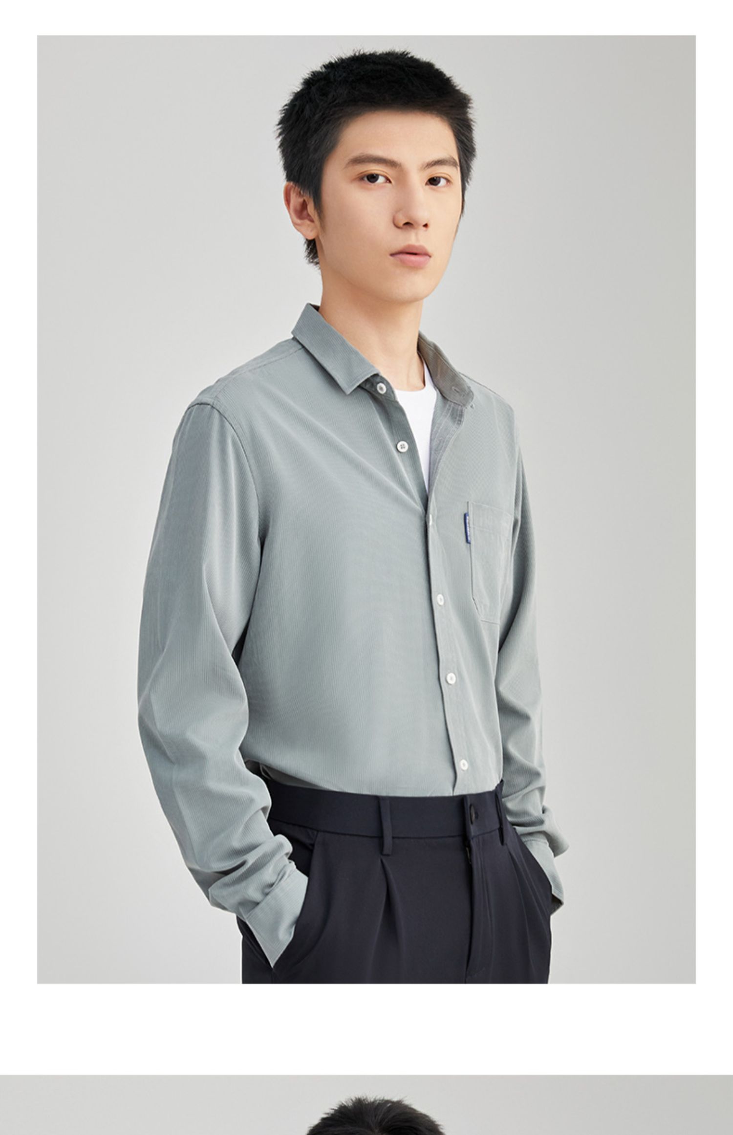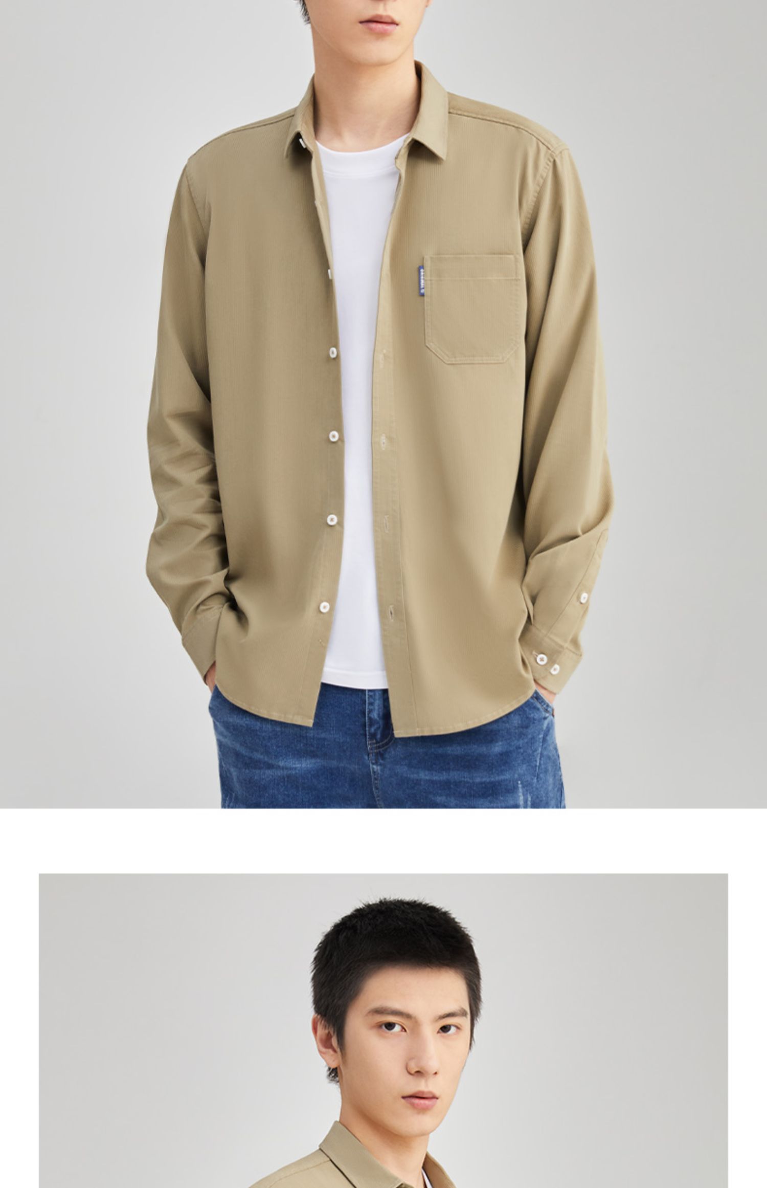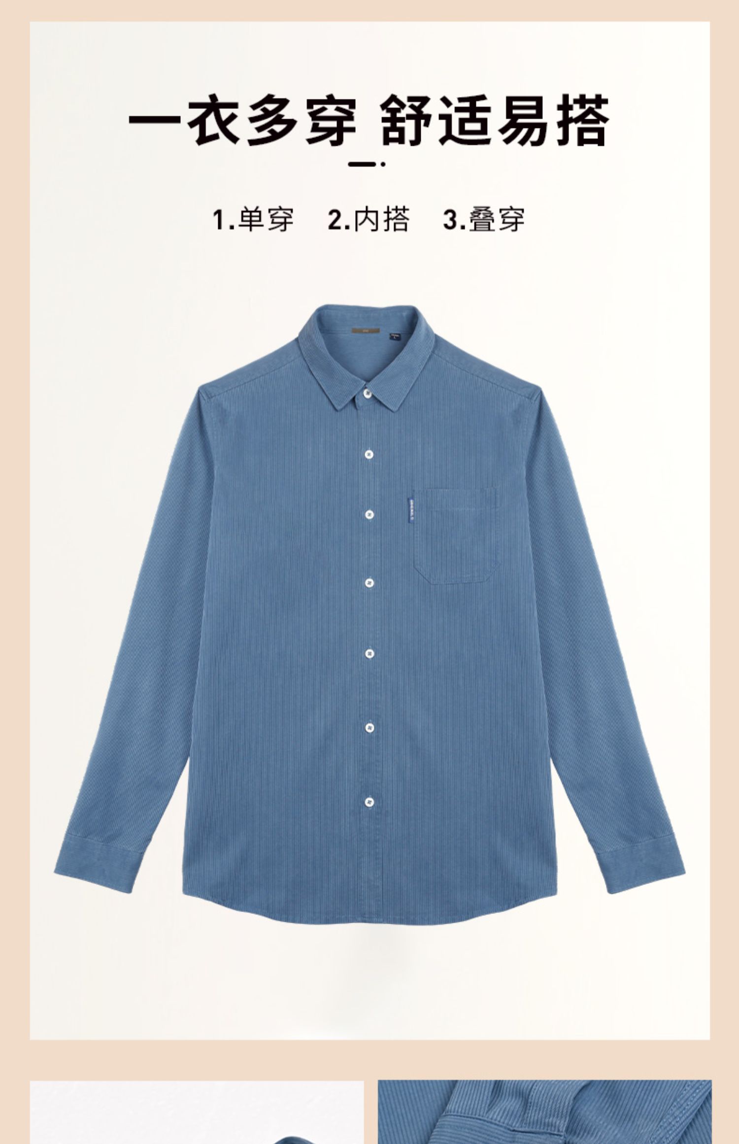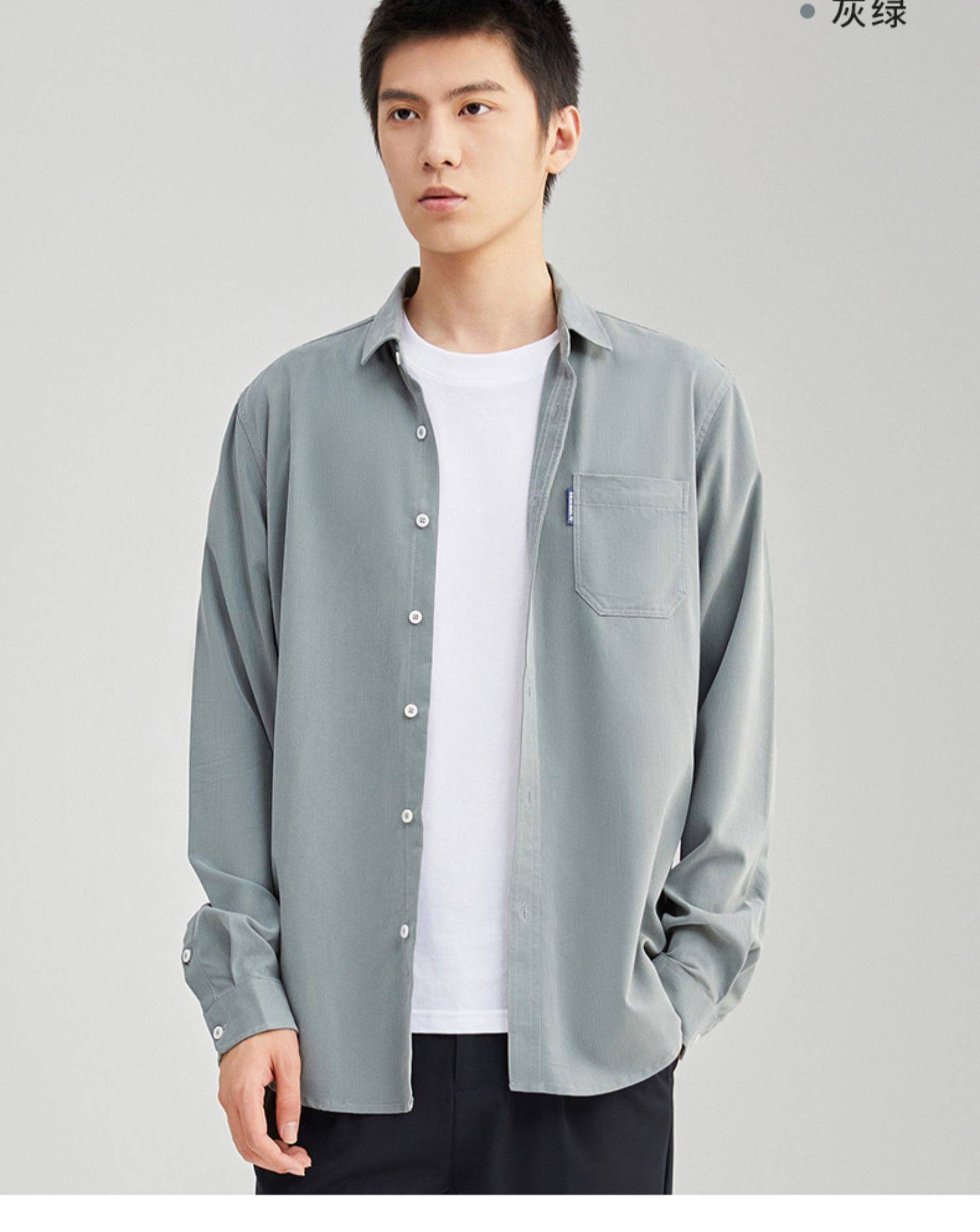 圣得西男装秋季新品斜纹灯芯绒长休闲衬衫2352954507A