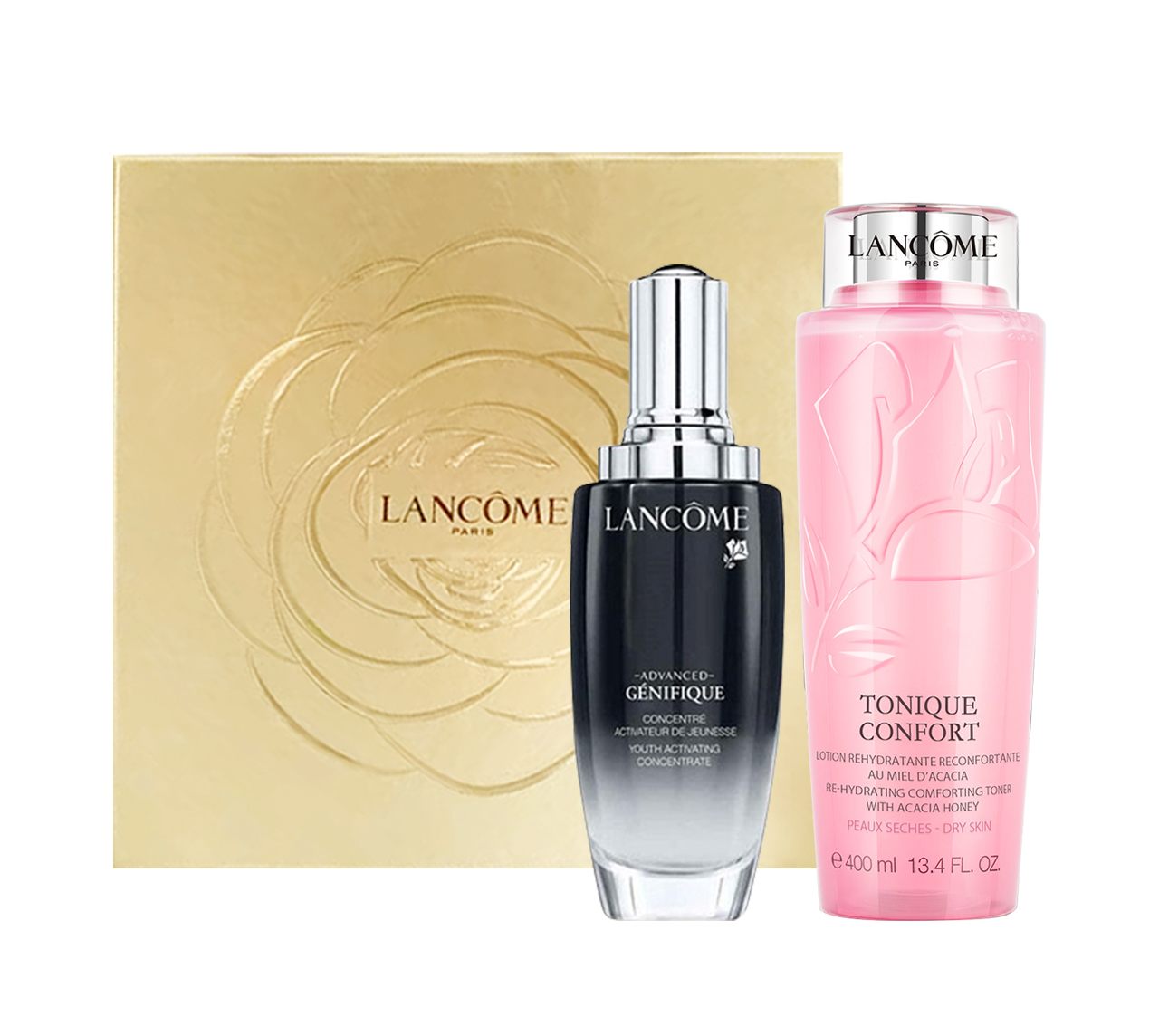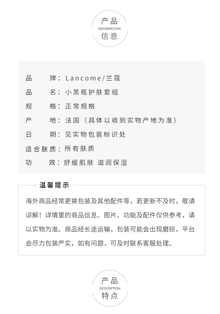 兰蔻小黑瓶眼面修护礼盒(小黑瓶精华100ml+发光眼霜15ml/粉水400ml)淡化黑眼圈细纹焕亮套装