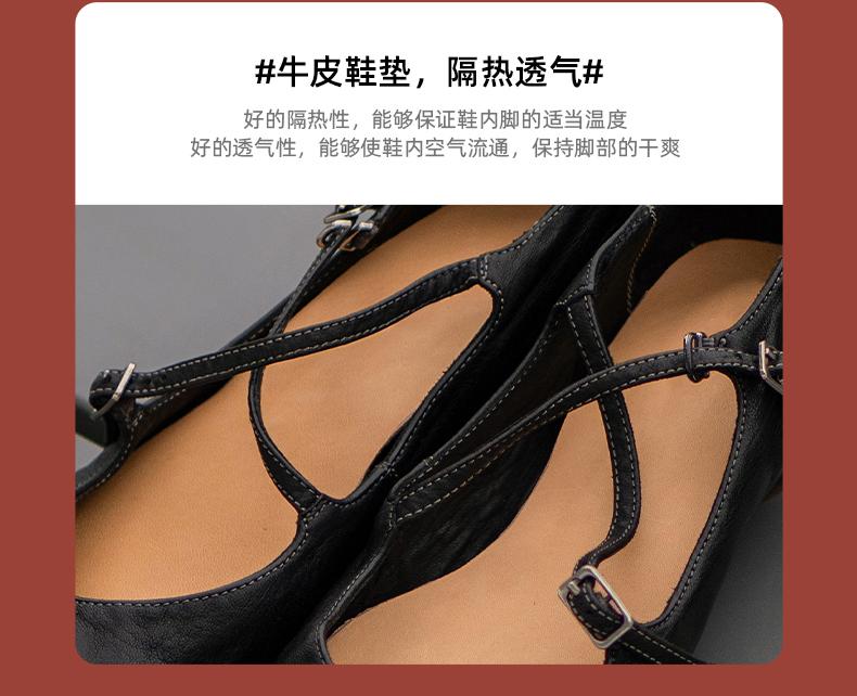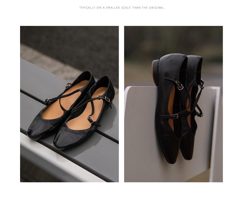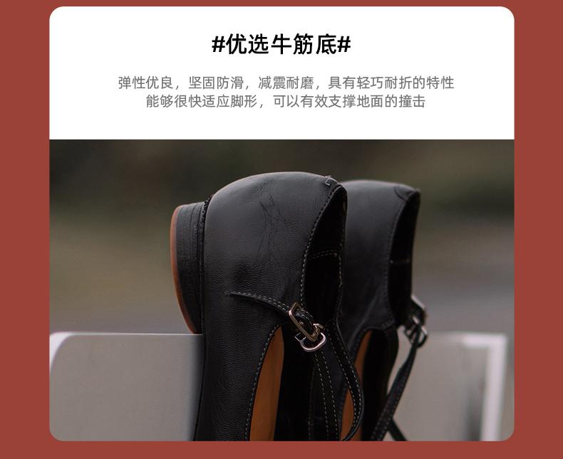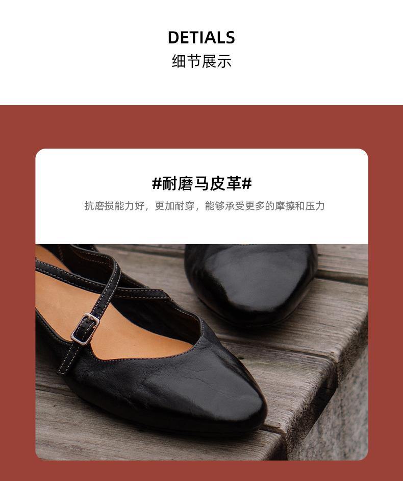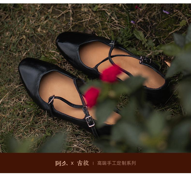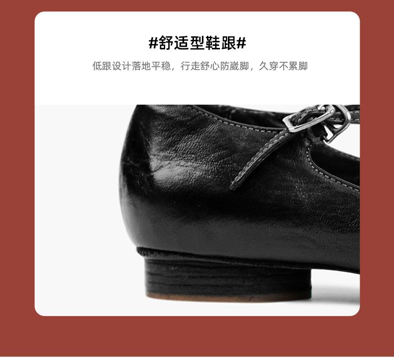 【阿么古纹马皮鞋】一字扣复古小众设计感玛丽珍鞋子小众设计感1CM