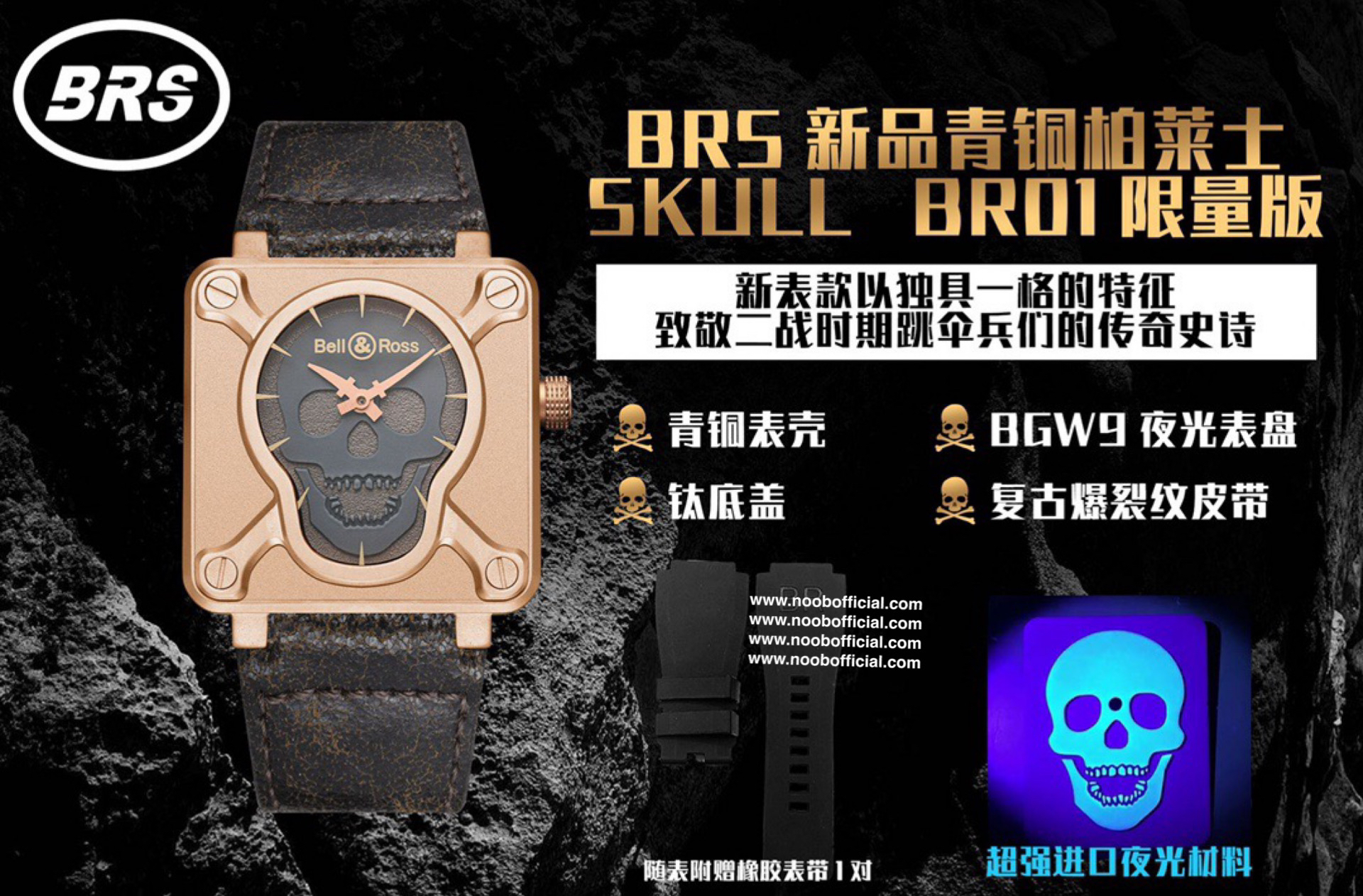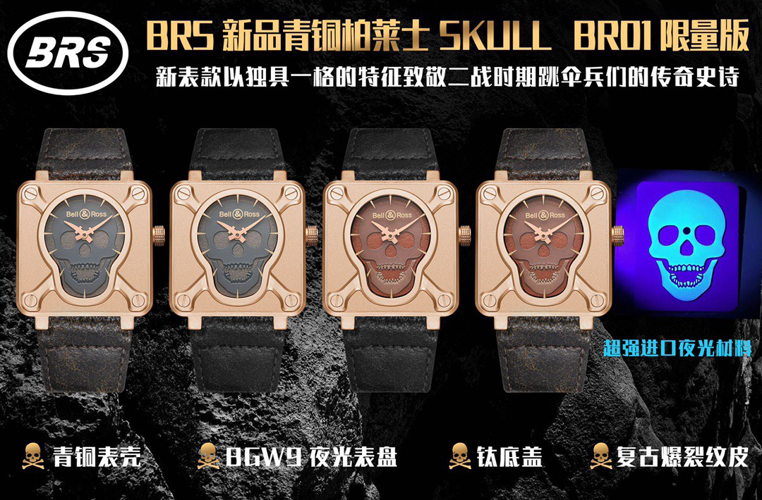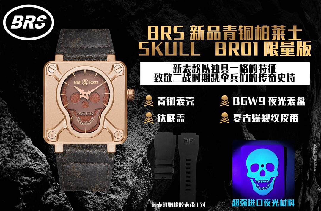 🔥🔥🔥BRS年末钜献,BR 01 SKULL BRONZE,柏莱士Bell & Ross突破传统制表工艺,推出首款Skull(骷髅) BR 01腕表,令人过目难忘。专柜一表难求…