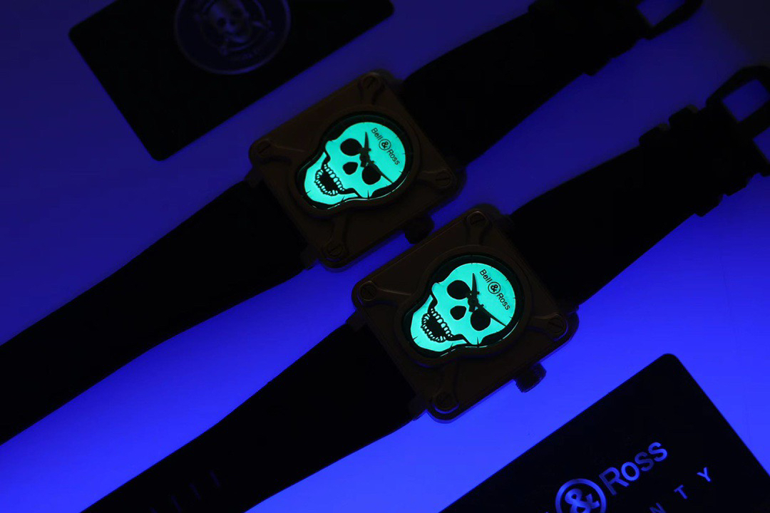 表盘:荧光骷髅头采用瑞士进口BGW9超强夜光,夜光成本极高,