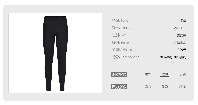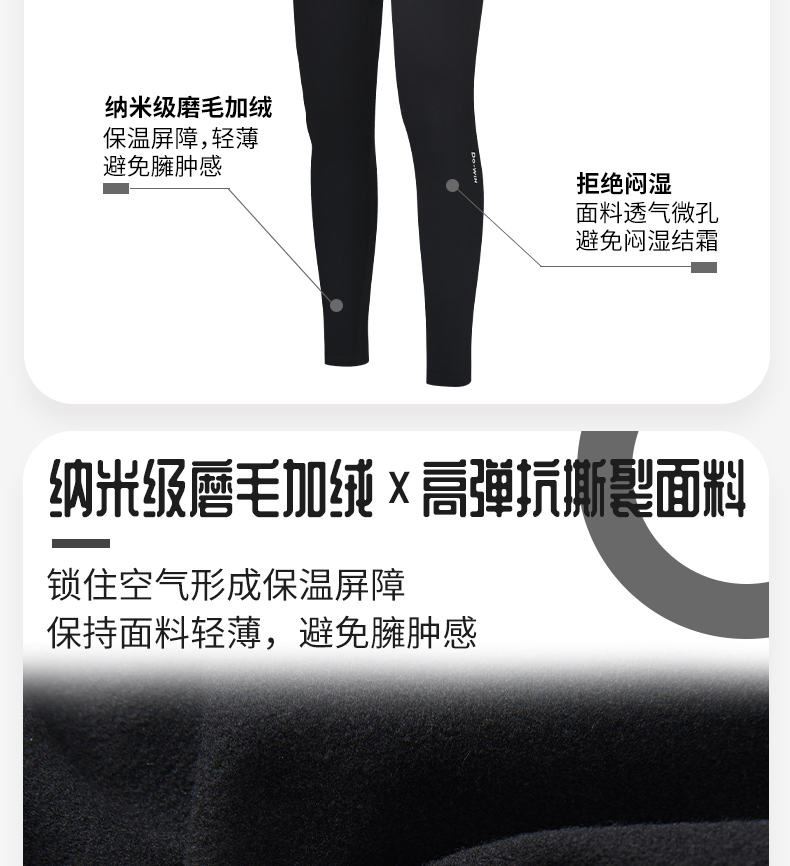 多威秋冬薄绒保暖男女高弹跑步运动户外压缩裤3552180