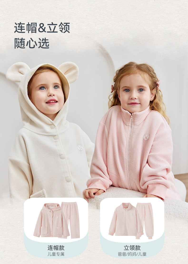 【感恩直降 2025秋冬新品】 i-baby抗静电保温猫猫绒立领亲子成人套装