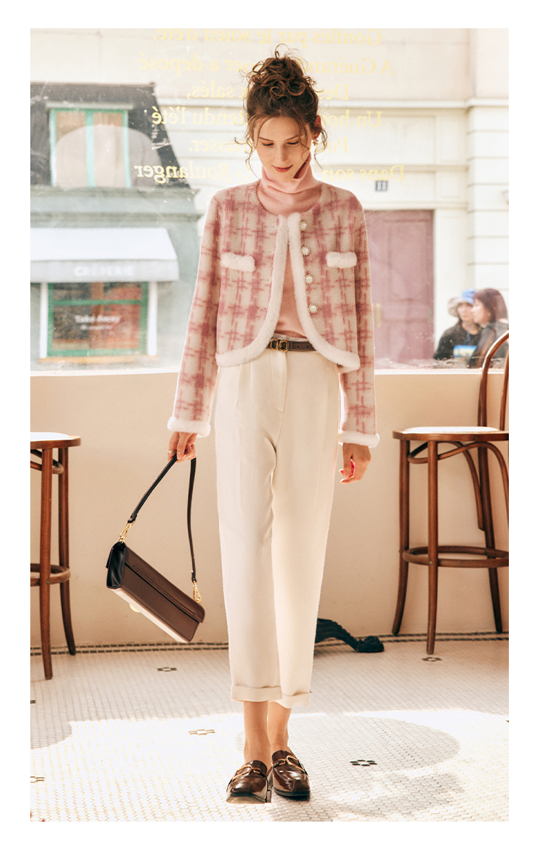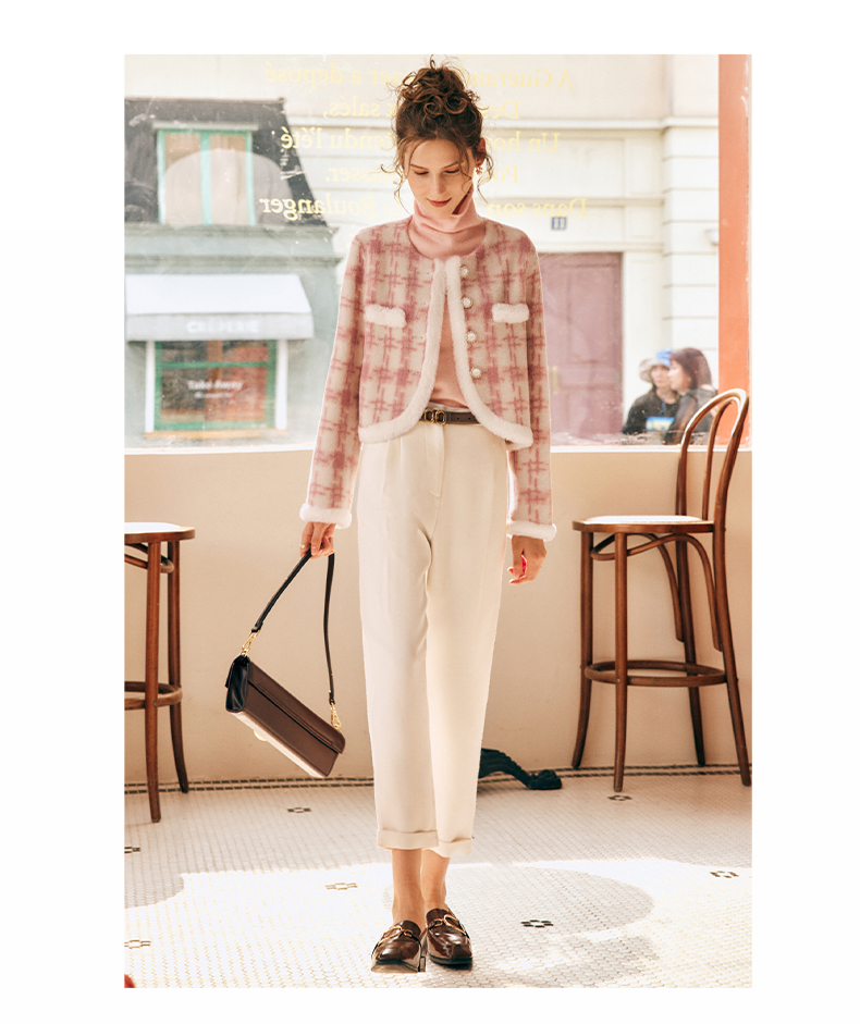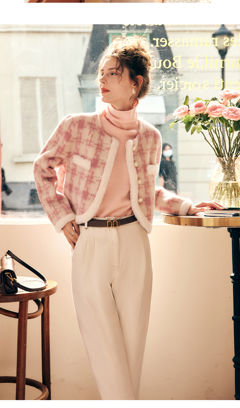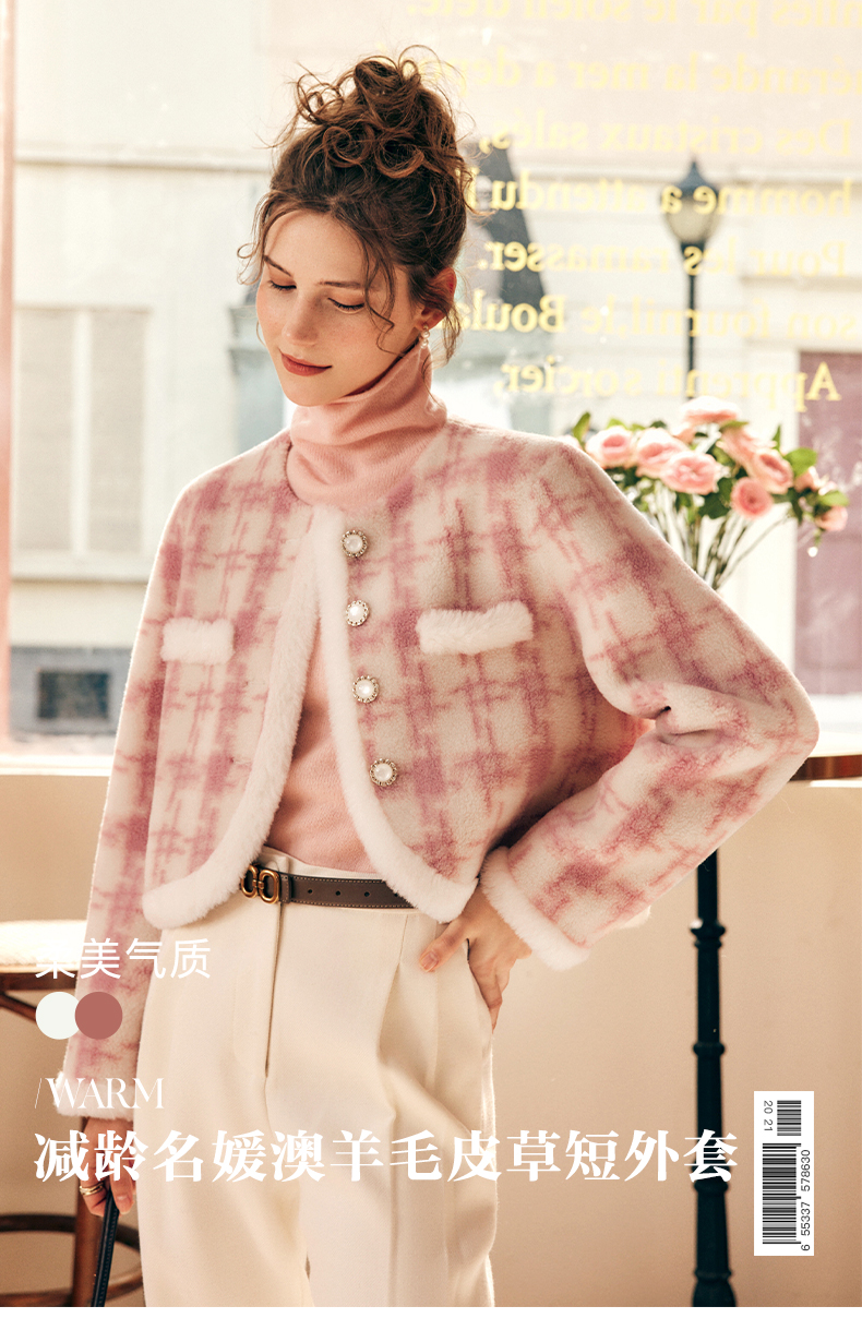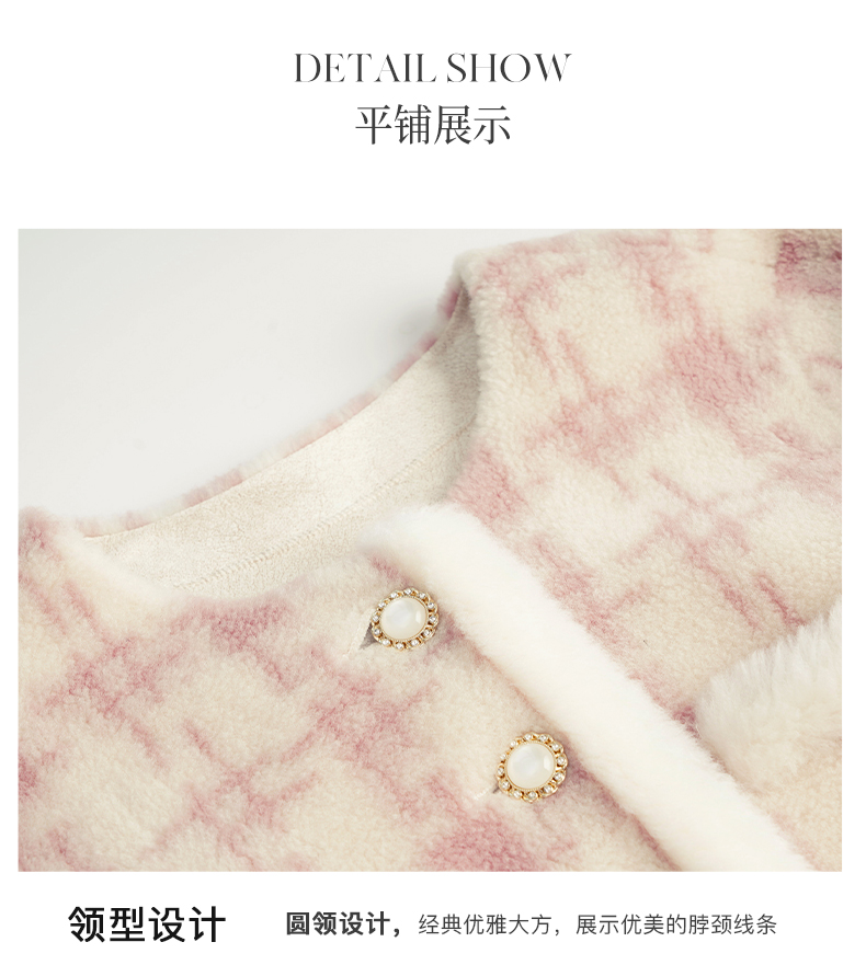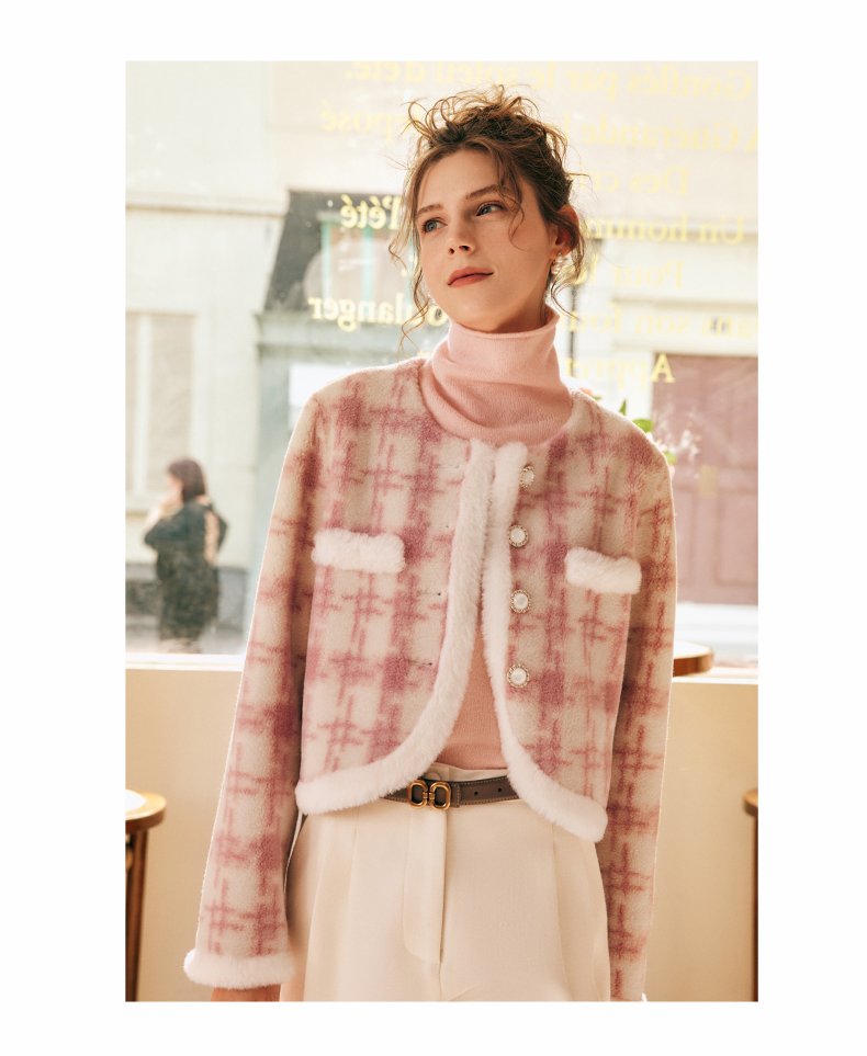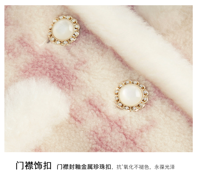 OLrain欧芮儿法式粉色毛呢外套女秋冬2022年新款皮毛一体短款大衣