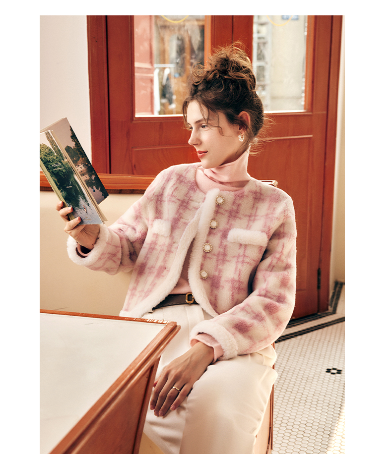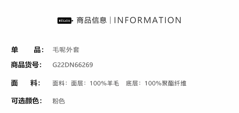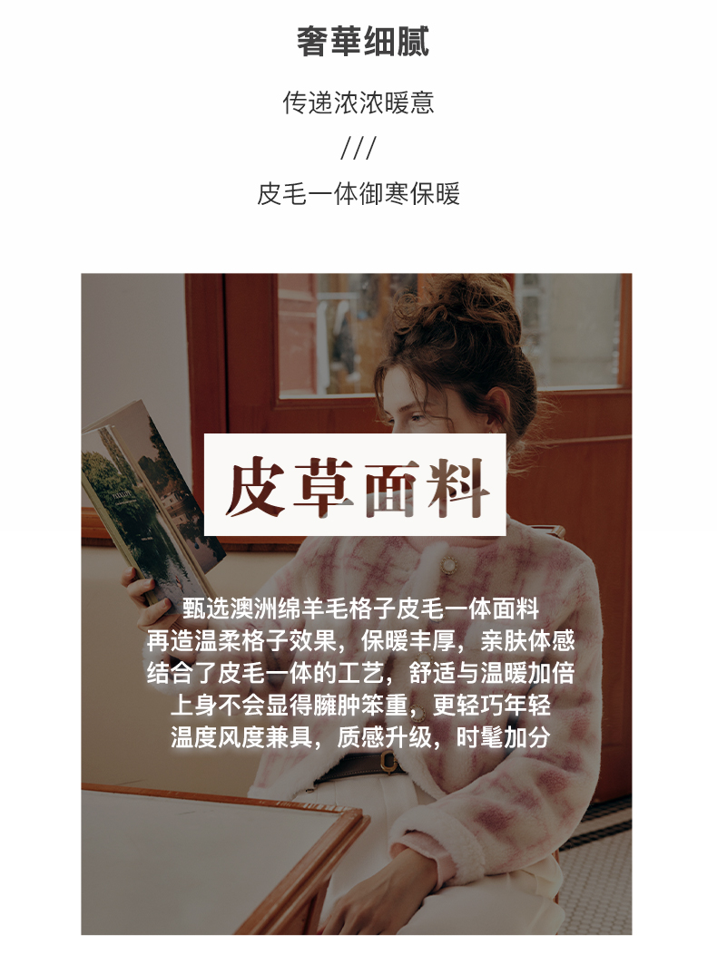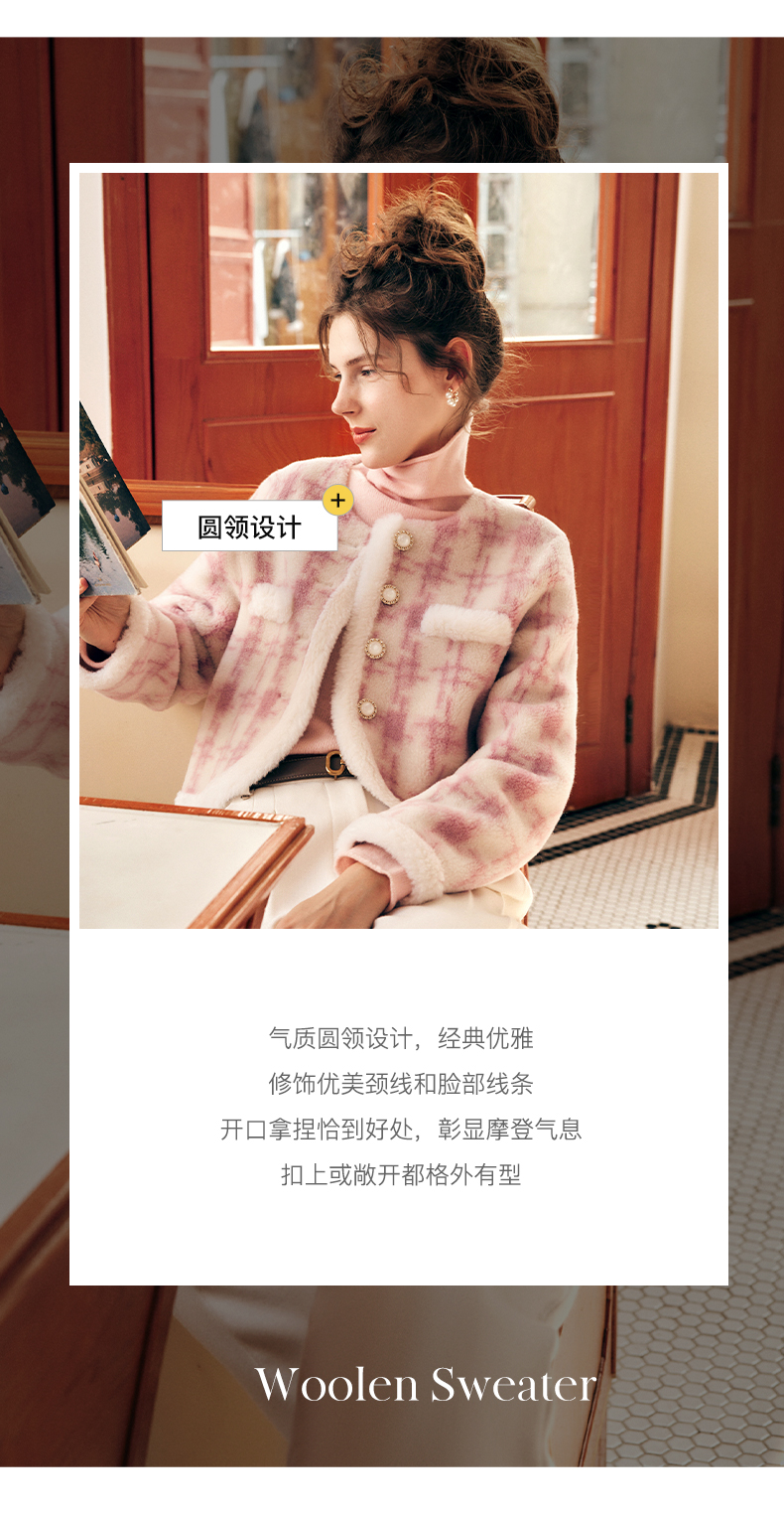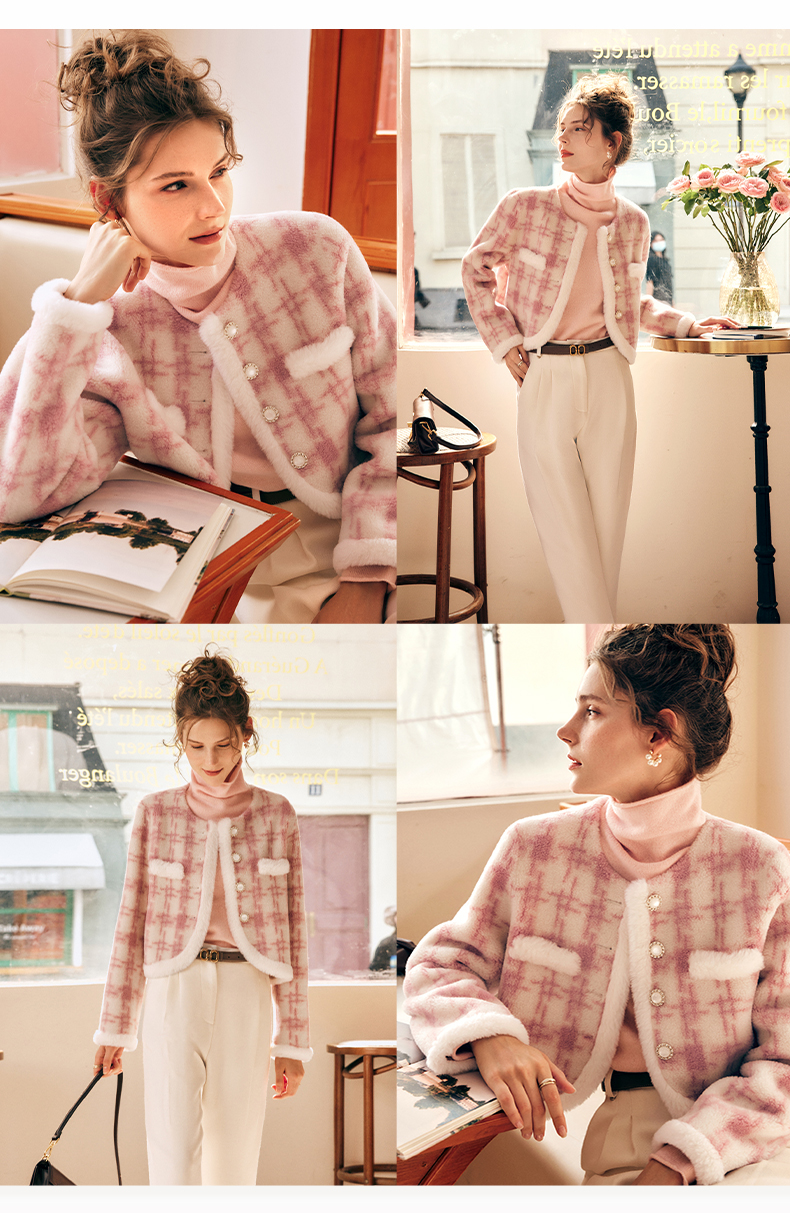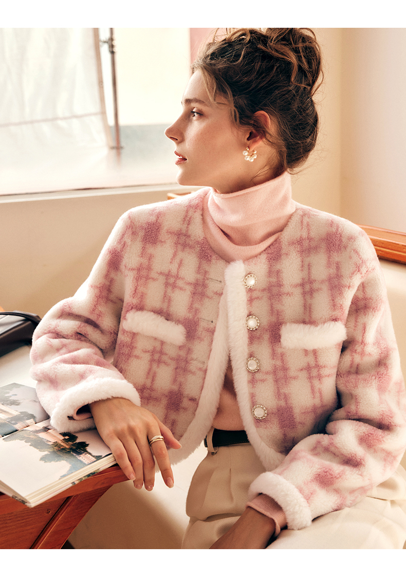 OLrain欧芮儿法式粉色毛呢外套女秋冬2022年新款皮毛一体短款大衣