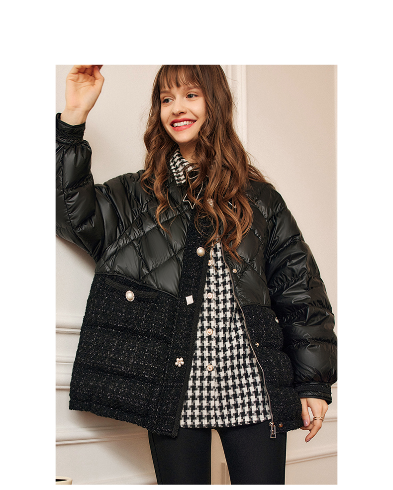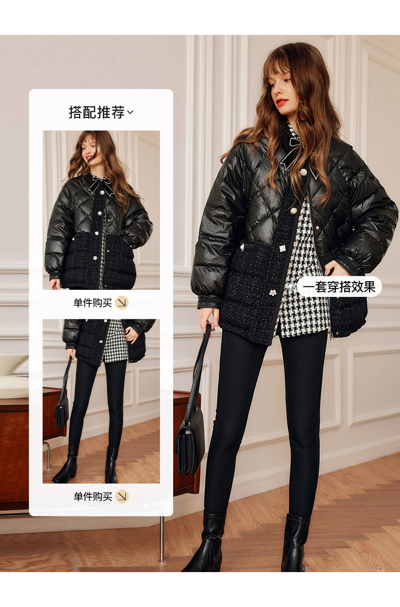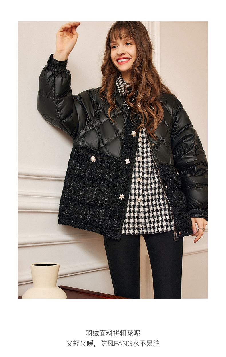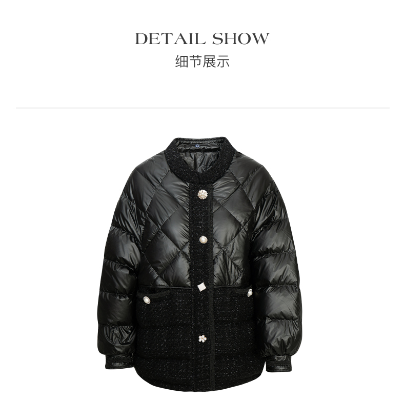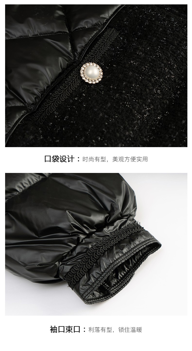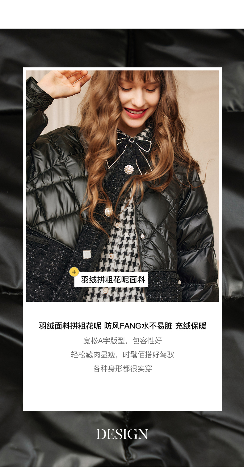 OLrain欧芮儿法式黑色羽绒服女秋冬2022新款小香风白鸭绒加厚外套