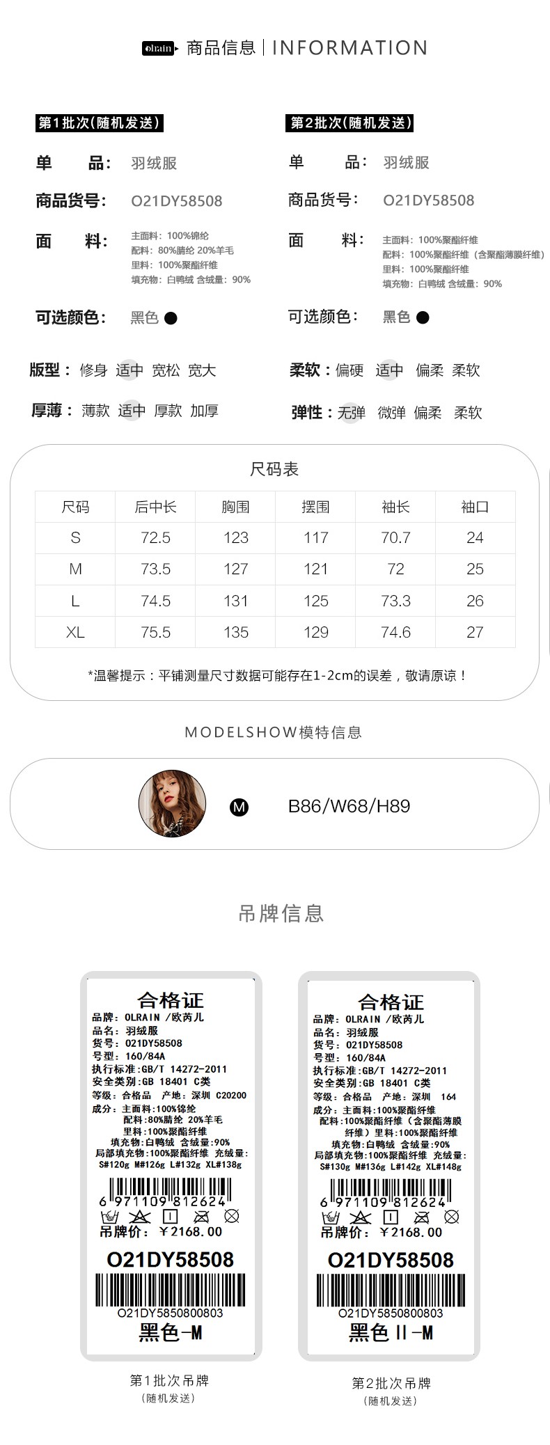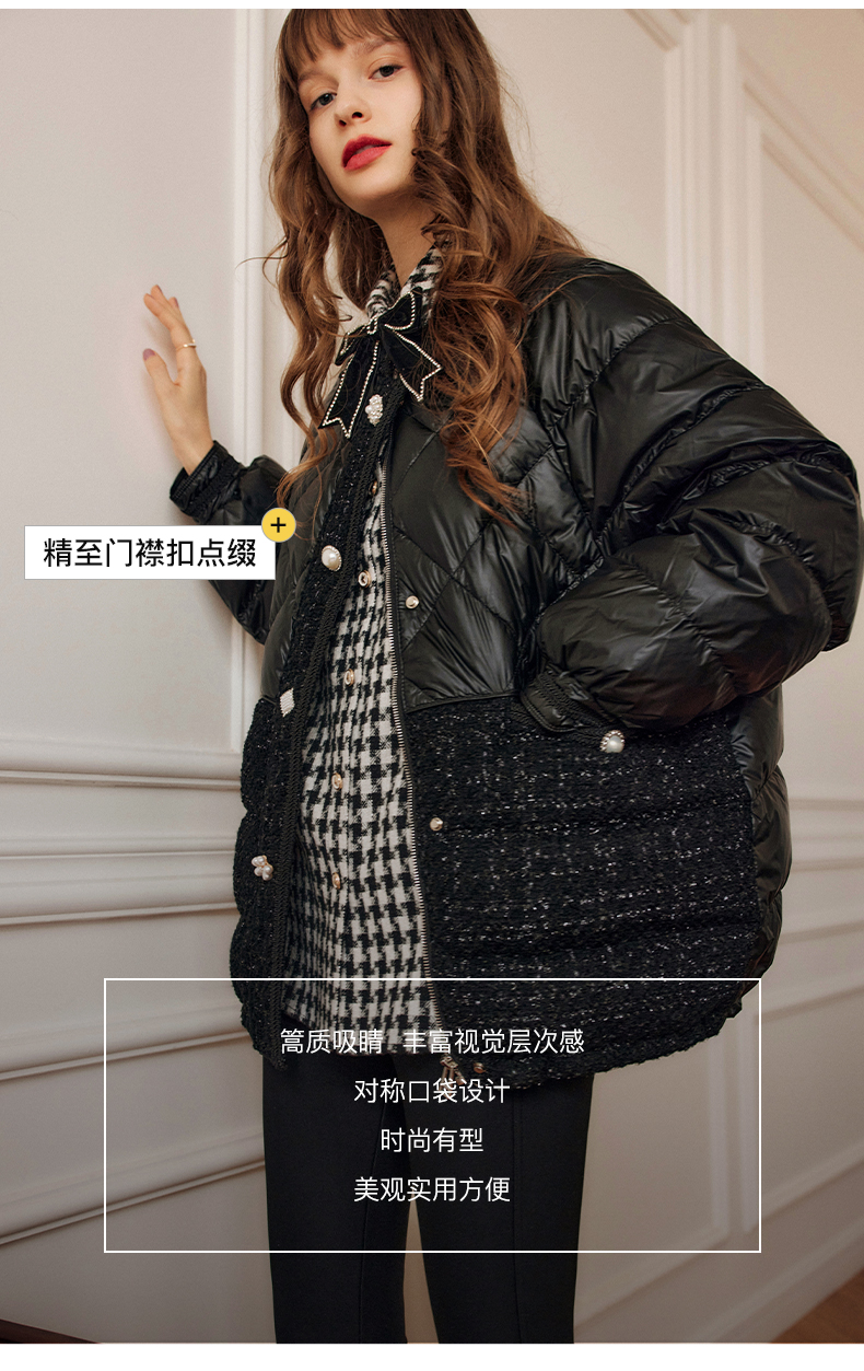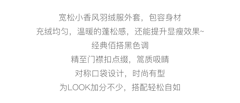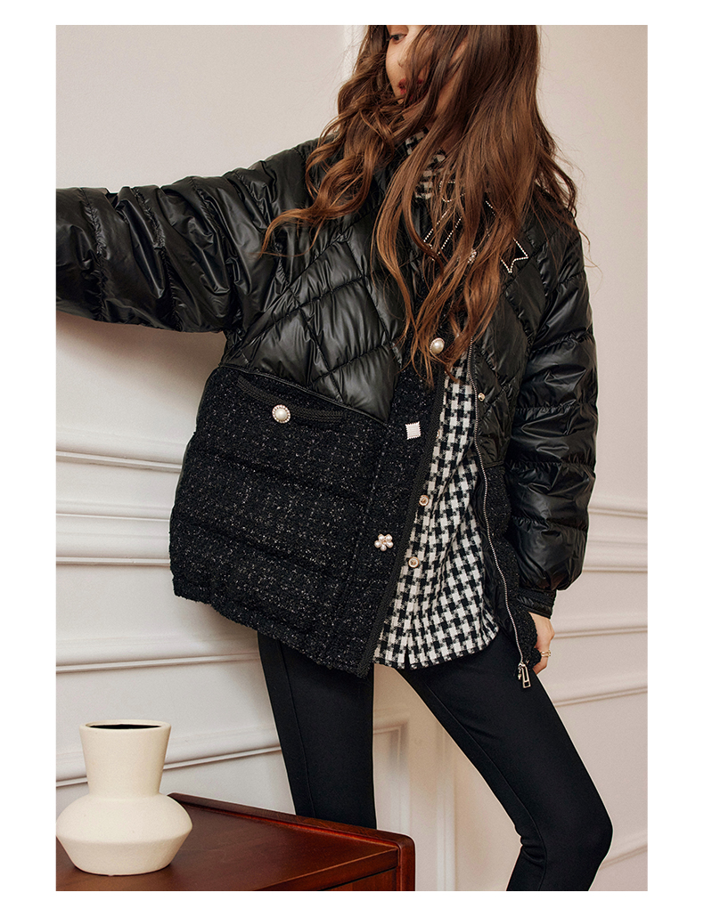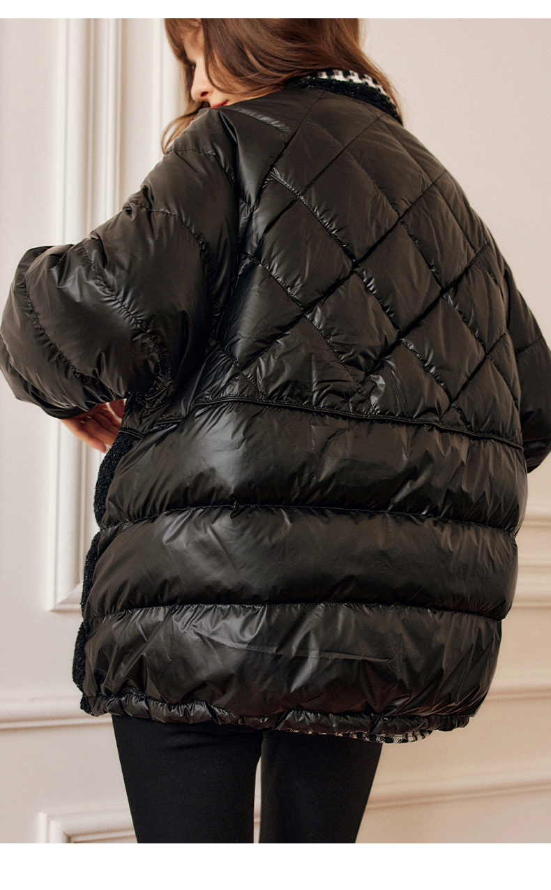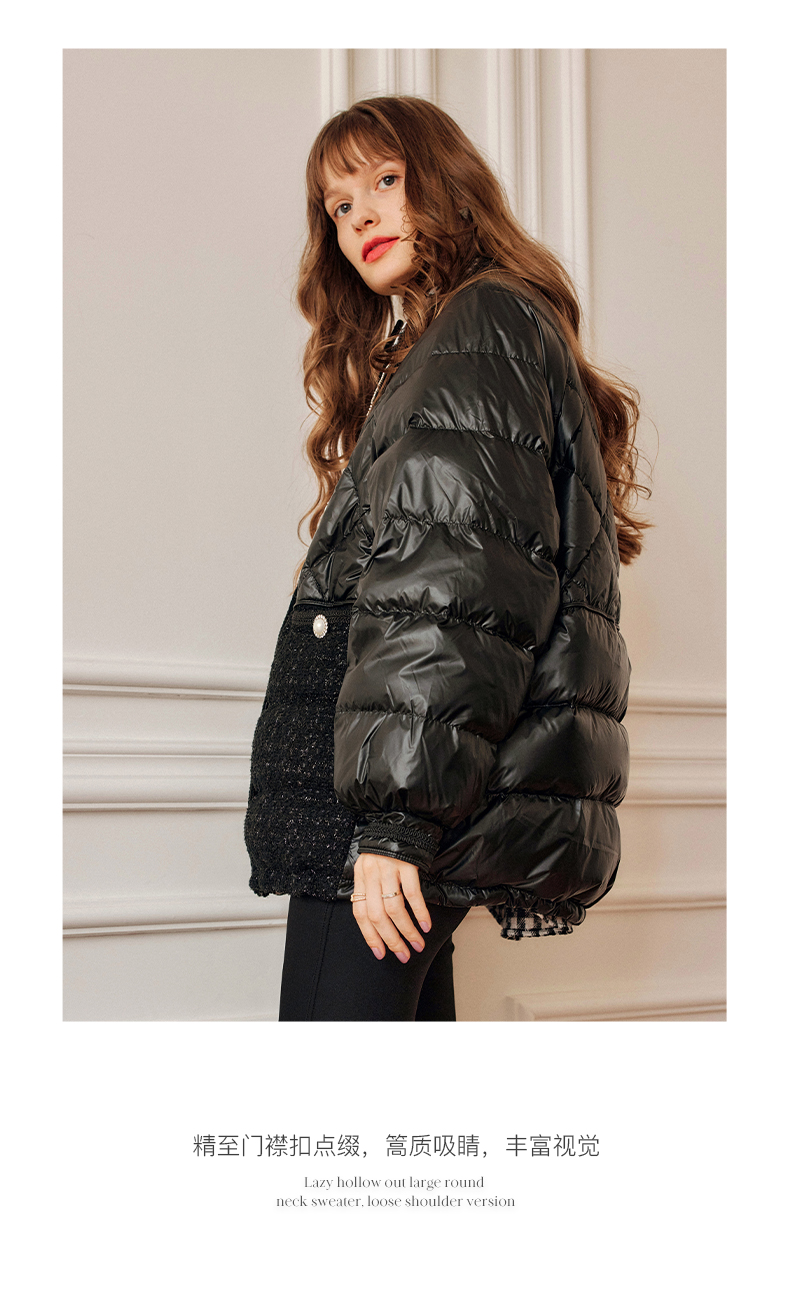 OLrain欧芮儿法式黑色羽绒服女秋冬2022新款小香风白鸭绒加厚外套