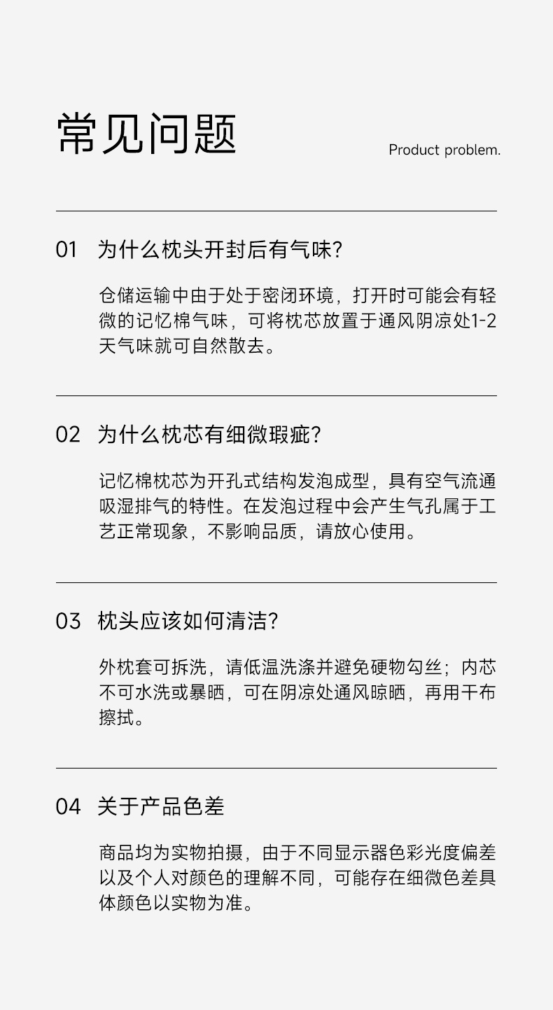 因为记忆枕芯是由聚氨酯一体发泡成型,加上生产出来直接进行封装包好,所以大家收到刚打开包装时会有一点气味残留不好闻,但是这个材质本身是不含刺激物质的,可以不用担心,只需放在通风处散味2-3天,气味就会逐渐变淡不影响使用