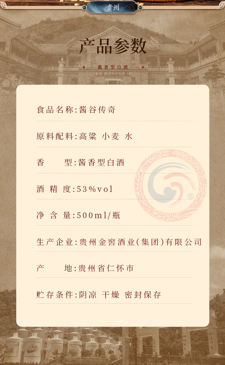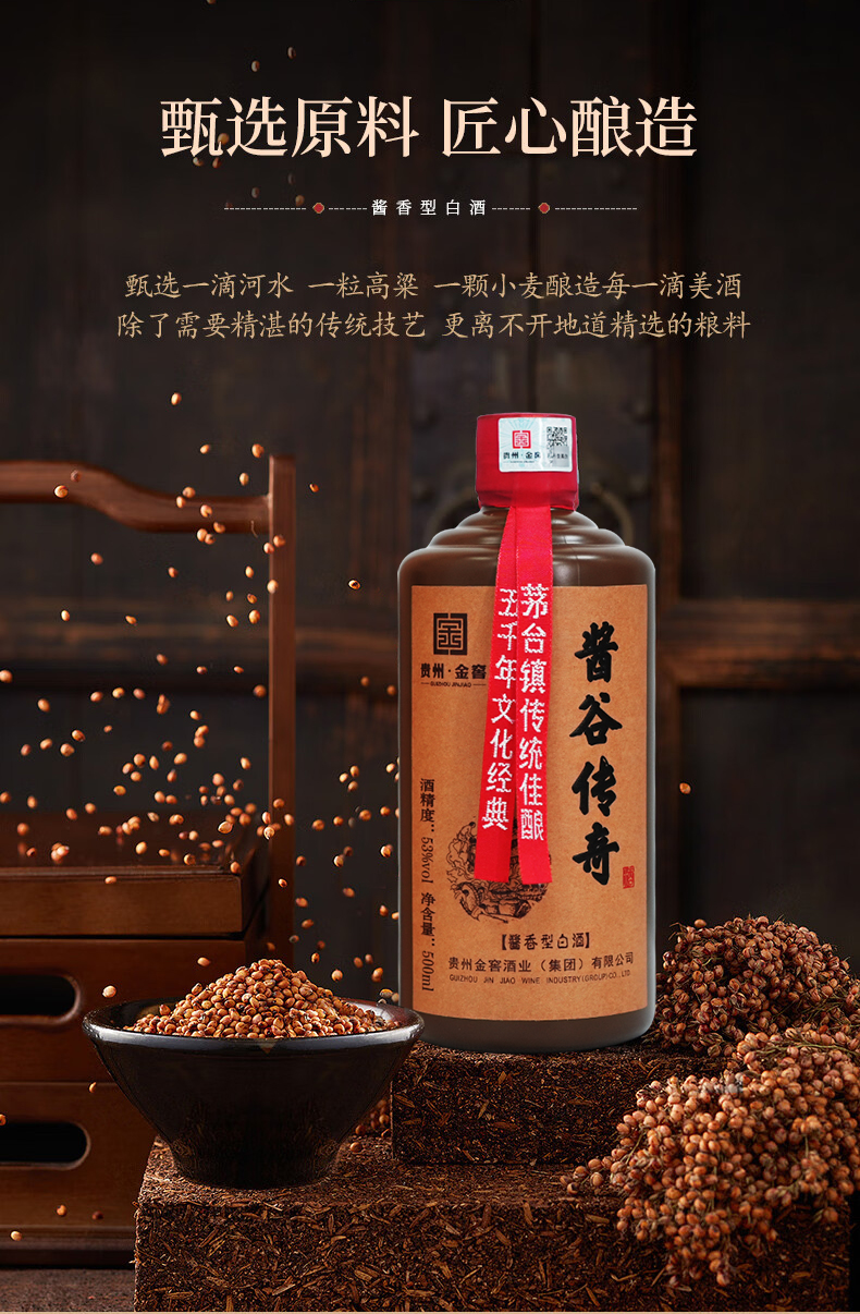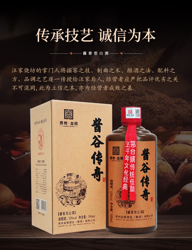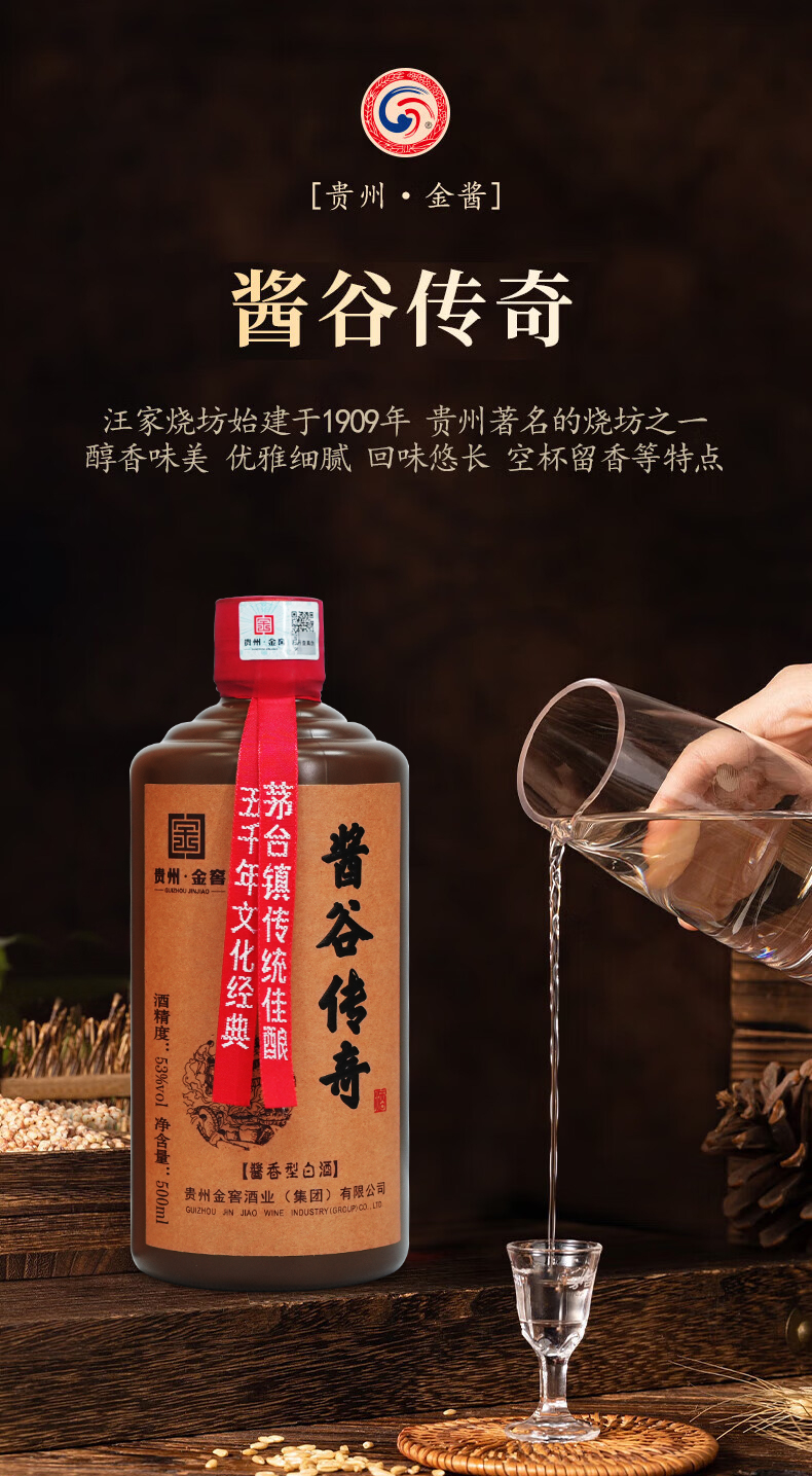 53度金窖酱谷传奇酱香型白酒1*6*500ML