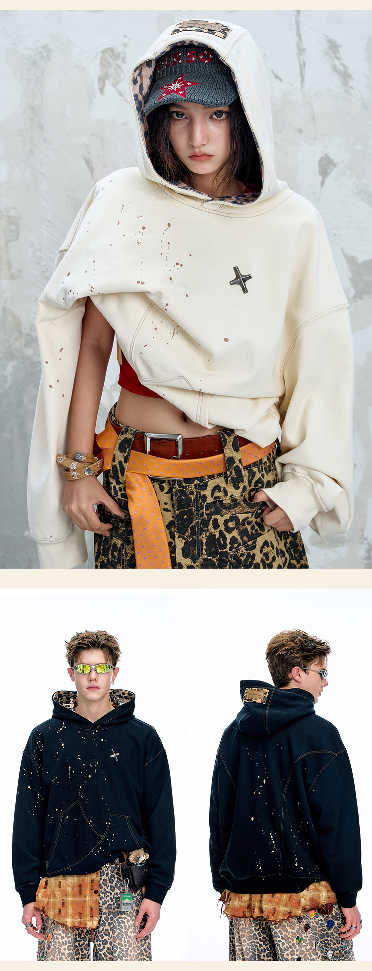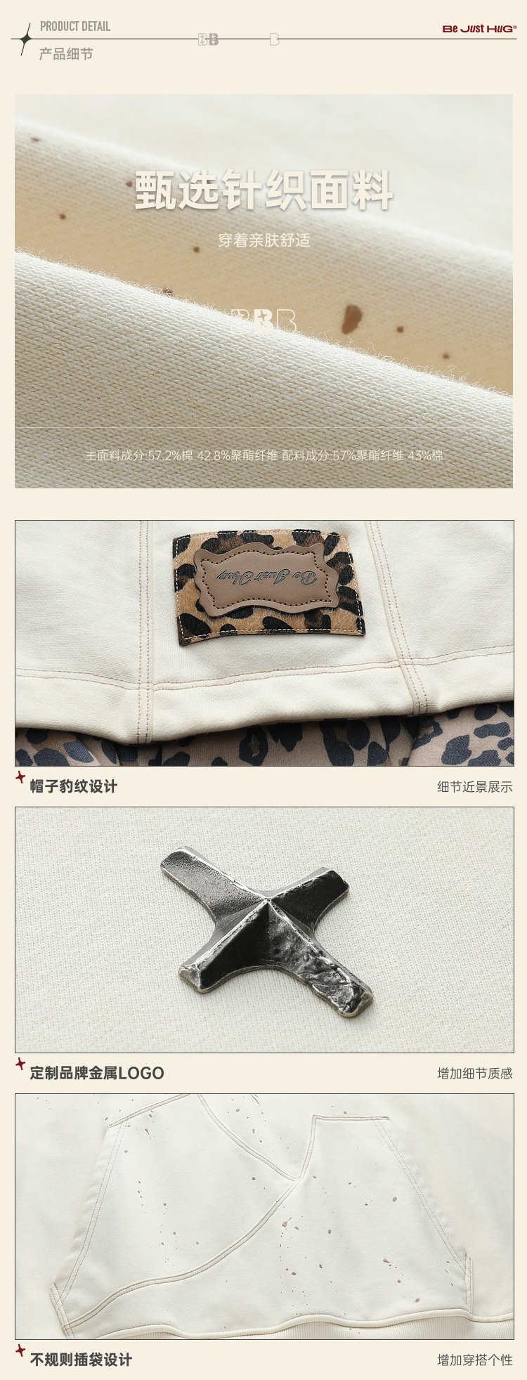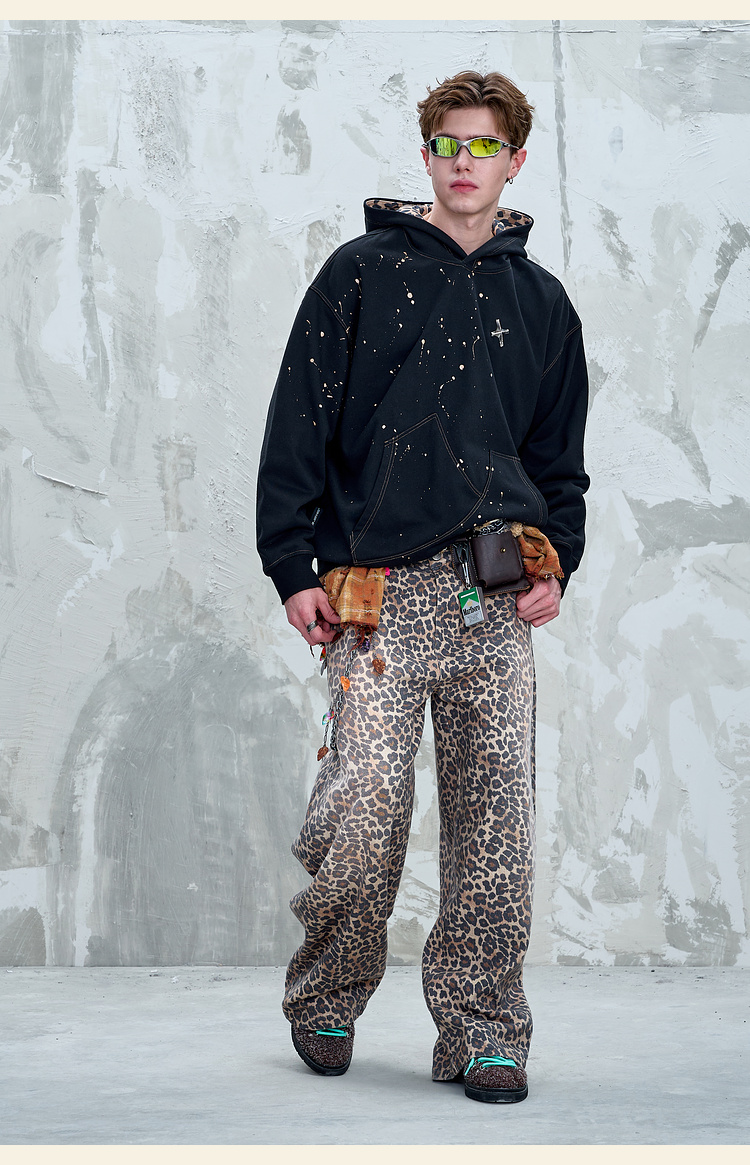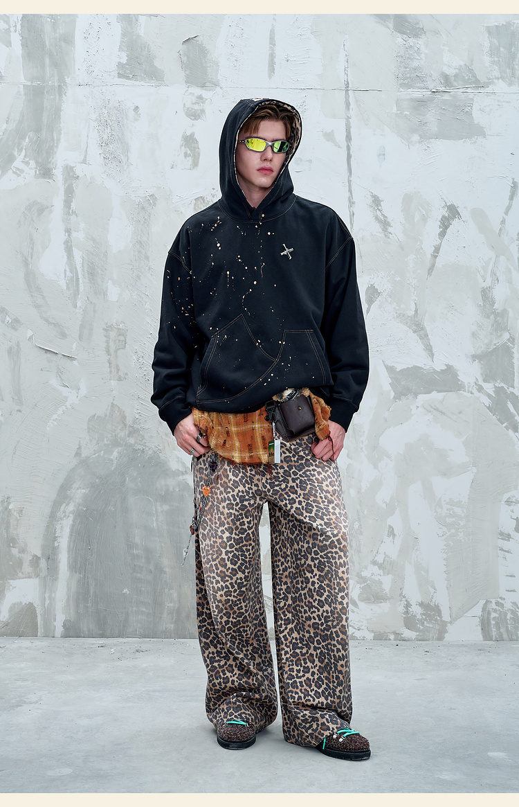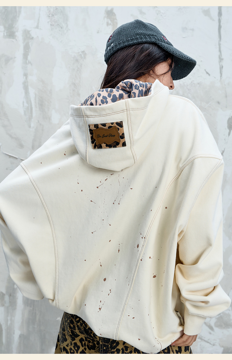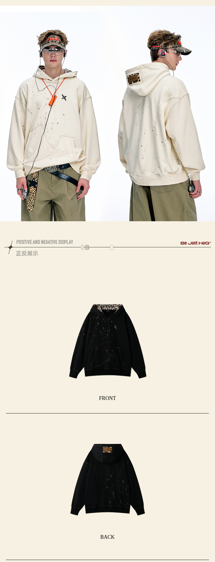 BJHG不计后果美式豹纹连帽卫衣男款2025新款潮明线撞色泼墨外套女
