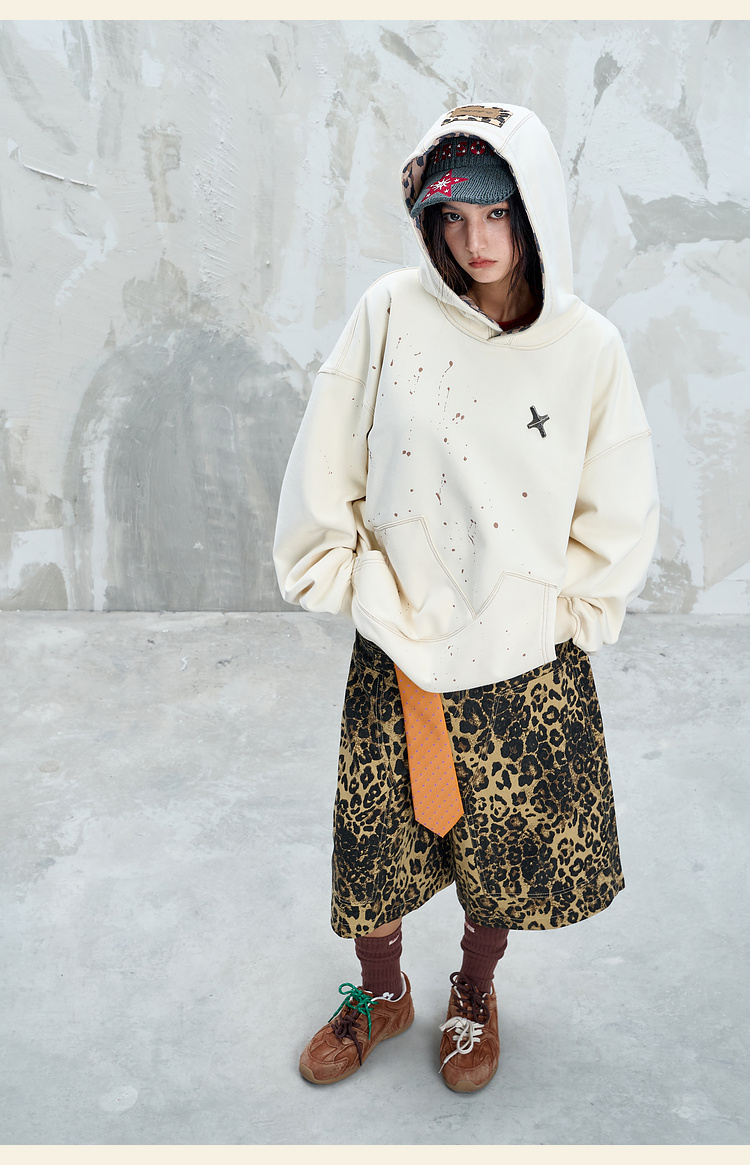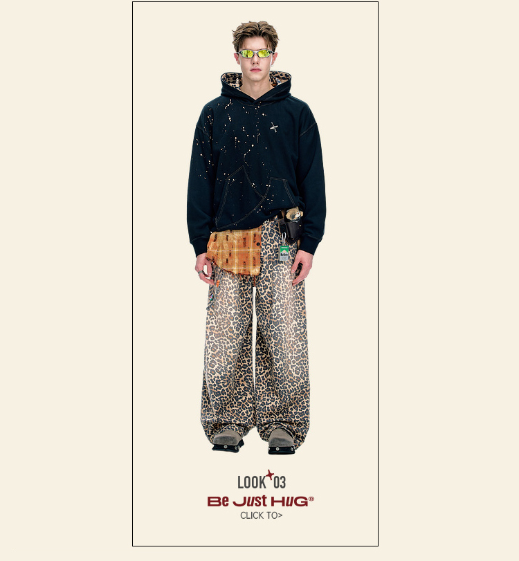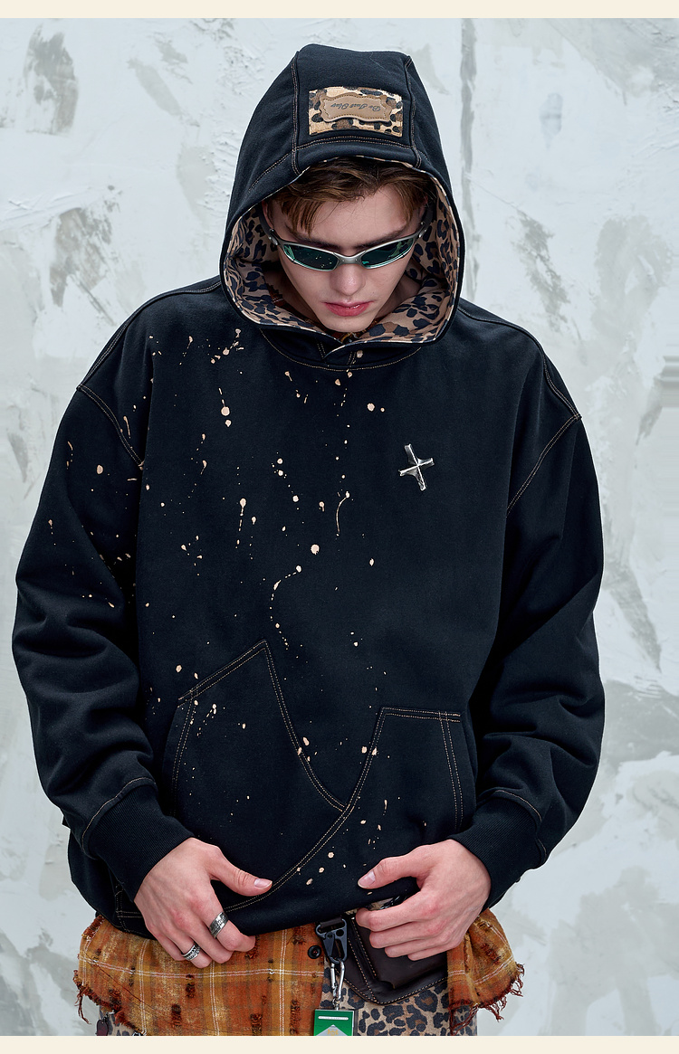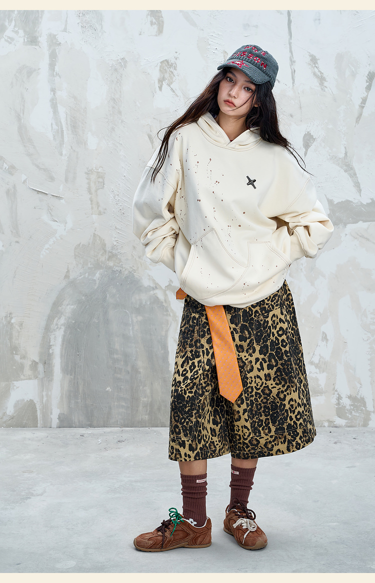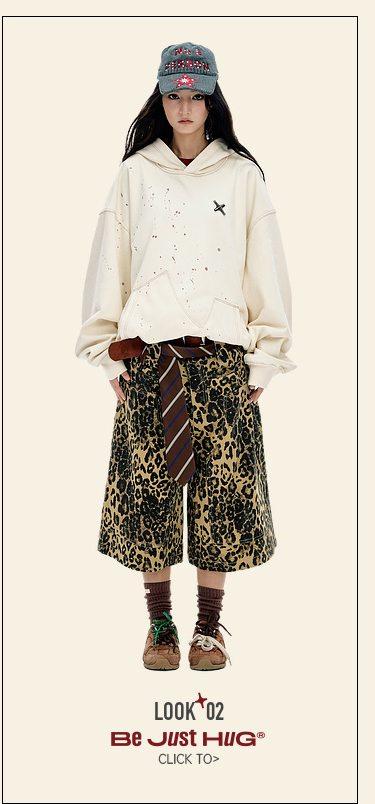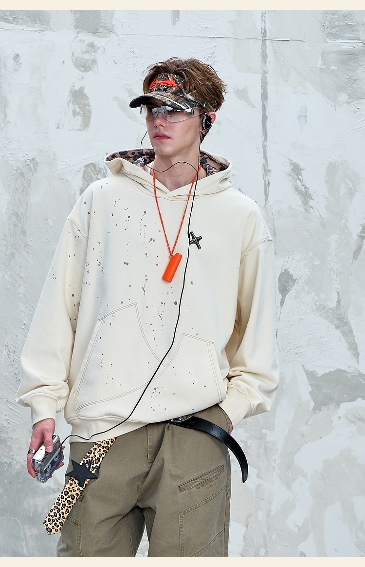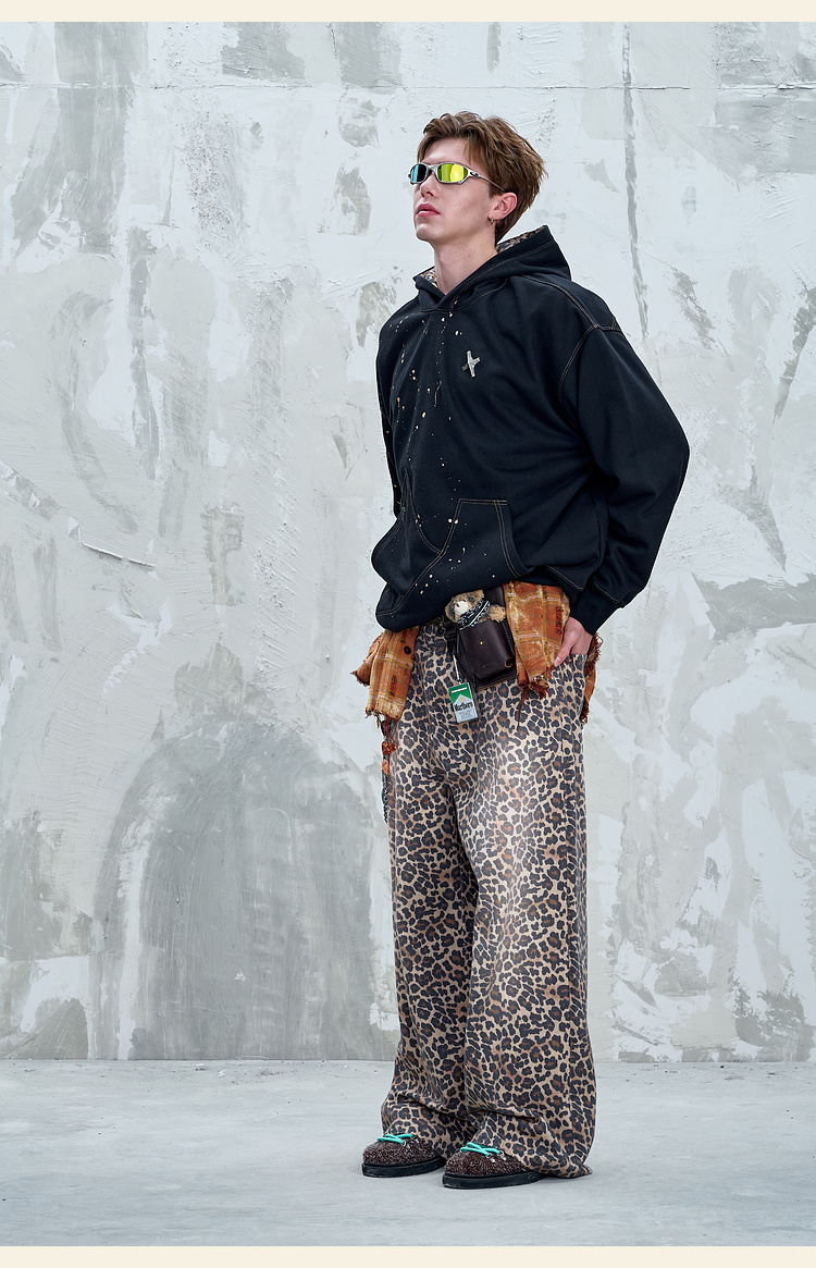 BJHG不计后果美式豹纹连帽卫衣男款2025新款潮明线撞色泼墨外套女