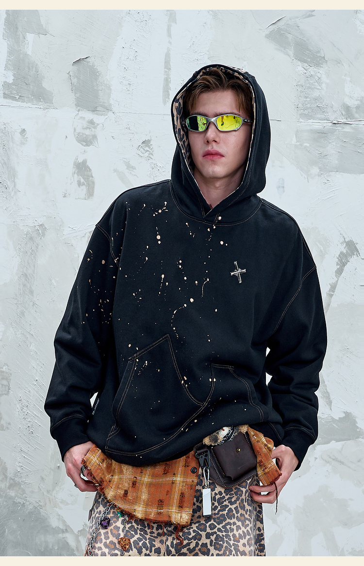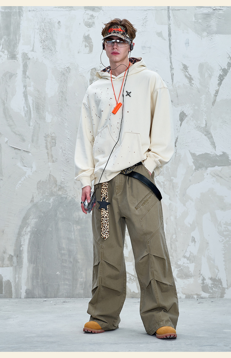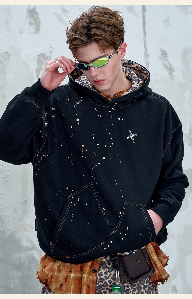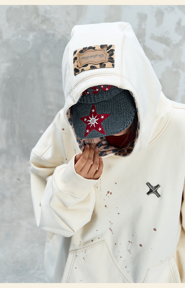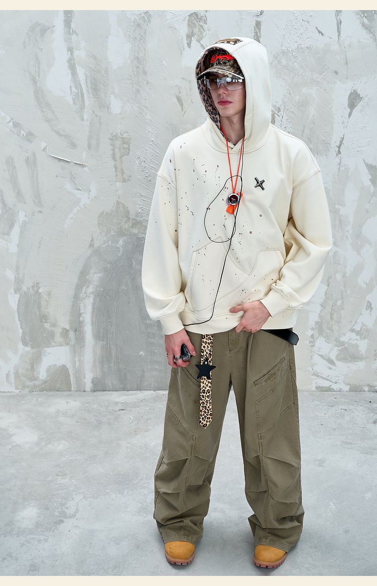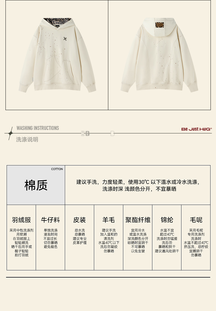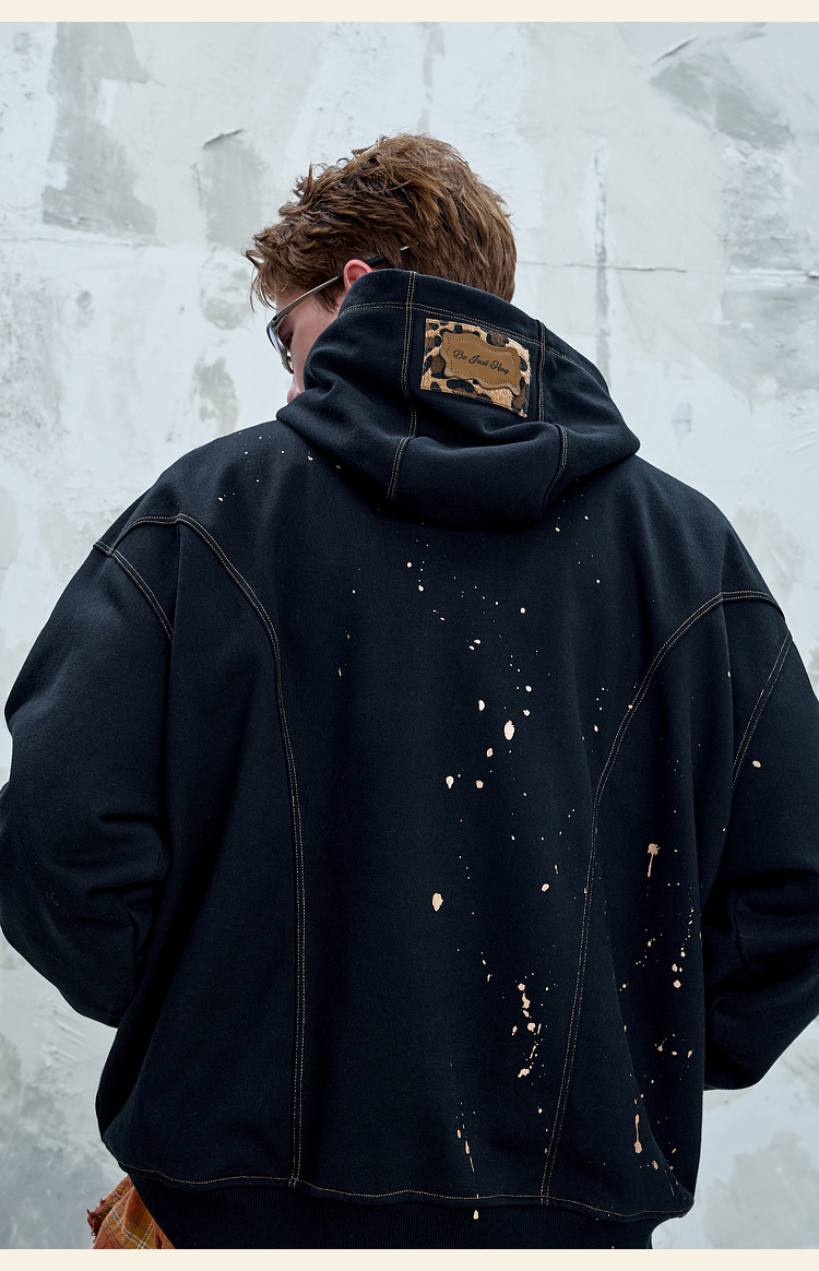 BJHG不计后果美式豹纹连帽卫衣男款2025新款潮明线撞色泼墨外套女