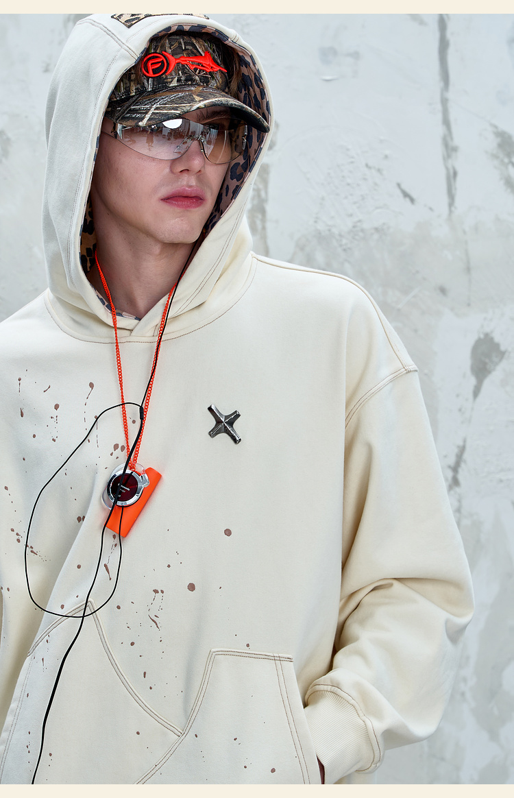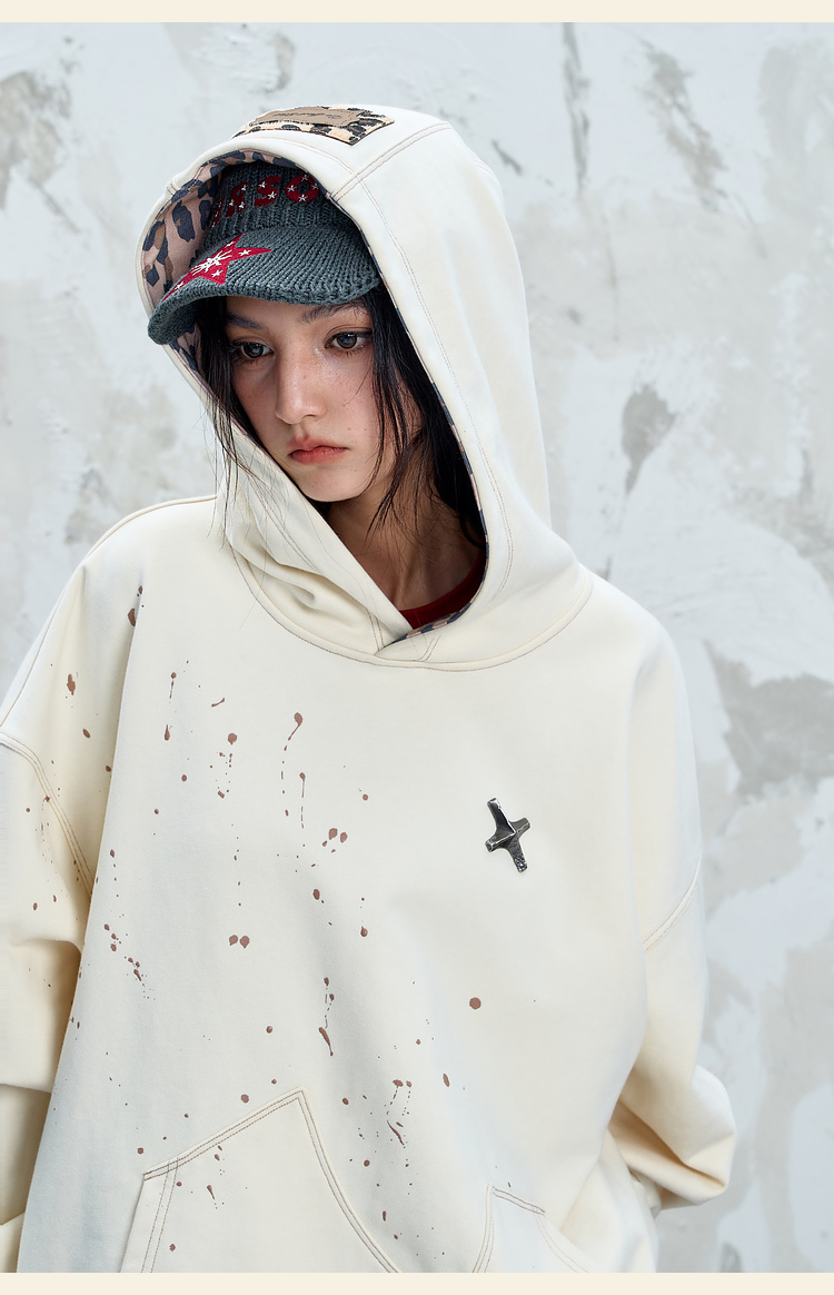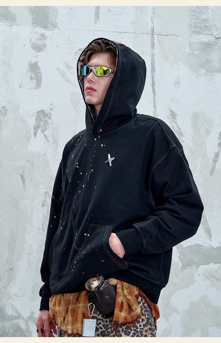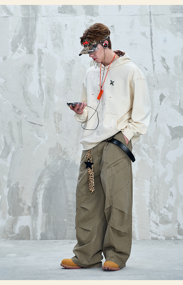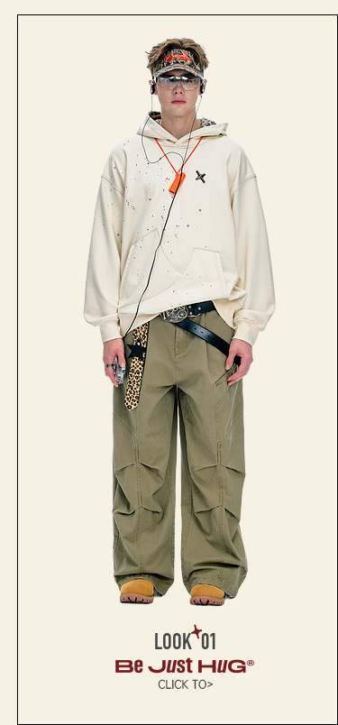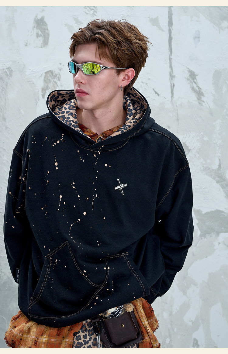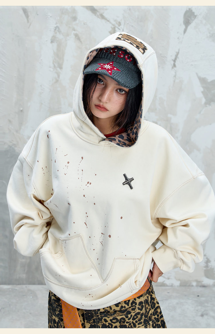 BJHG不计后果美式豹纹连帽卫衣男款2025新款潮明线撞色泼墨外套女