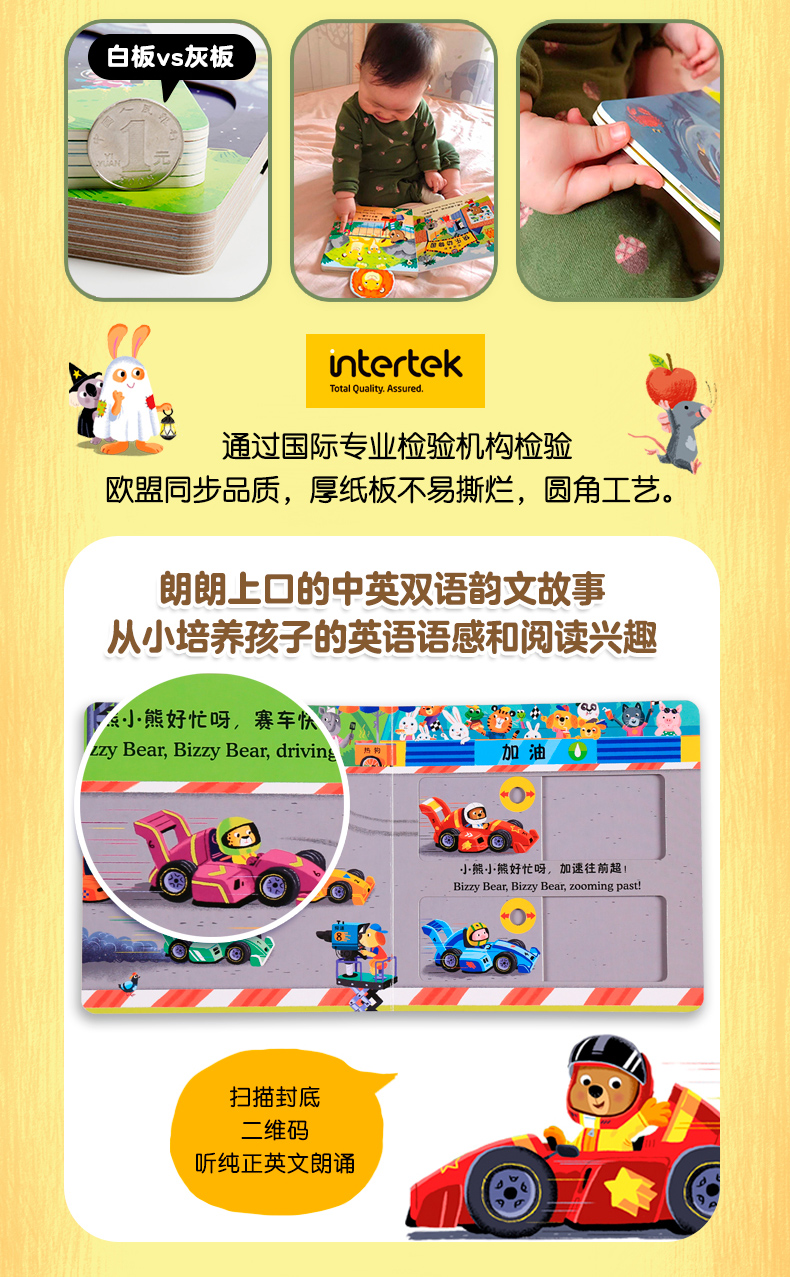 ★全新超厚白卡纸升级版,画面更清晰,品质更;圆角工艺不伤小手,撕咬扯不怕;外版原厂印刷,,放心。