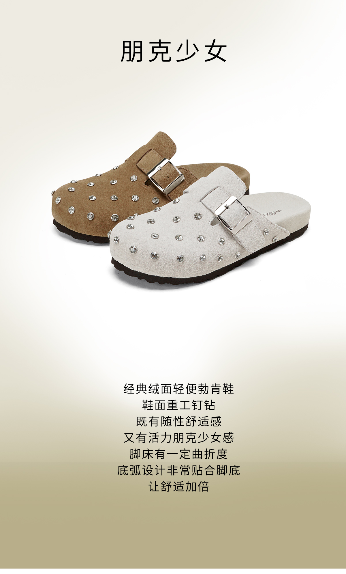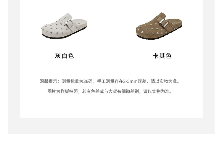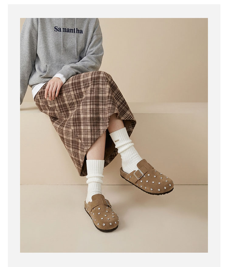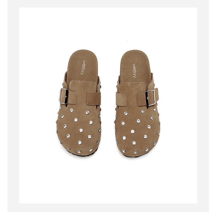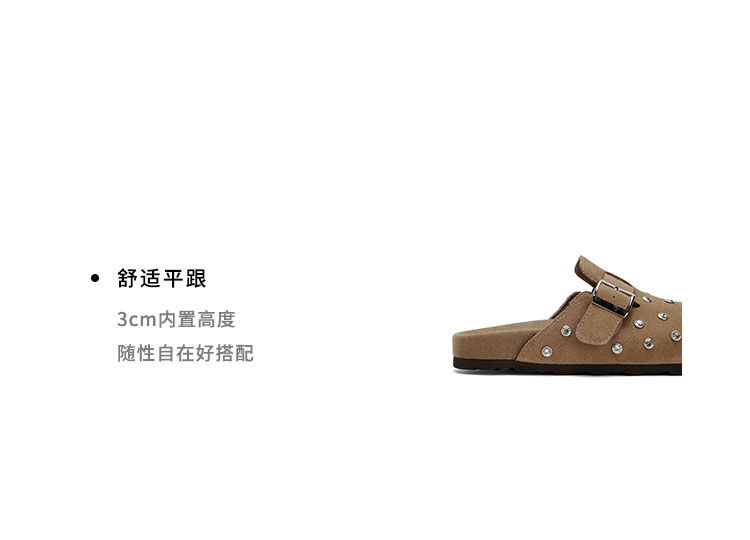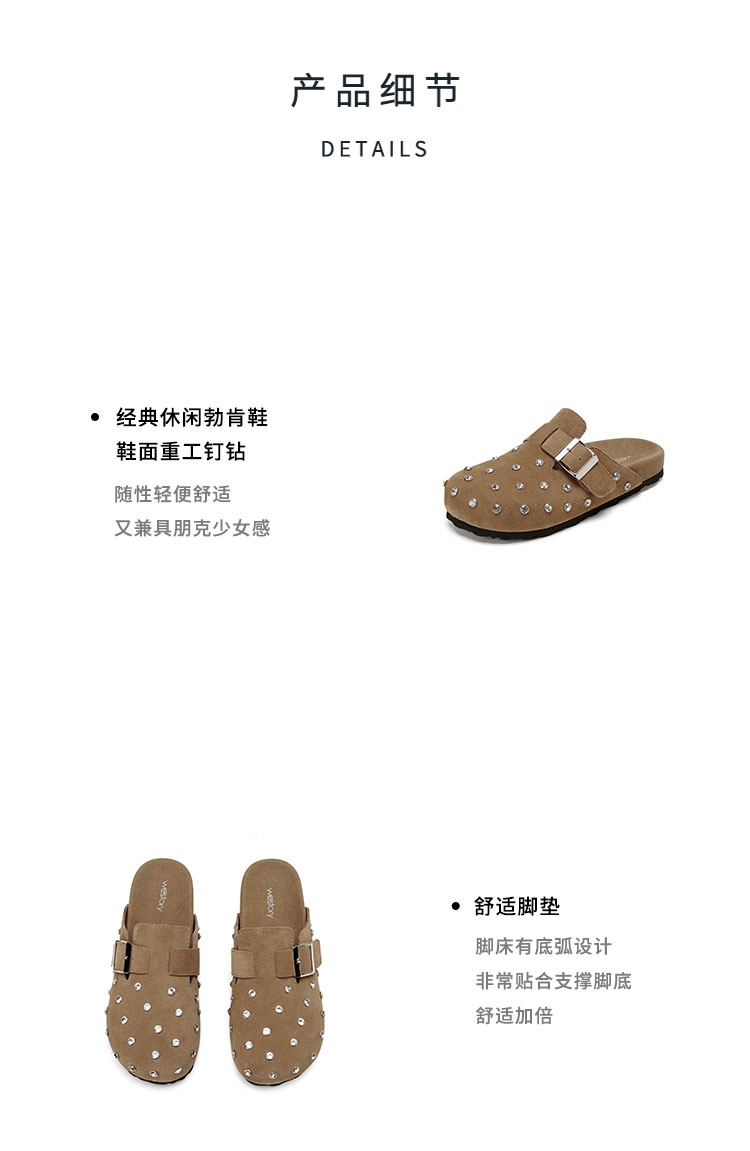 Westory2026年春季休闲勃肯拖鞋牛绒皮钉珠舒适后空单鞋S26AH50641