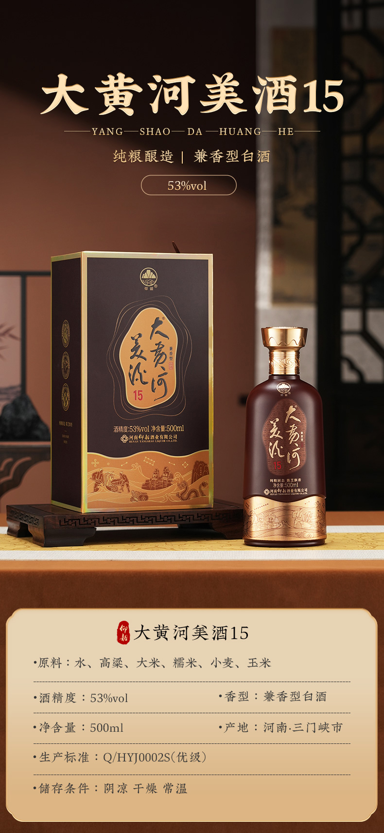 仰韶 大黄河美酒15 53度500ml 兼香型 纯粮固态 酱芝飘香