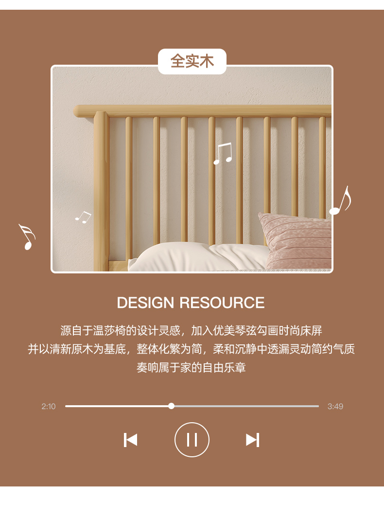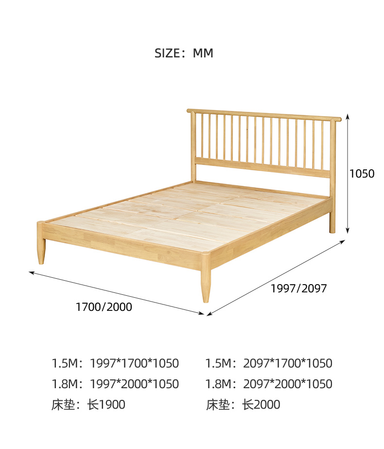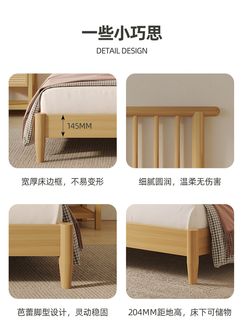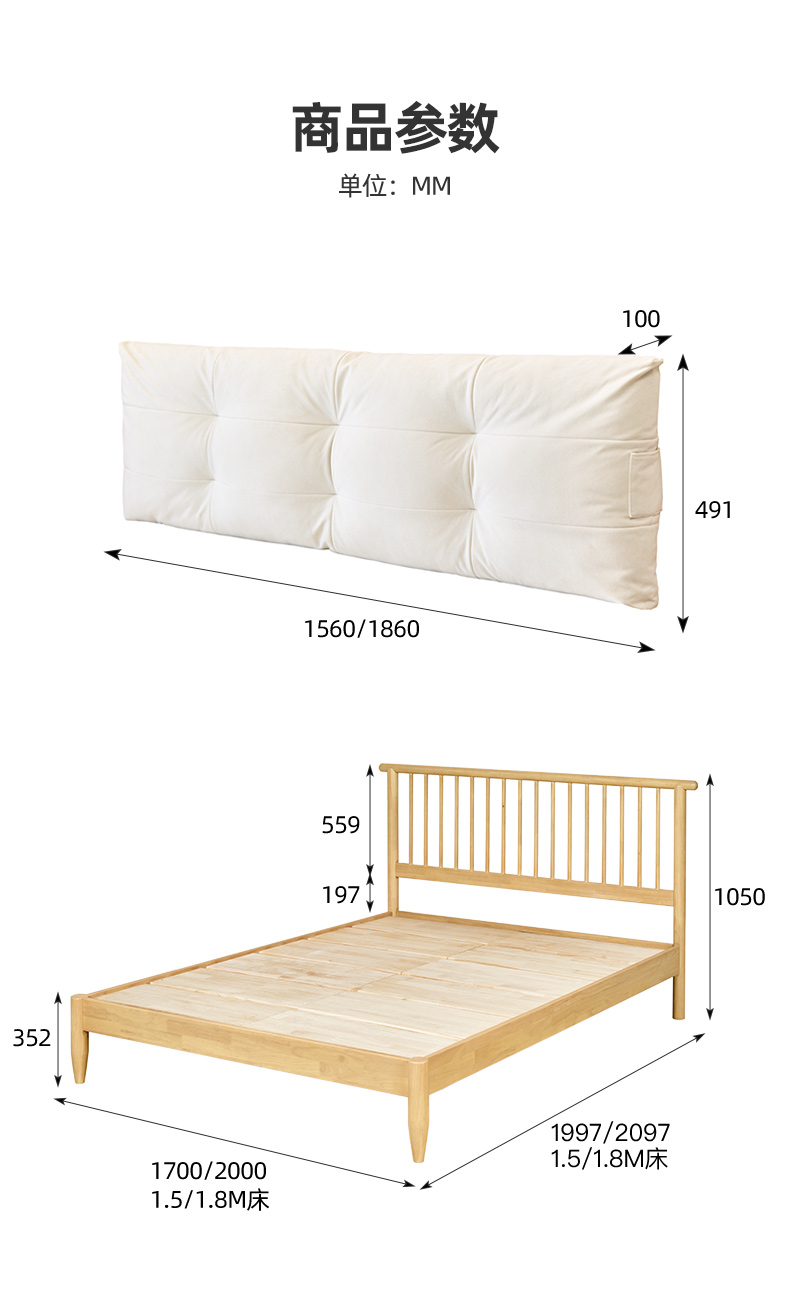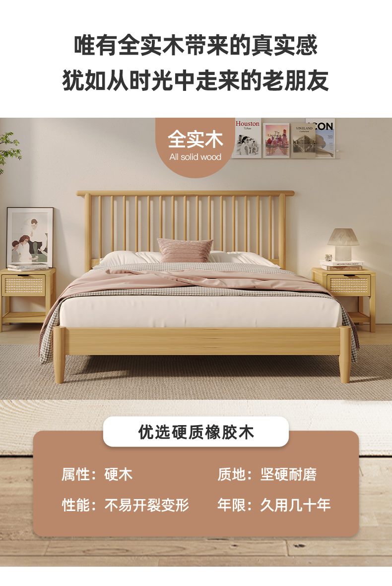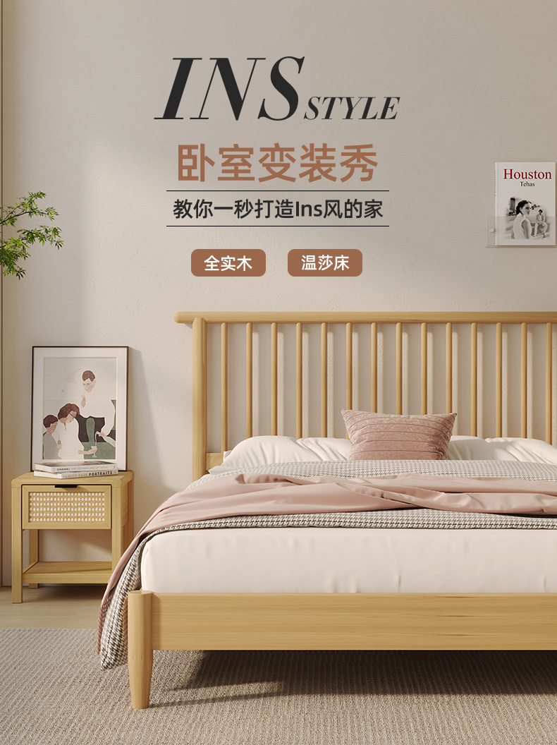喜梦宝现代简约原木风北欧卧室双人床家用套装组合 温莎系列