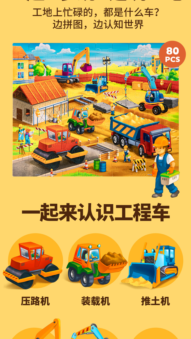 【折扣商品 不退不换】80片儿童拼图塑料拼图 T1101 Image World-建筑工地