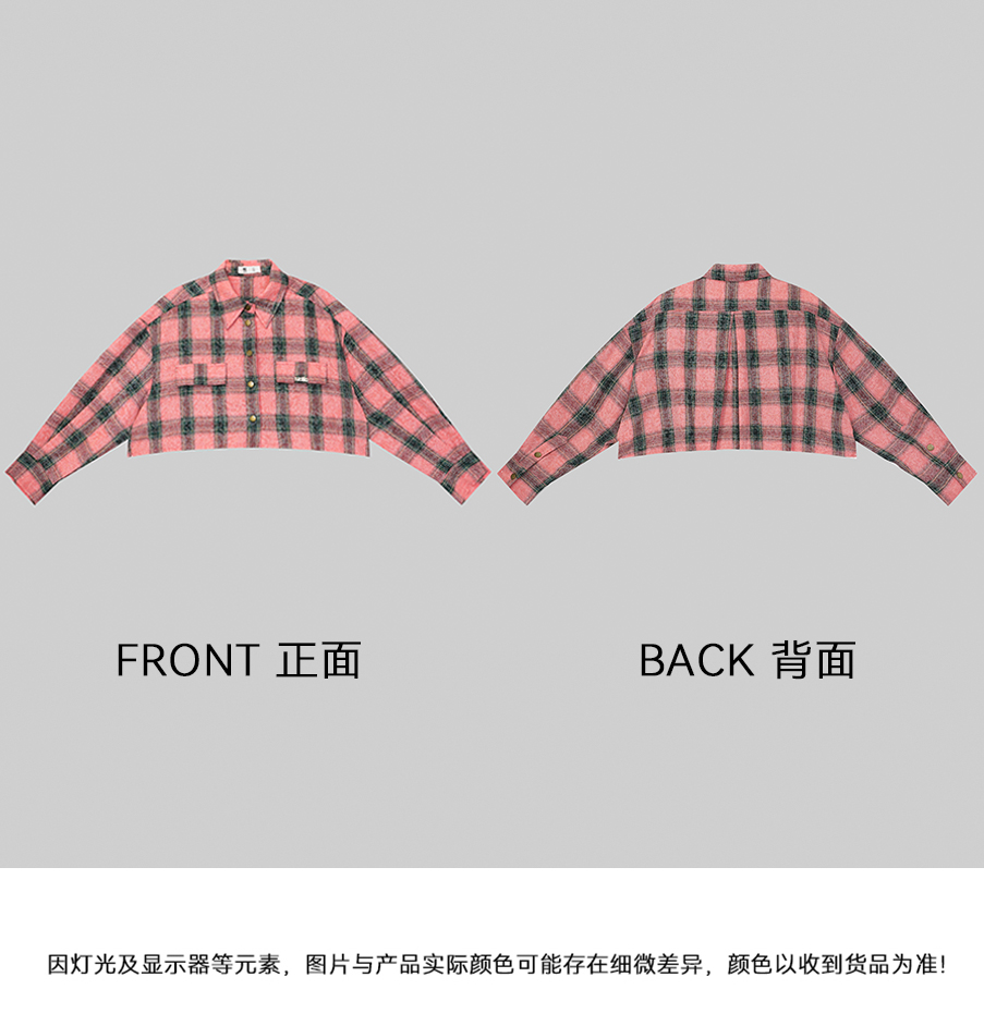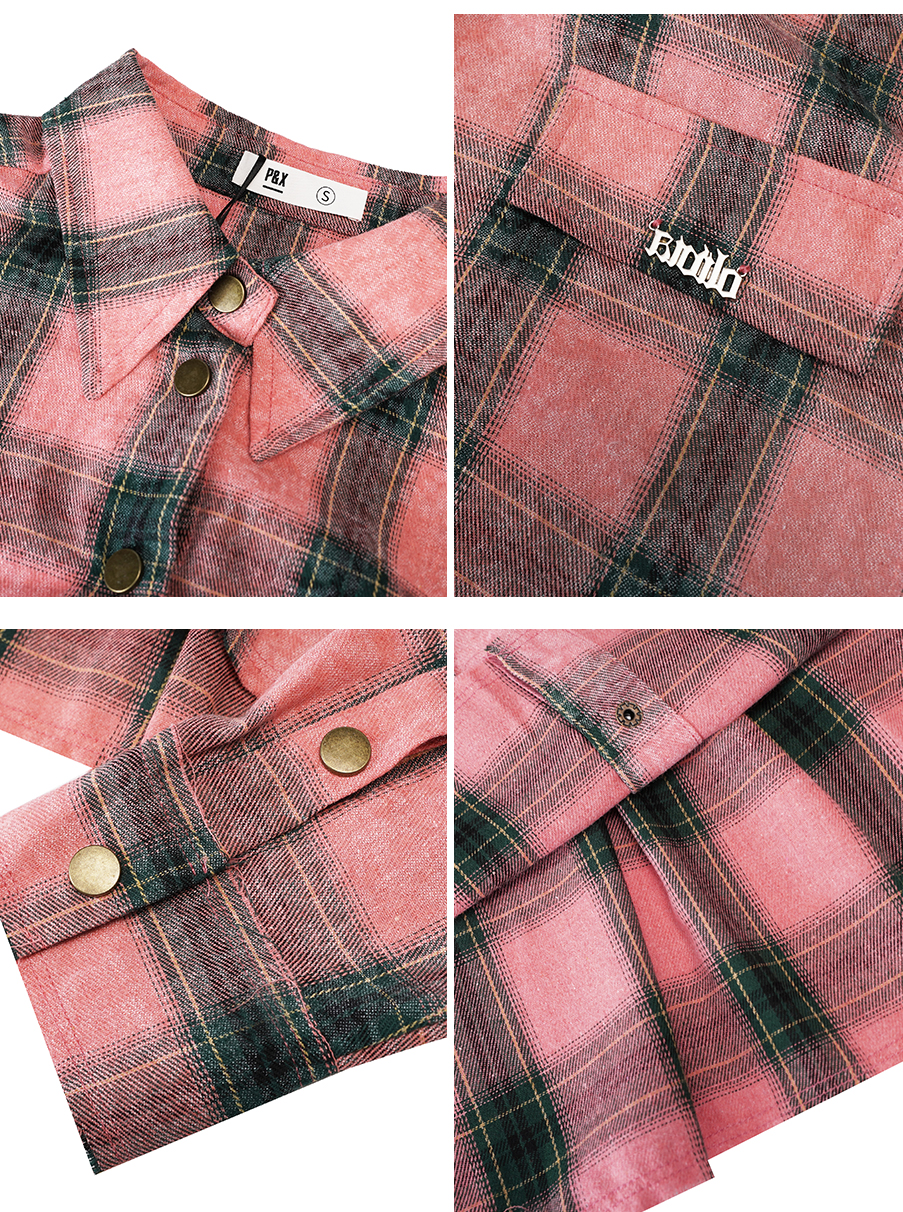 PX女装春季新款美式复古粉色格子衬衫休闲百搭 824105788 粉色