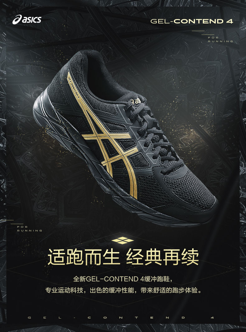 ASICS亚瑟士男鞋GEL-CONTEND 4缓震保护跑鞋运动鞋透气跑步鞋T8D4Q
