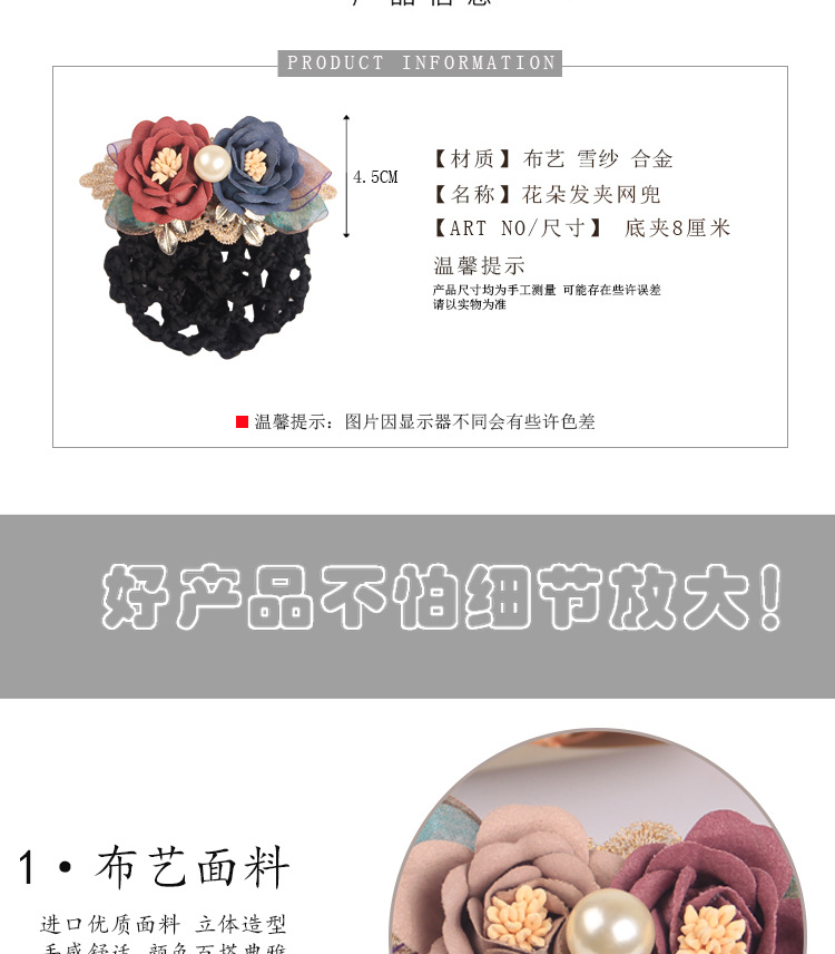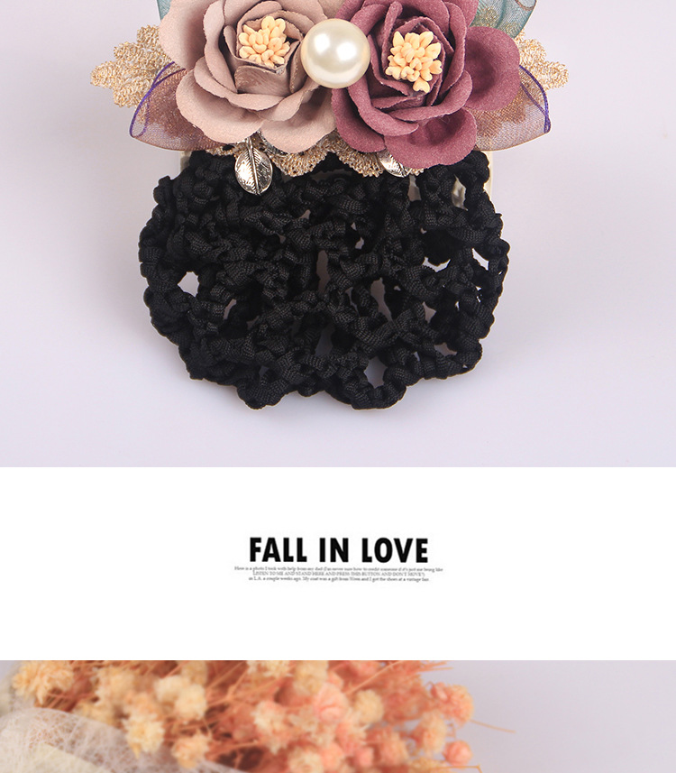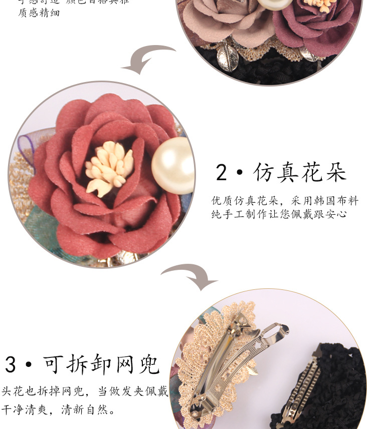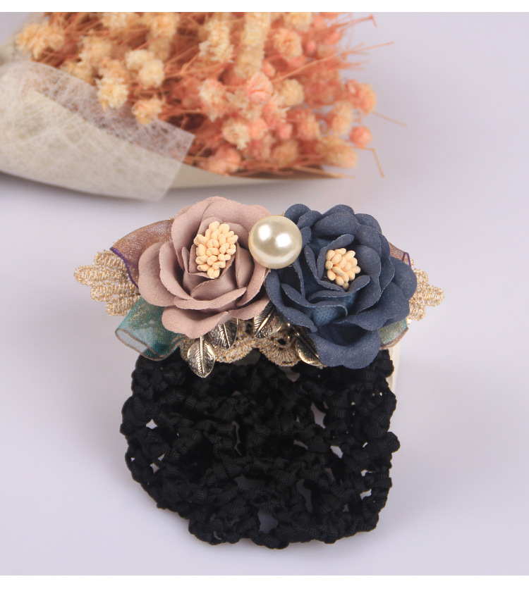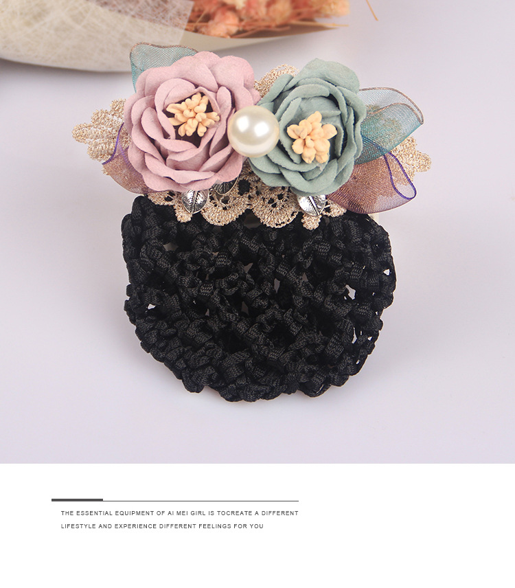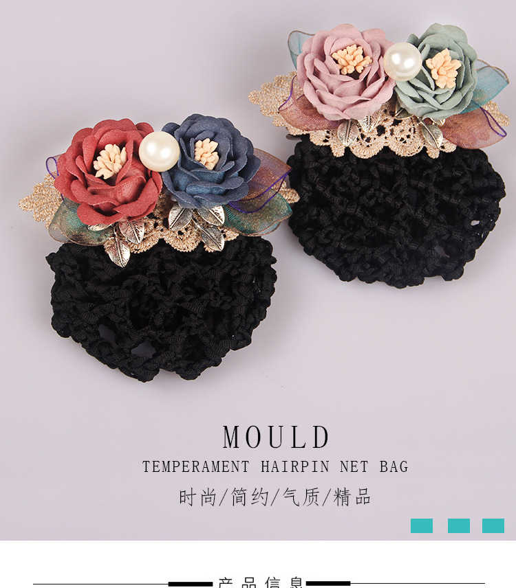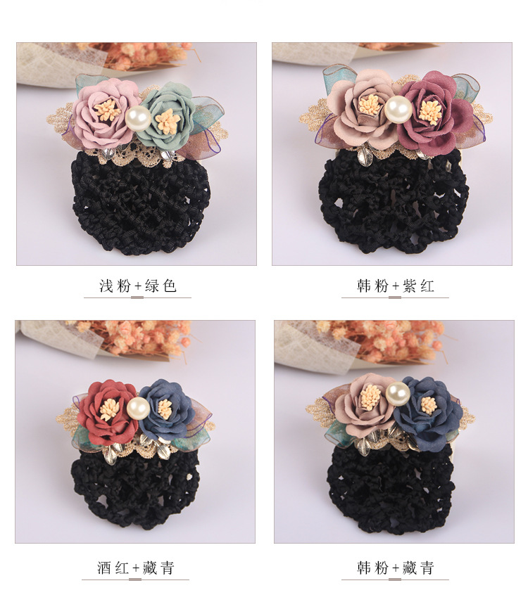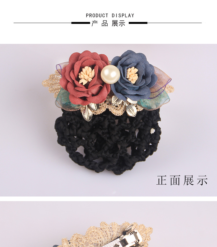 花朵双钻职业头花盘发网兜花朵发夹头饰