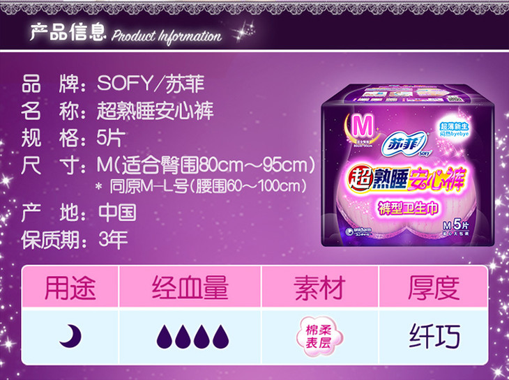苏菲超熟睡安心裤裤型卫生巾L5片