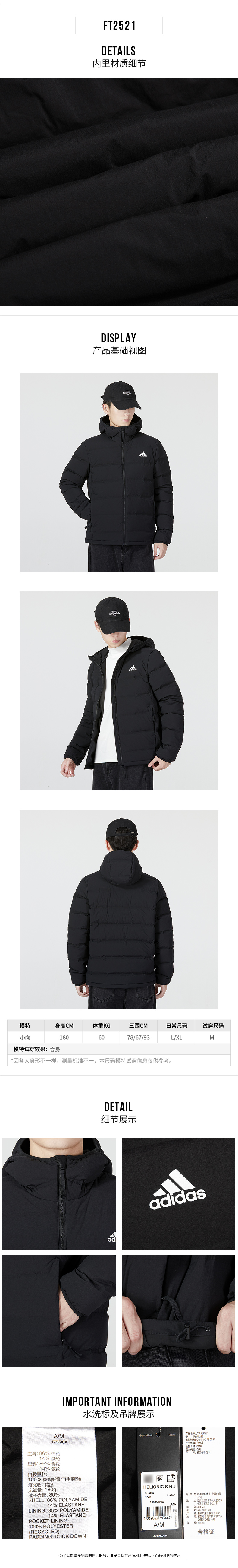 阿迪达斯 (adidas) 羽绒服男装秋冬季防风御寒户外运动服轻薄夹克休闲保暖外套 店长推荐款FT2521 轻薄高蓬松羽绒服