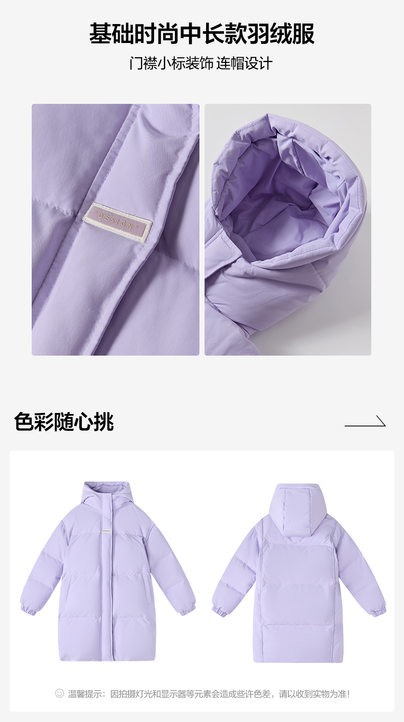 笛莎Deesha 童装女童羽绒服2025冬新款女童基础时尚中长款羽绒服