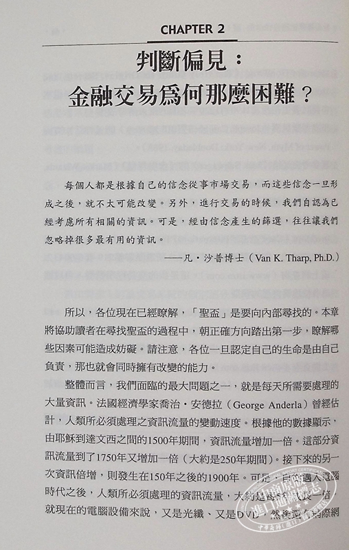 國際著名的投資顧問與交易訓練專家,也是沙普機構(Van Tharp Institute)的創辦人。沙普博士經常在全球各地演講、舉辦講習會,或者協助銀行與交易機構訓練專業交易人員。
