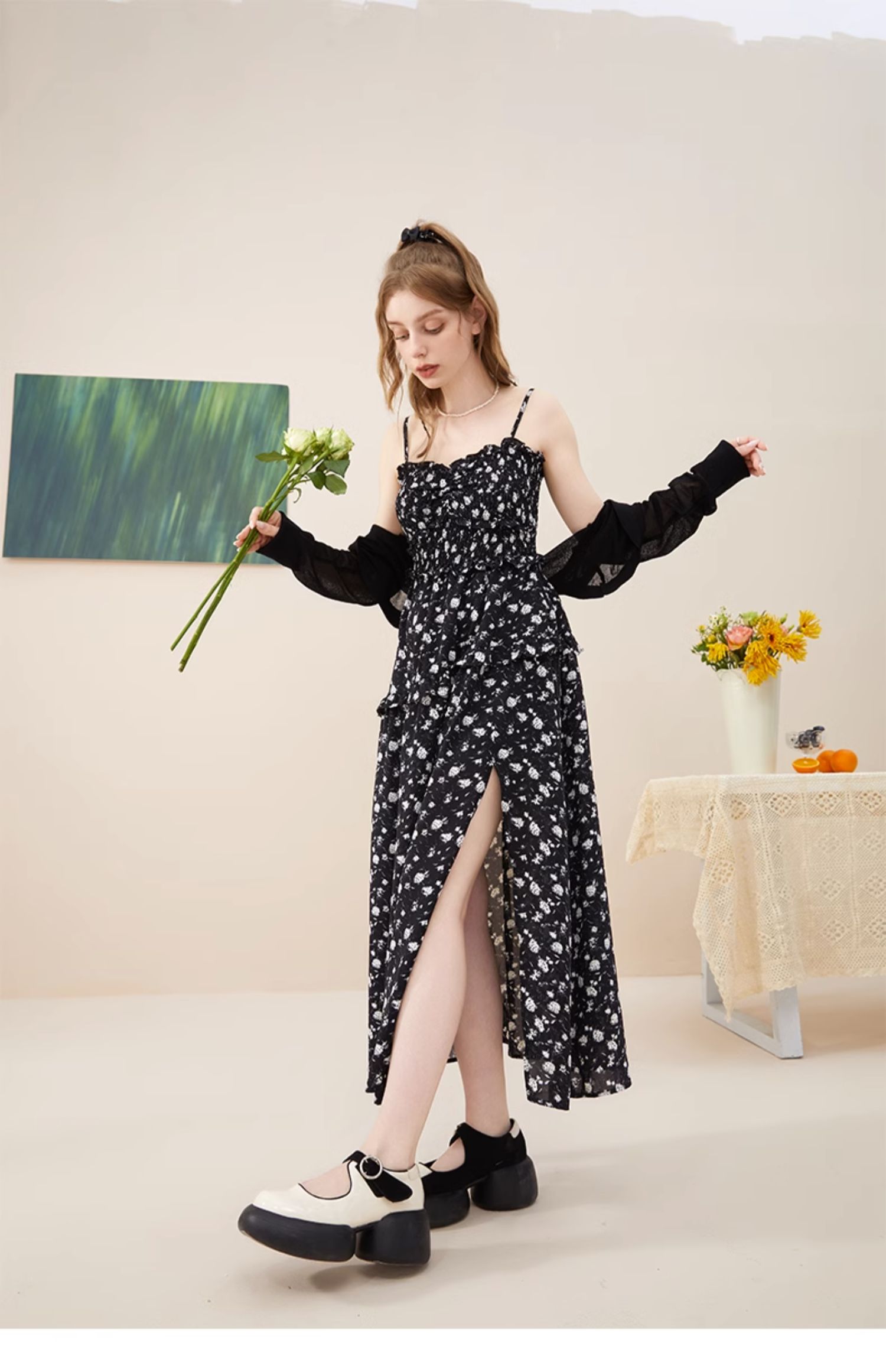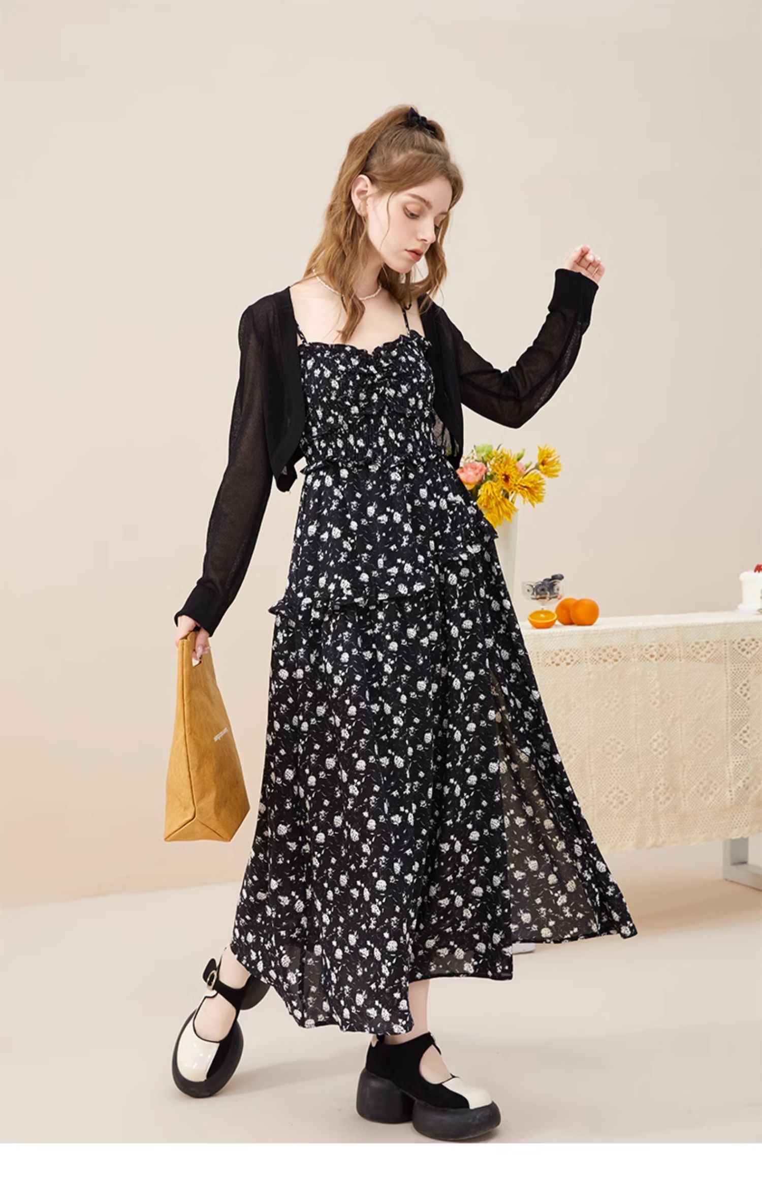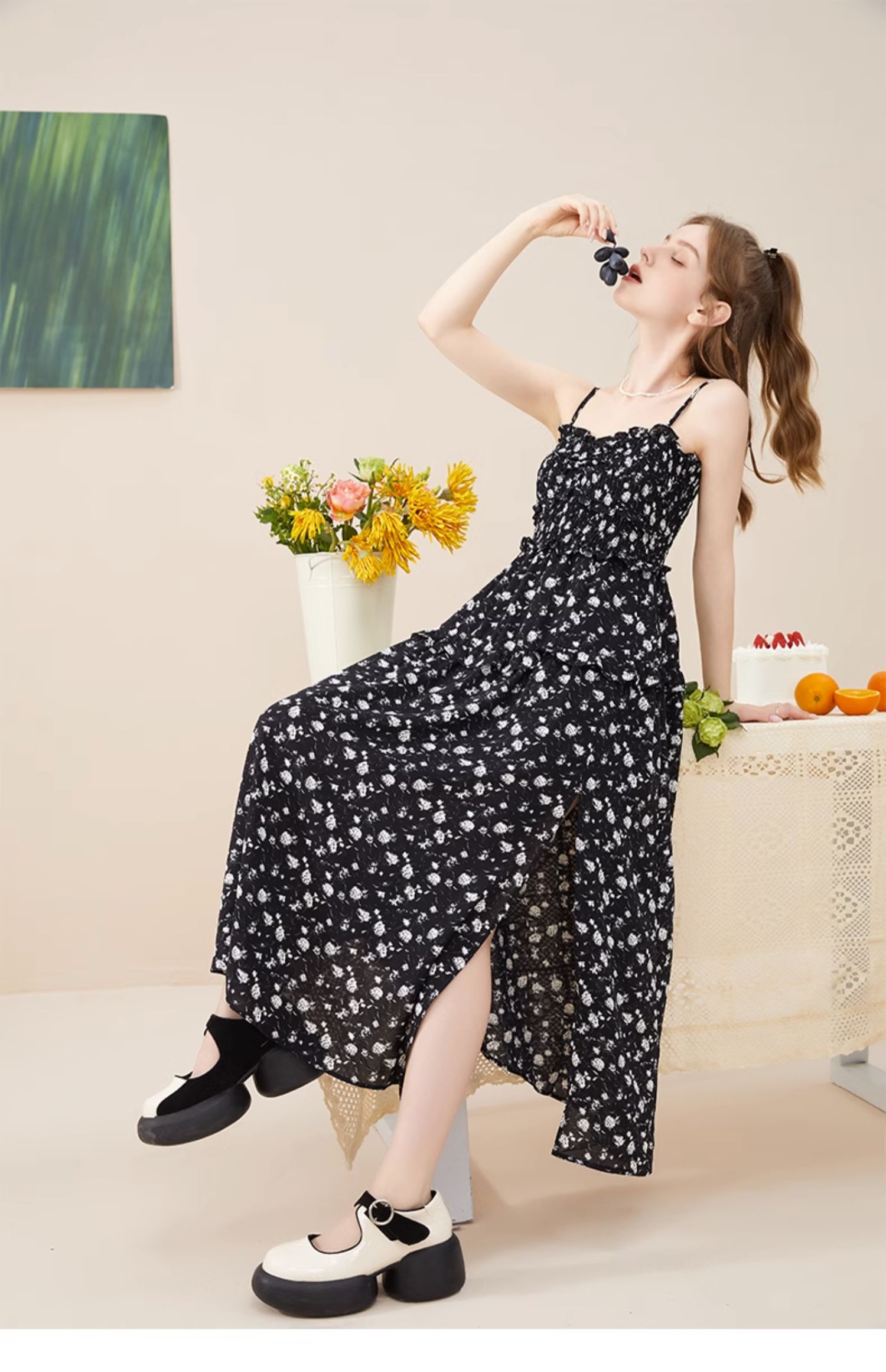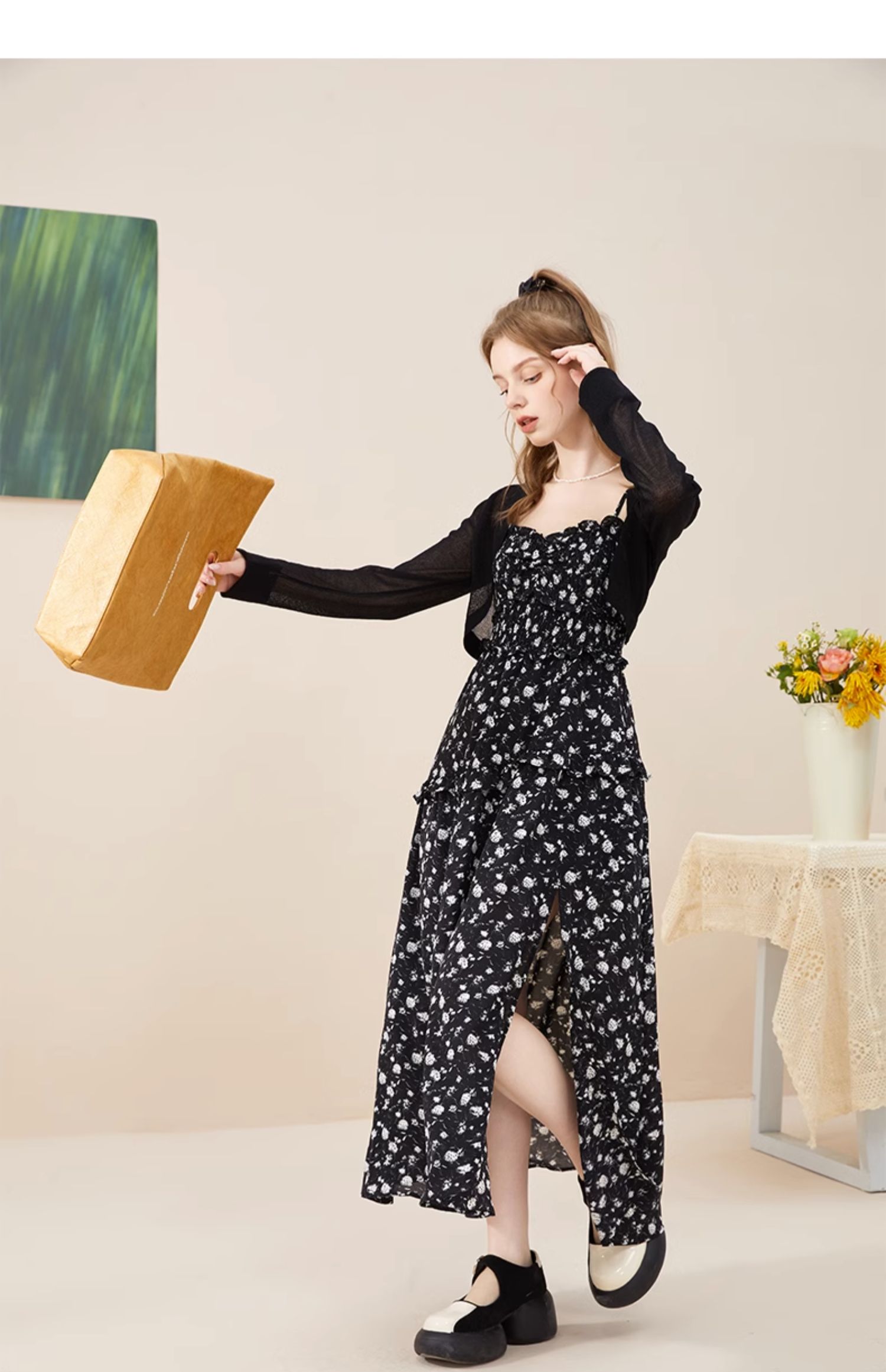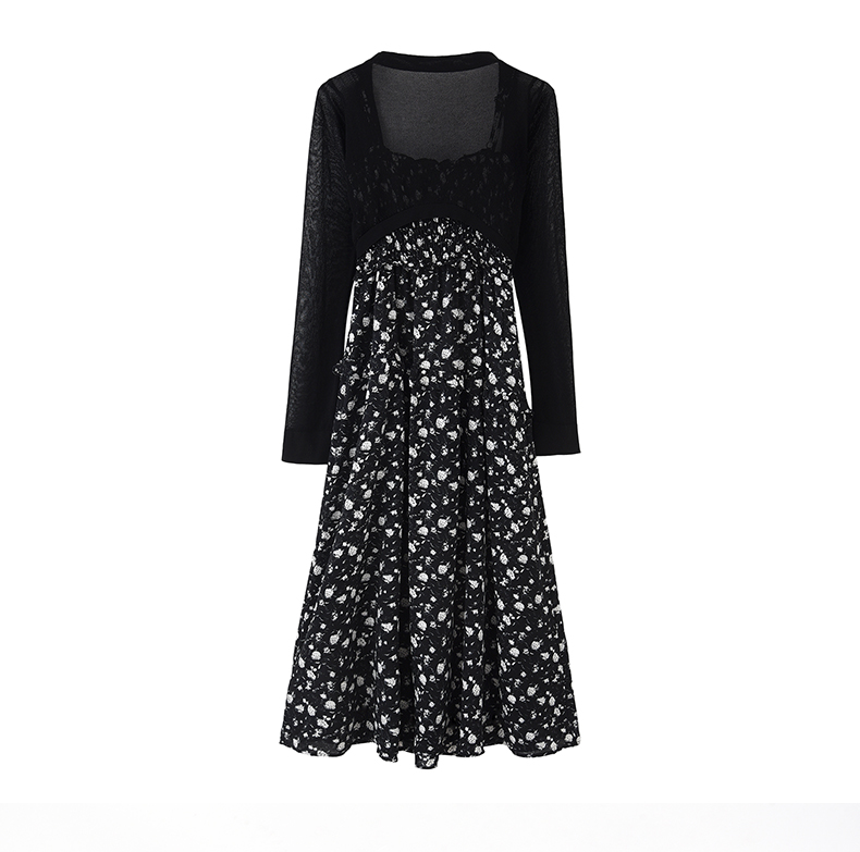 mc2方领腰部打揽净色长款连衣裙女装新款显白素色高级感舒适长裙