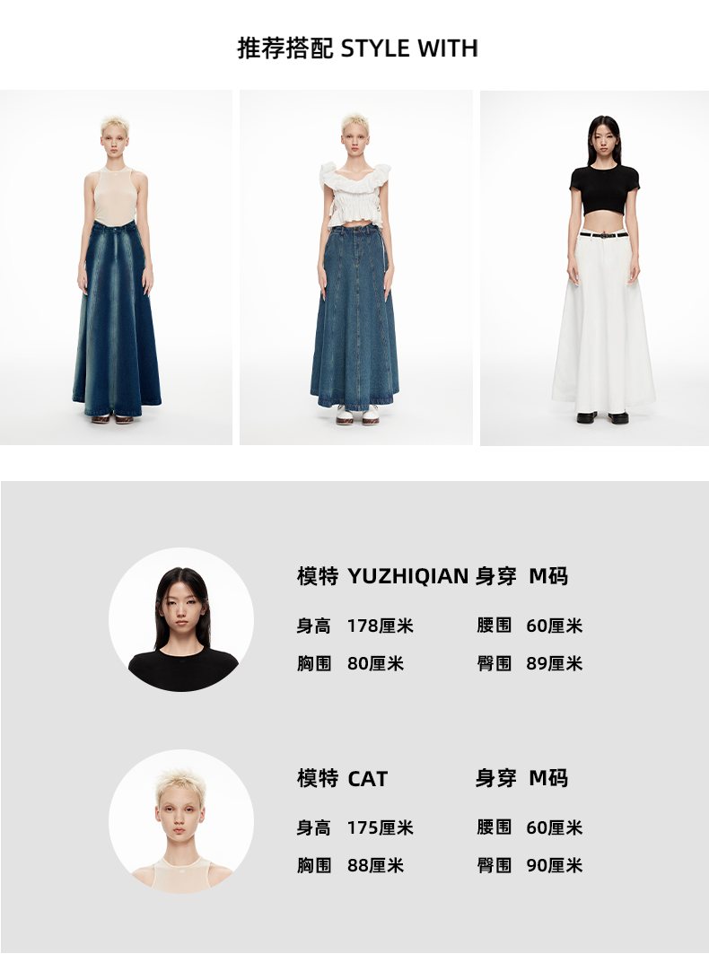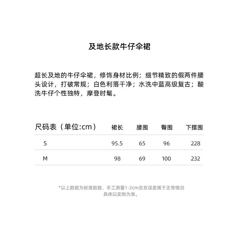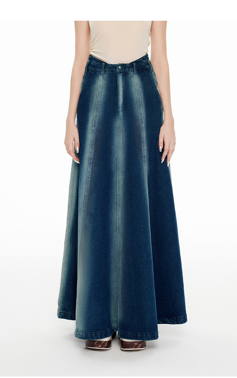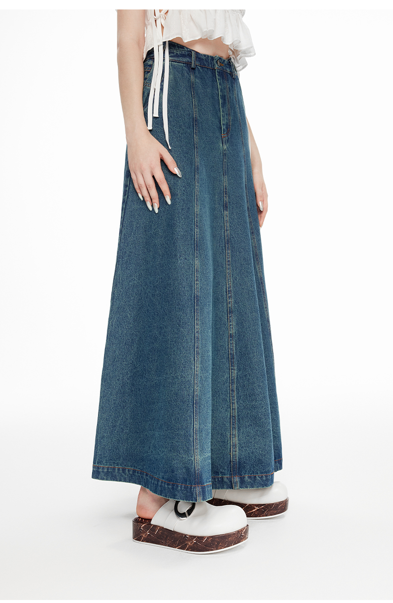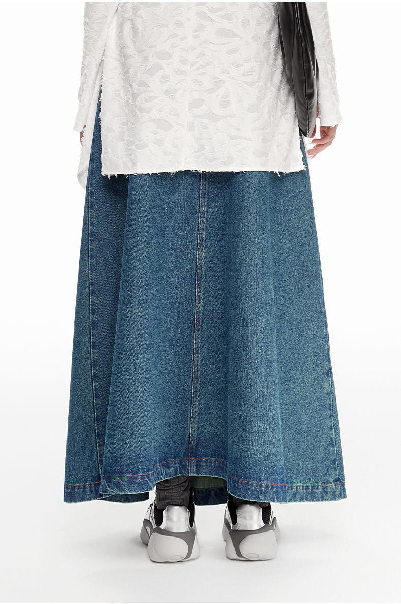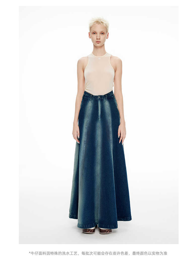 lost in echo2024春季新款设计师品牌及地长款酸洗牛仔伞裙