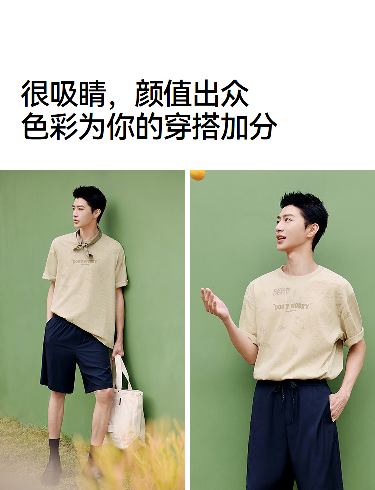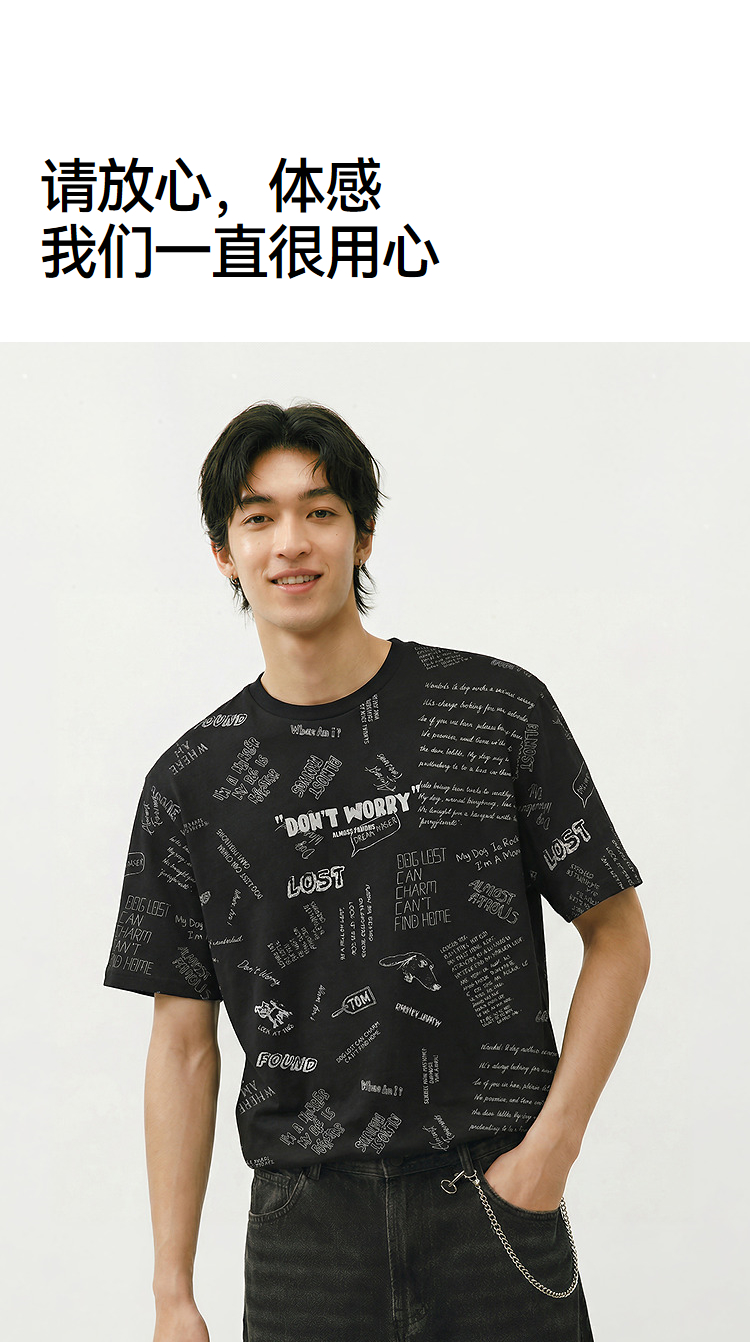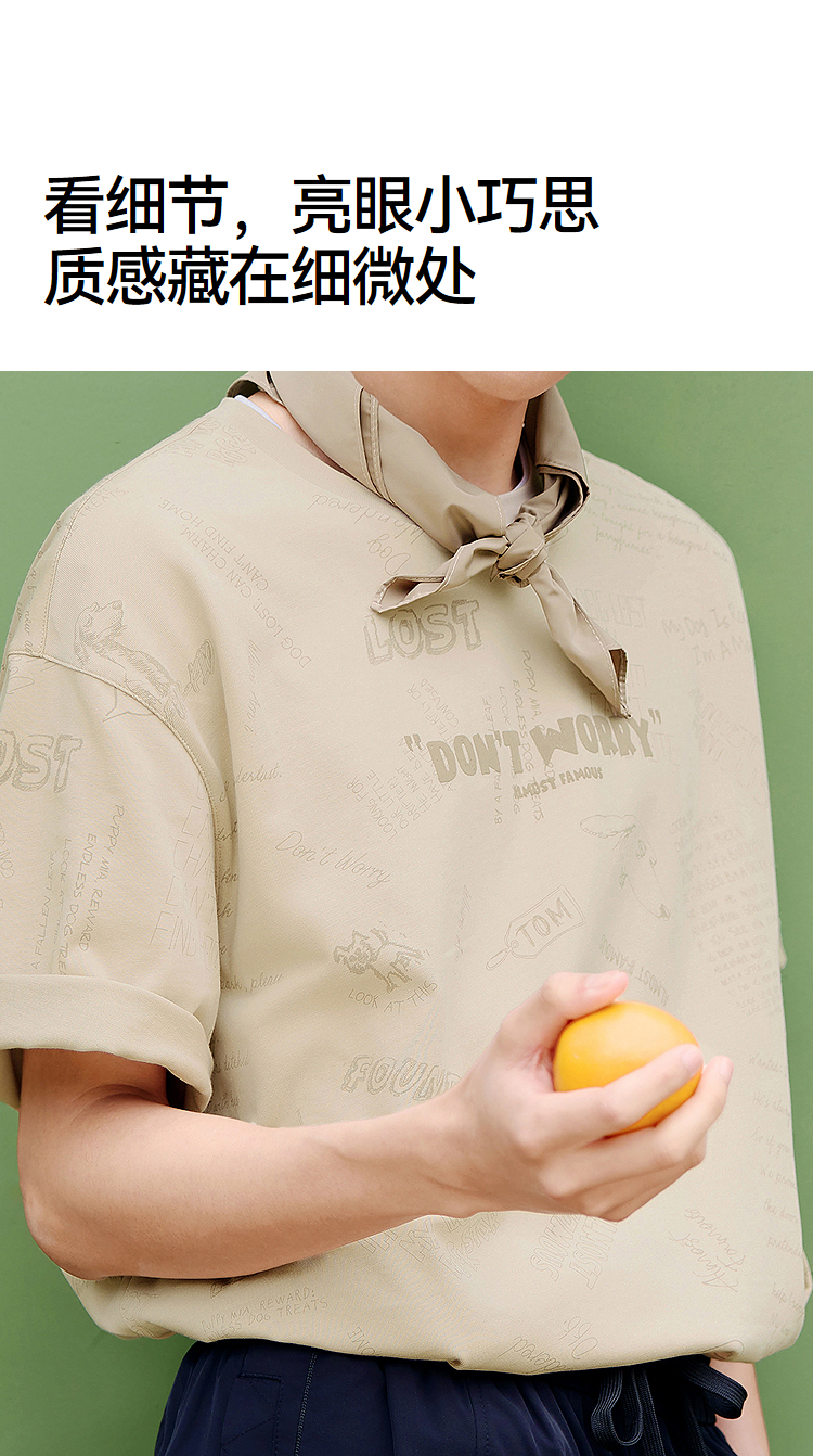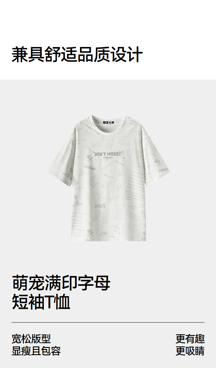 森马短袖T恤男夏季趣味萌宠满印字母针织衫纯棉宽松上衣时尚潮流