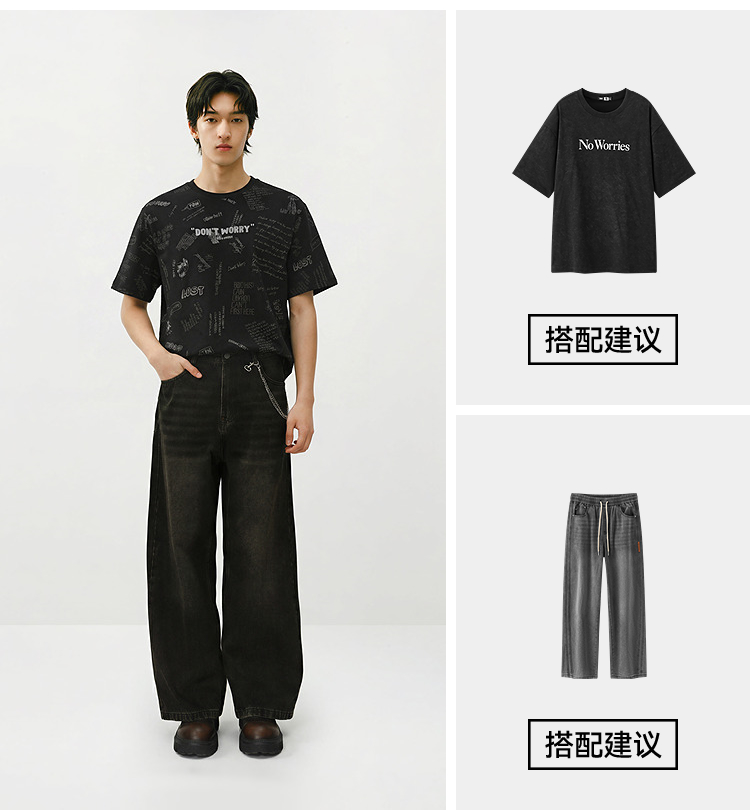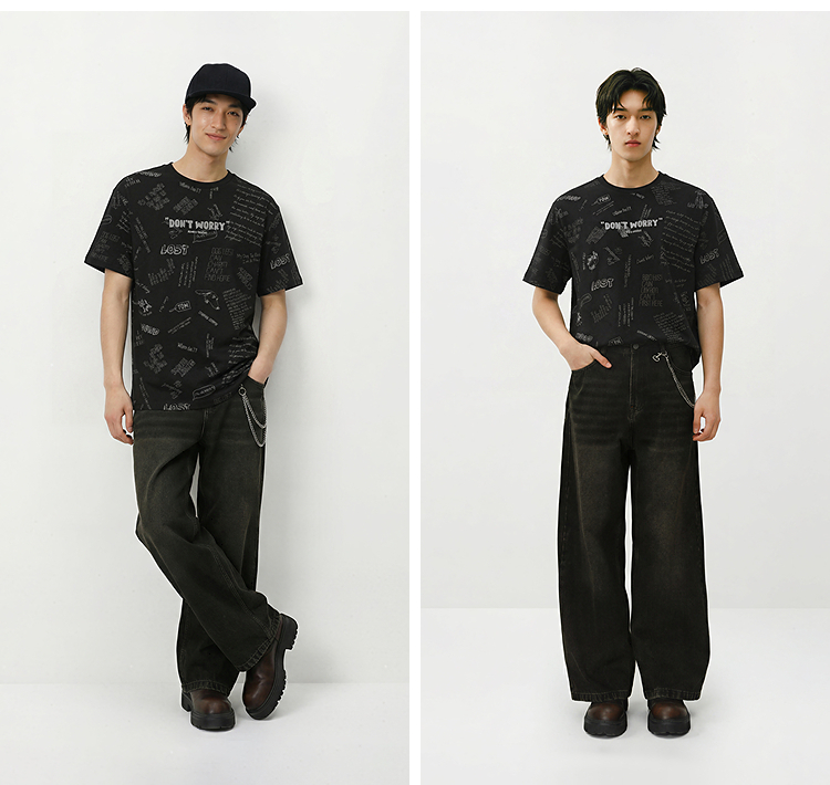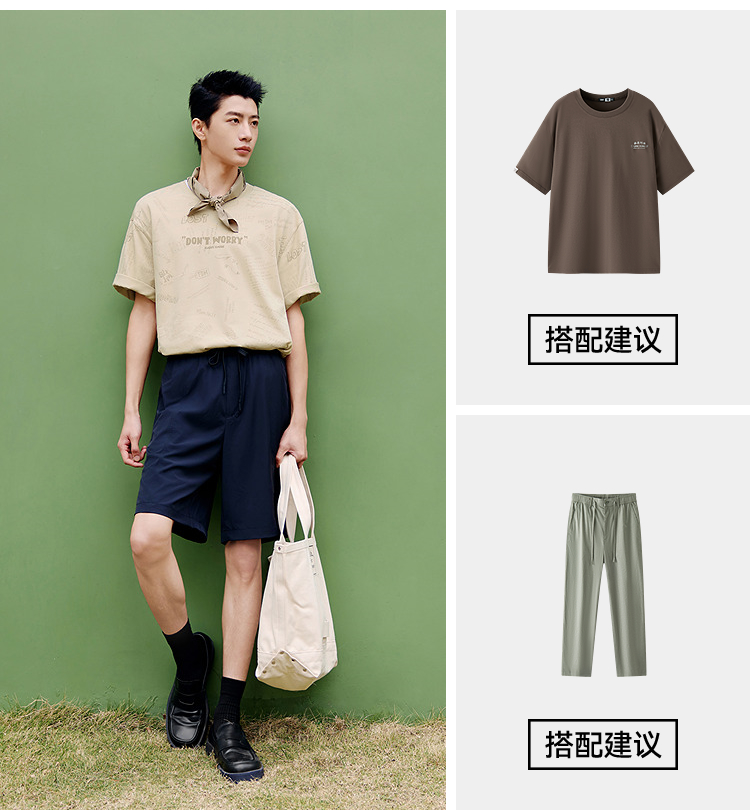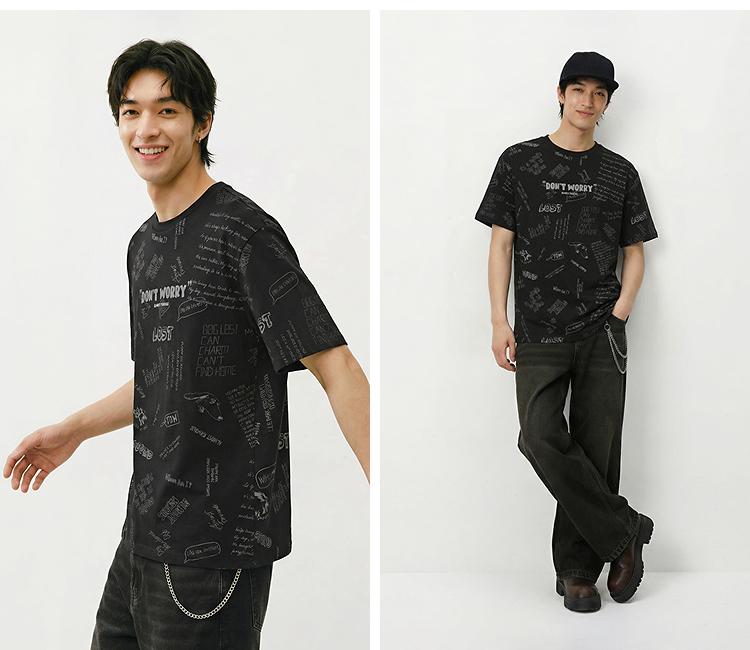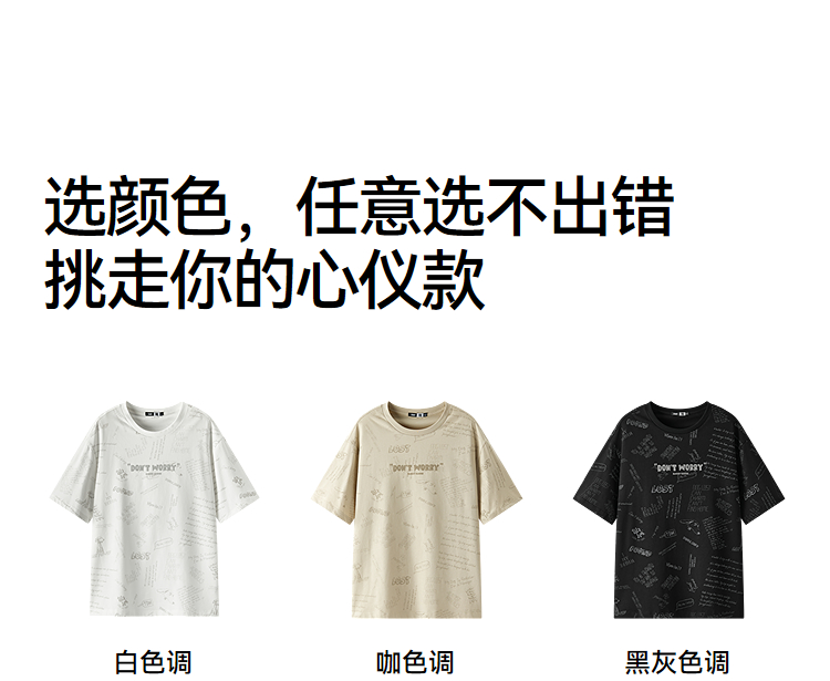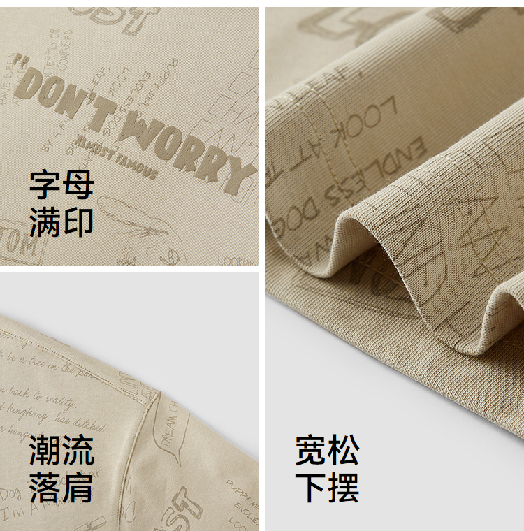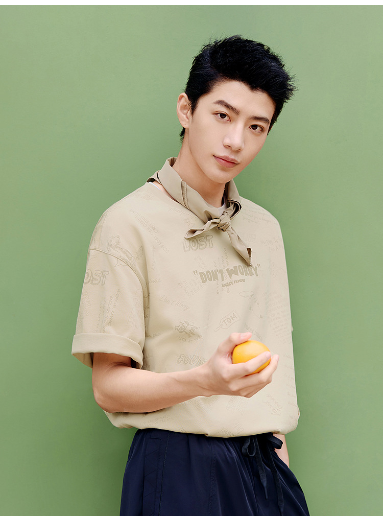 森马短袖T恤男夏季趣味萌宠满印字母针织衫纯棉宽松上衣时尚潮流