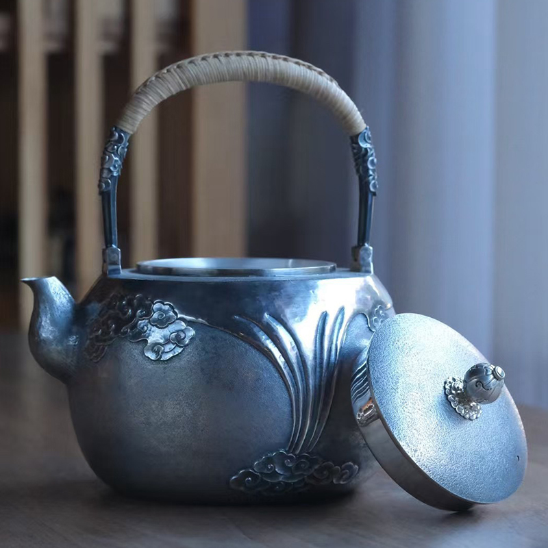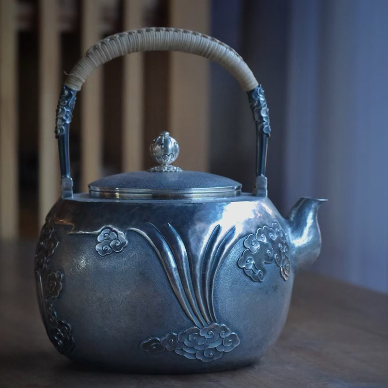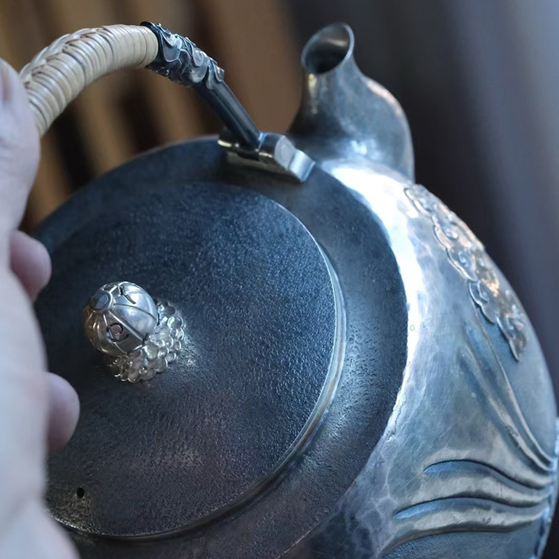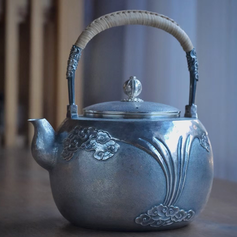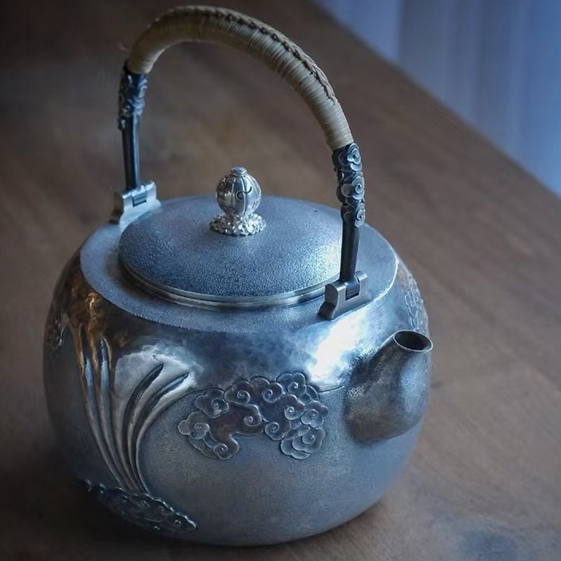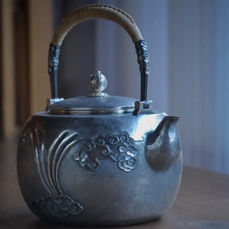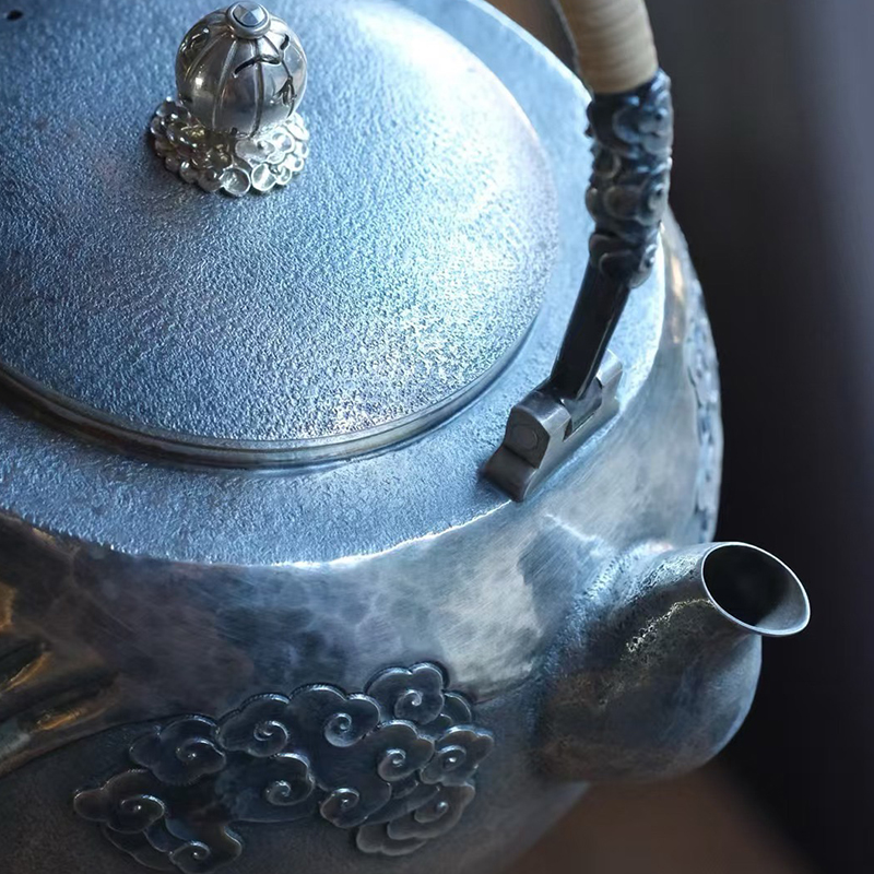 《祥云》高工银壶,纯手工锻打口打出,塹刻工艺。1400ml,655克